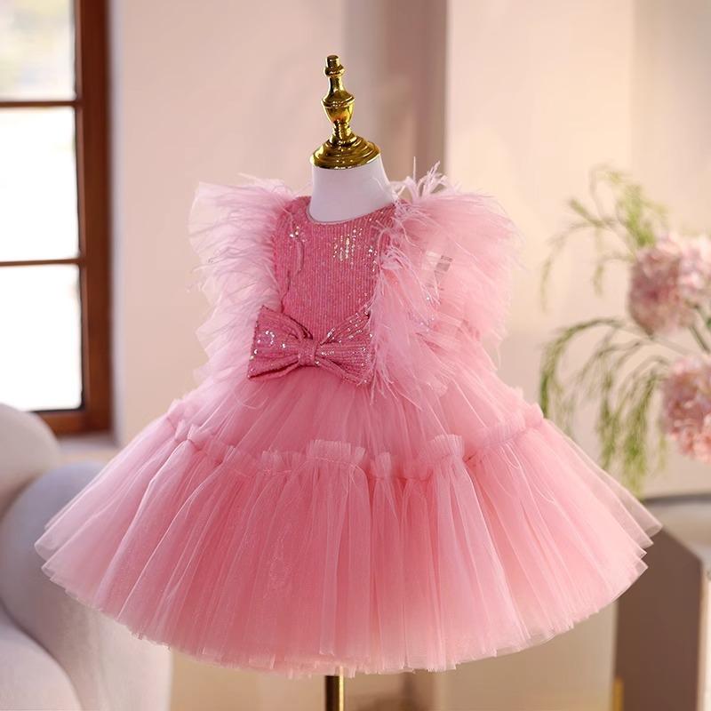 Compra Vestido de Anfitriona Fiesta de Cumpleaños de Niña Vestido de Princesa de Un Año Hilo Esponjoso para Tocar el Piano para Niños al por mayor en Joom.pro