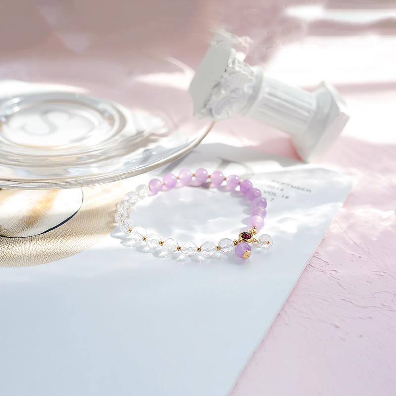 Pulsera de Cristal Natural para Mujer Pulsera de Jade Morado Accesorios Accesorios Faceta Pulsera de Cristal Blanco Joyería de Granate