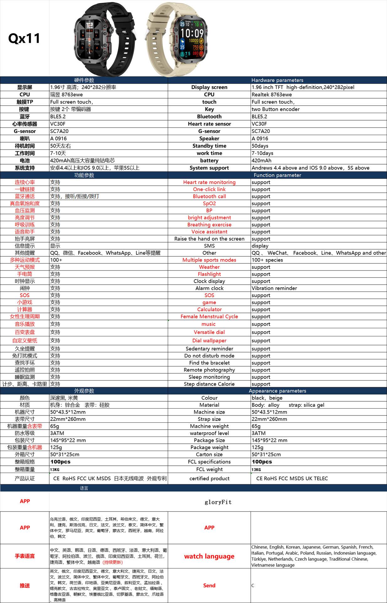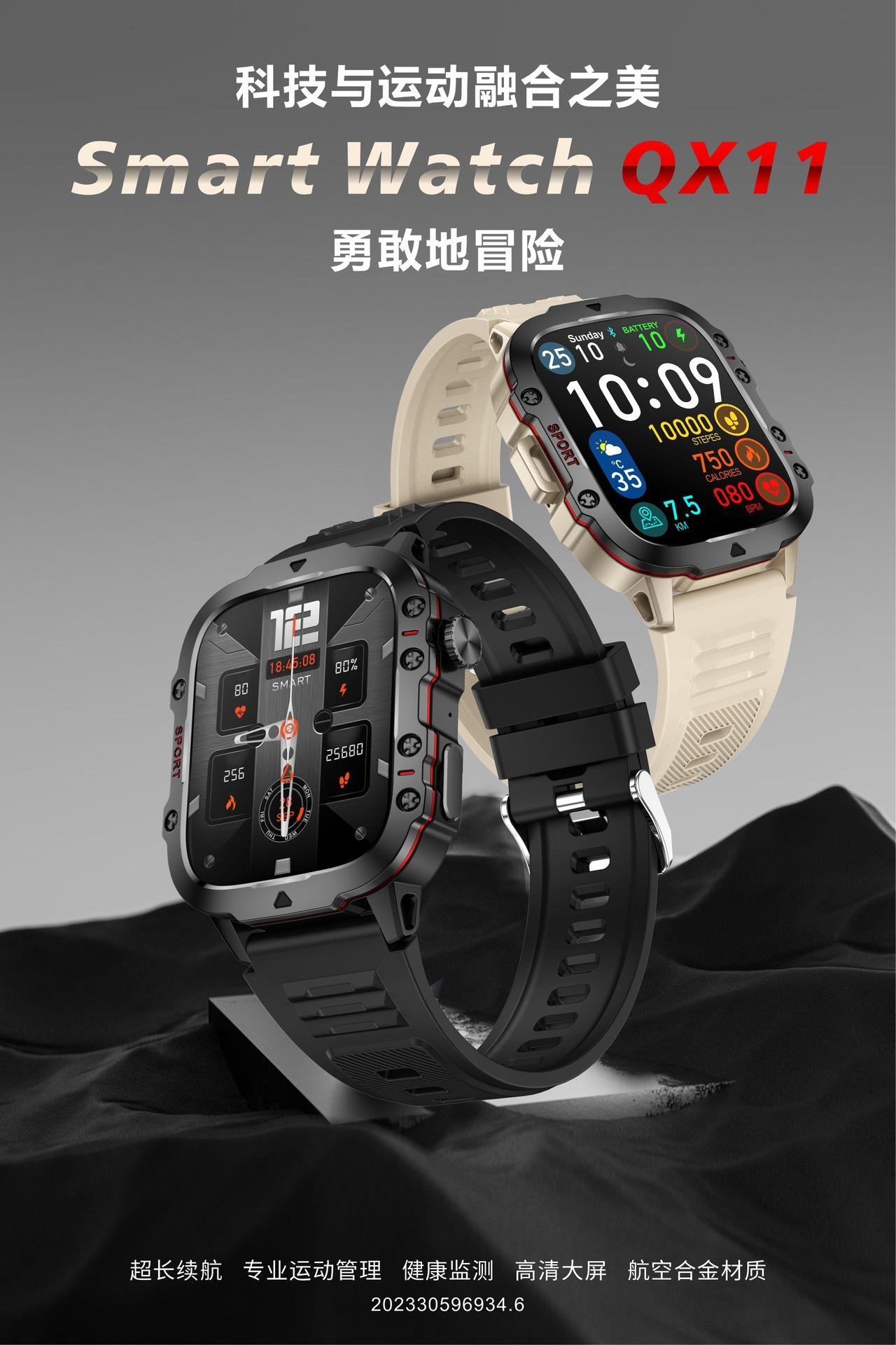 Nuevo reloj inteligente QX11 transfronterizo con Bluetooth, llamada, frecuencia cardíaca, presión arterial, monitoreo de temperatura corporal, ejercicio de salud al aire libre de tres pruebas