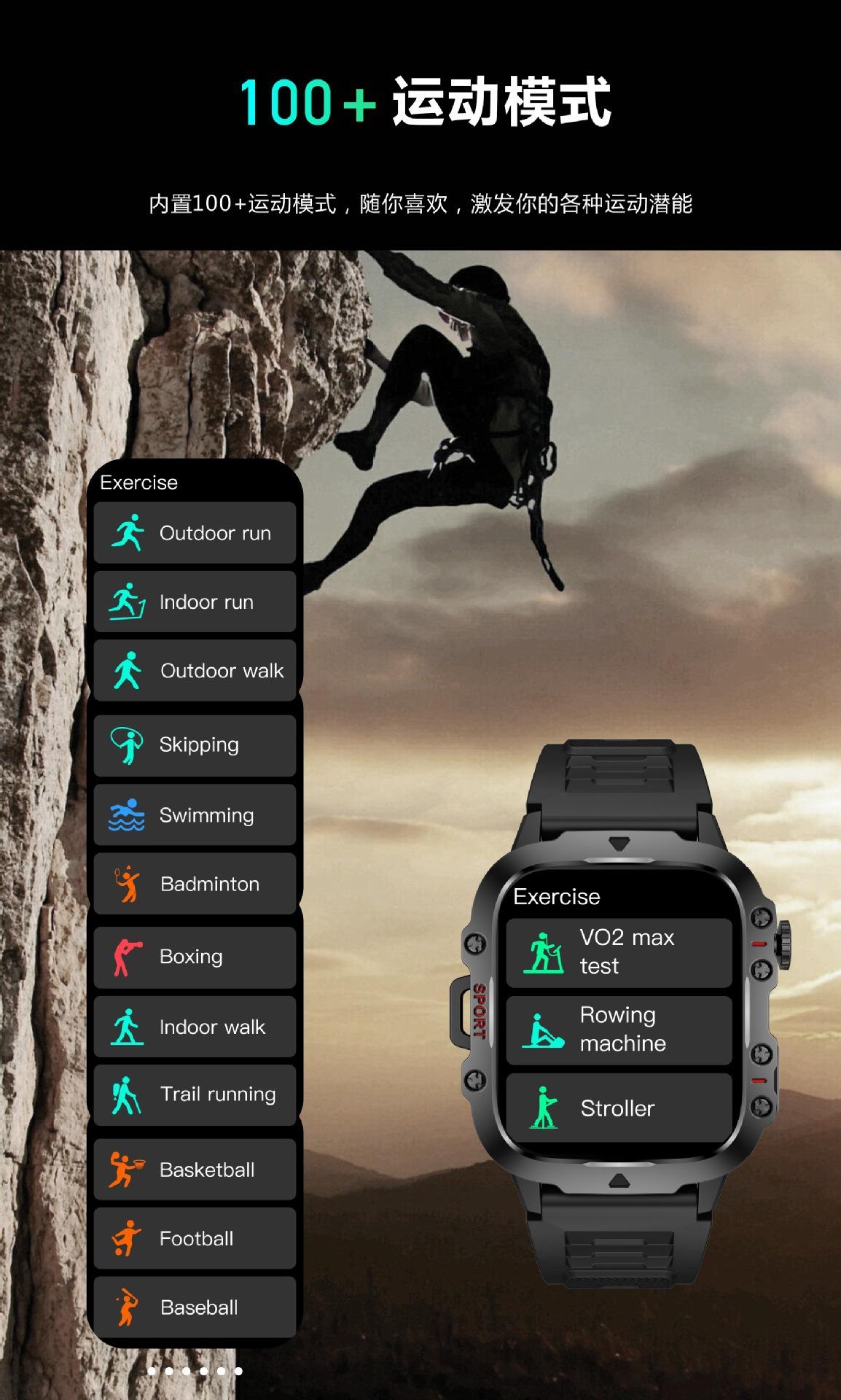 Social entertainment, Smart reminder, Remote control selfie, Sleep monitoring, Blood oxygen detection