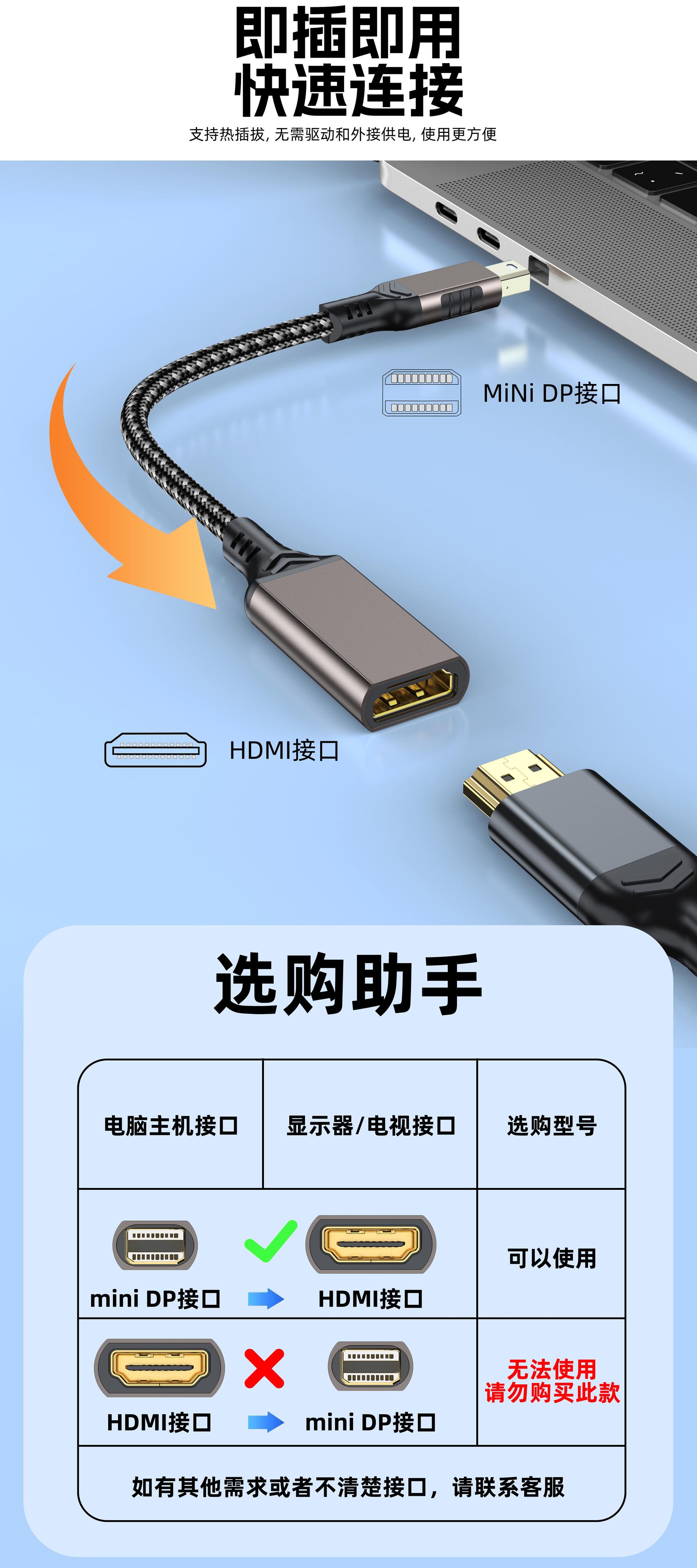 Gunmetal color 0.2m (minidp to hdmi female), Sky gray 0.2m (minidp to hdmi female), Sky gray 2m (minidp to hdmi male)
