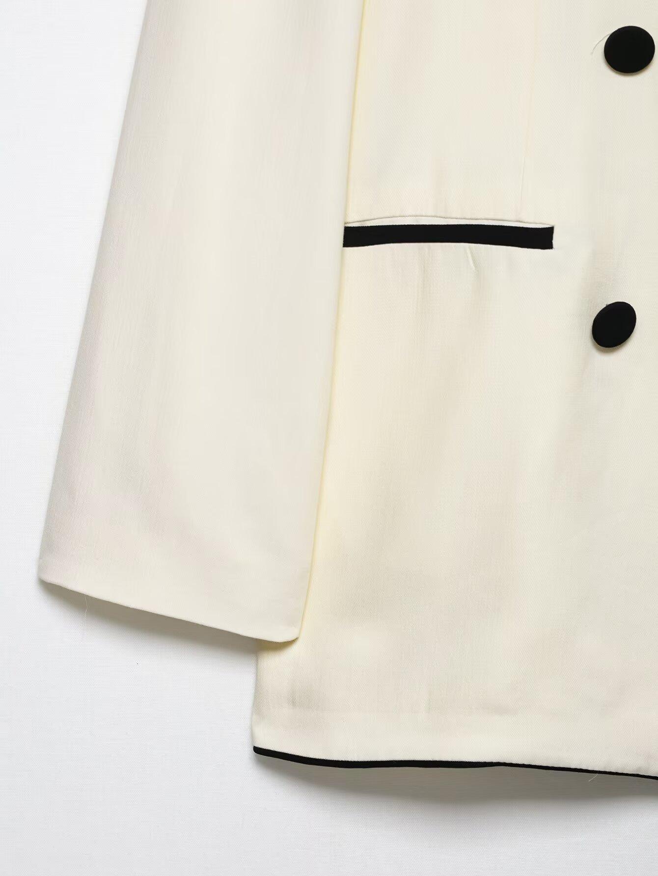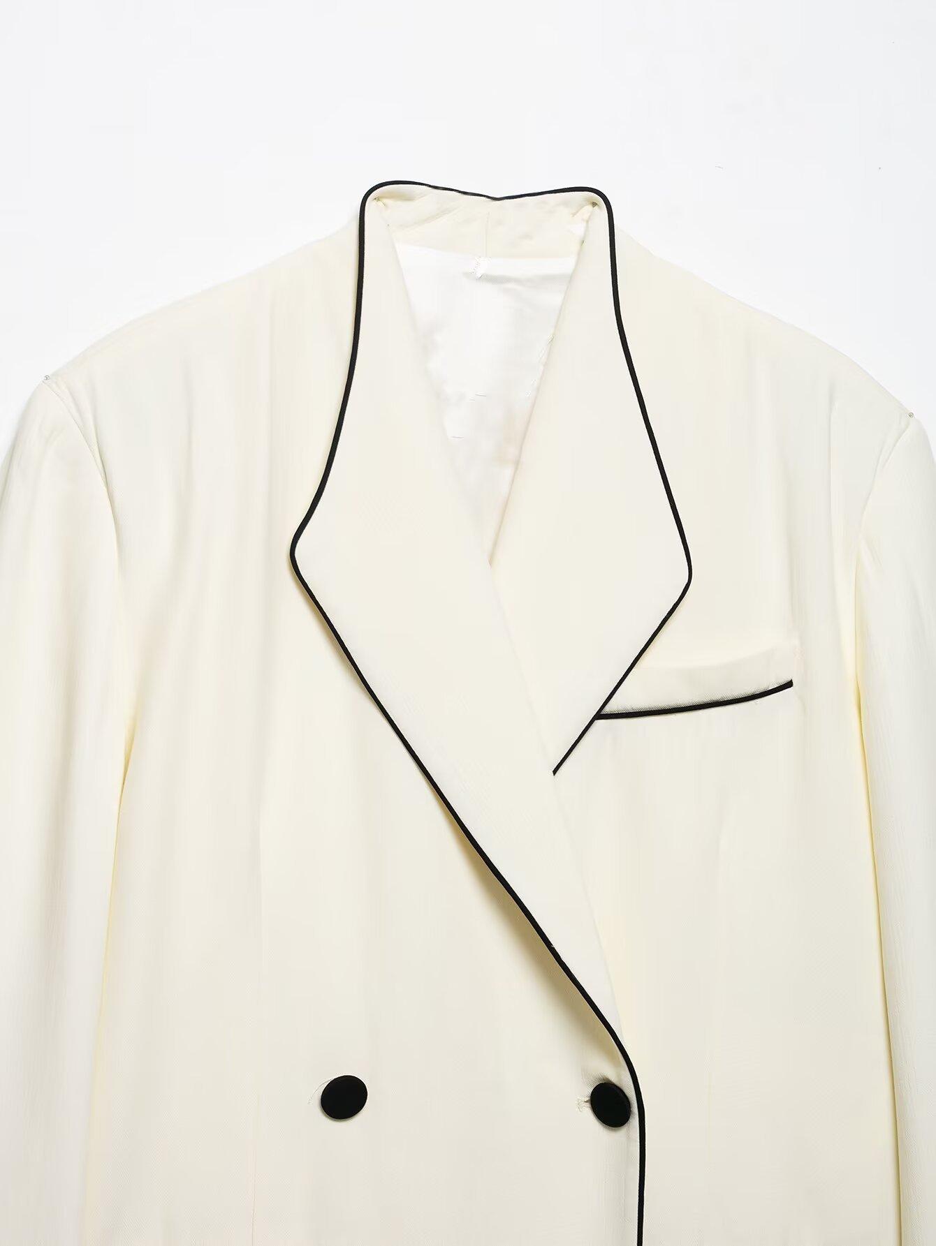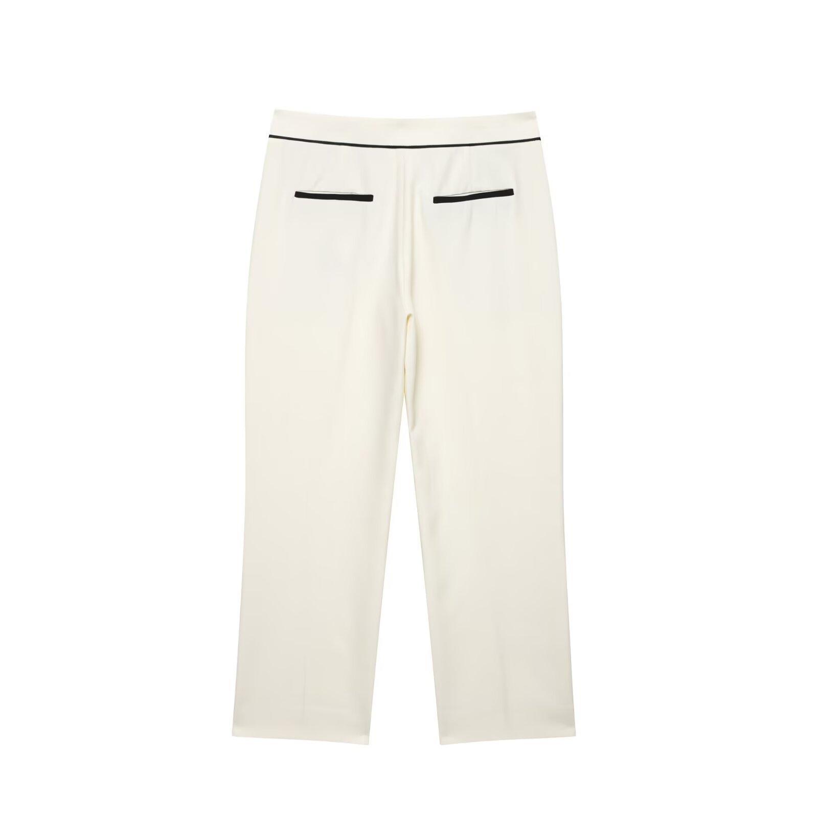 2025 Verano Nuevo Ropa de Mujer Transfronteriza Europea y Americana Traje con Ribete en Contraste Chaqueta + Pantalón W03 6475
