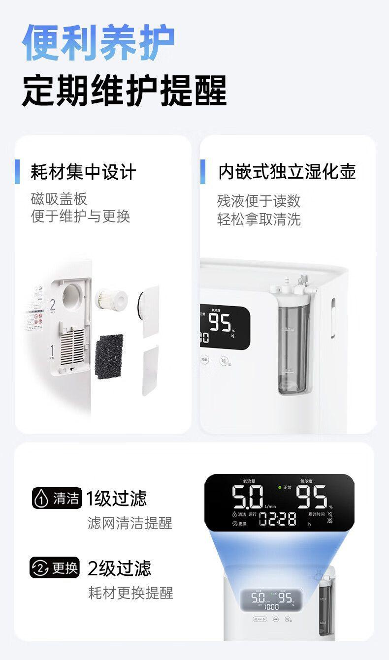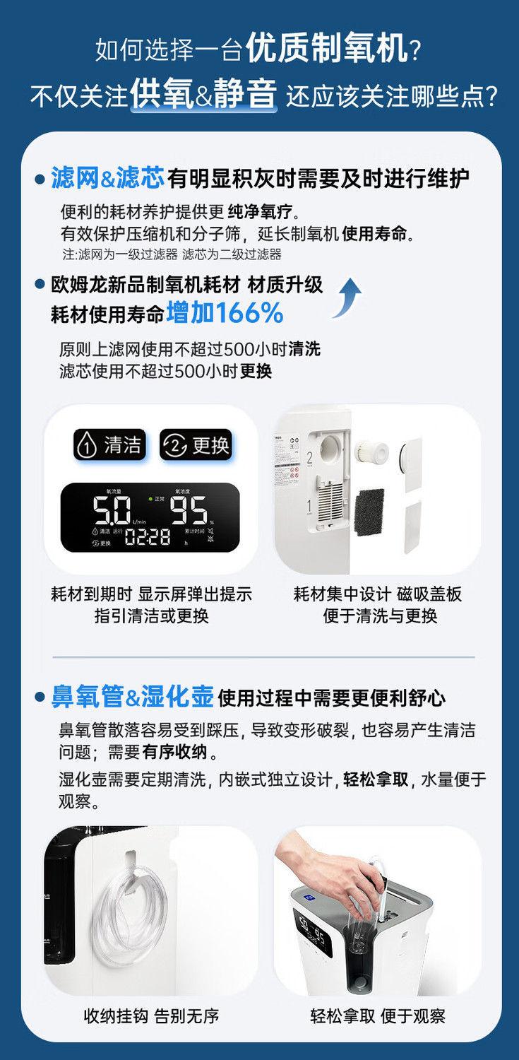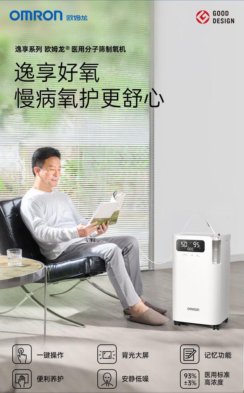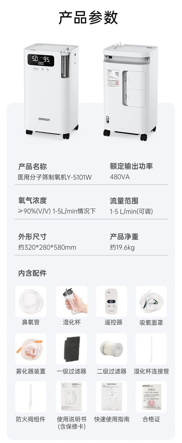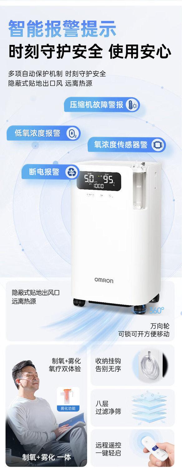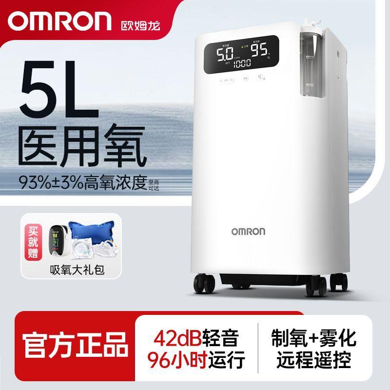 Concentrador de Oxígeno Médico Omron Y-5101W Flujo Grande 5 Litros Inhalador de Oxígeno Tamiz Molecular Médico Luz Sonido Control Remoto Voz