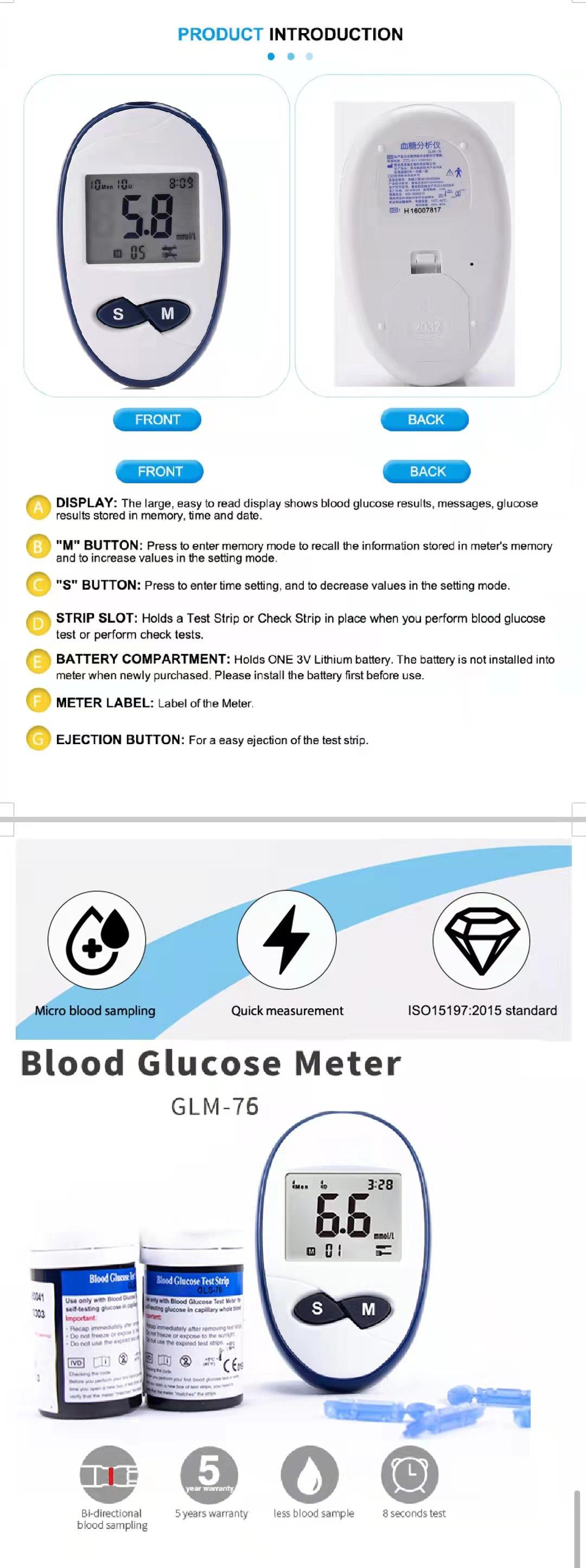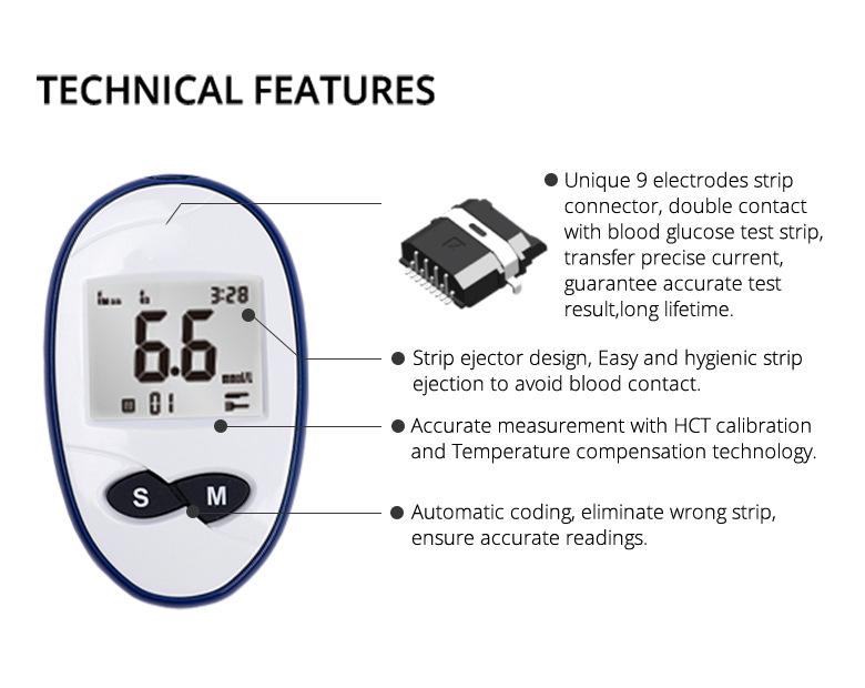 Medidor de Glucosa en Sangre Inglés Transfronterizo Totalmente Automático de Alta Precisión Tiras Reactivas para Medidor de Glucosa en Sangre Inglés
