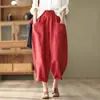 Pantalones Casuales Delgados Nueve Puntos para Mujer con Cintura Elástica, Look Holgado Adelgazante Pantalones Harem de Color Puro, Pantalones Elegantes de Color Puro de Cintura Alta Negro
