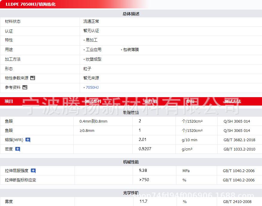 Partículas de Polietileno Lldpe Zhenhai Refinado 7050Hj Grado Moldeo por Soplado Fácil de Procesar Aplicación Industrial Película de Embalaje