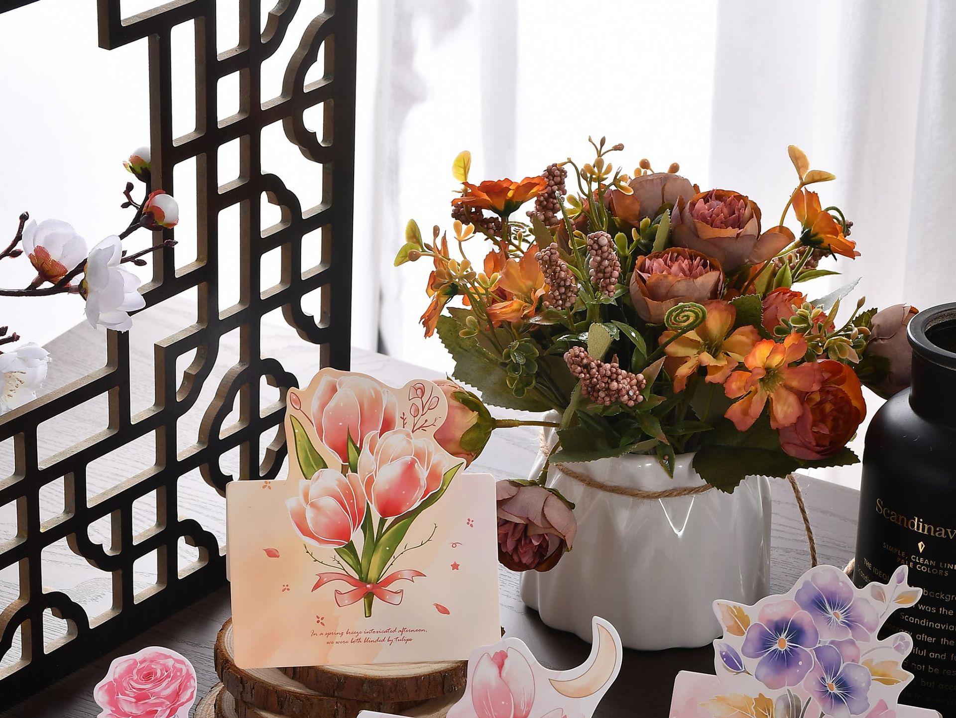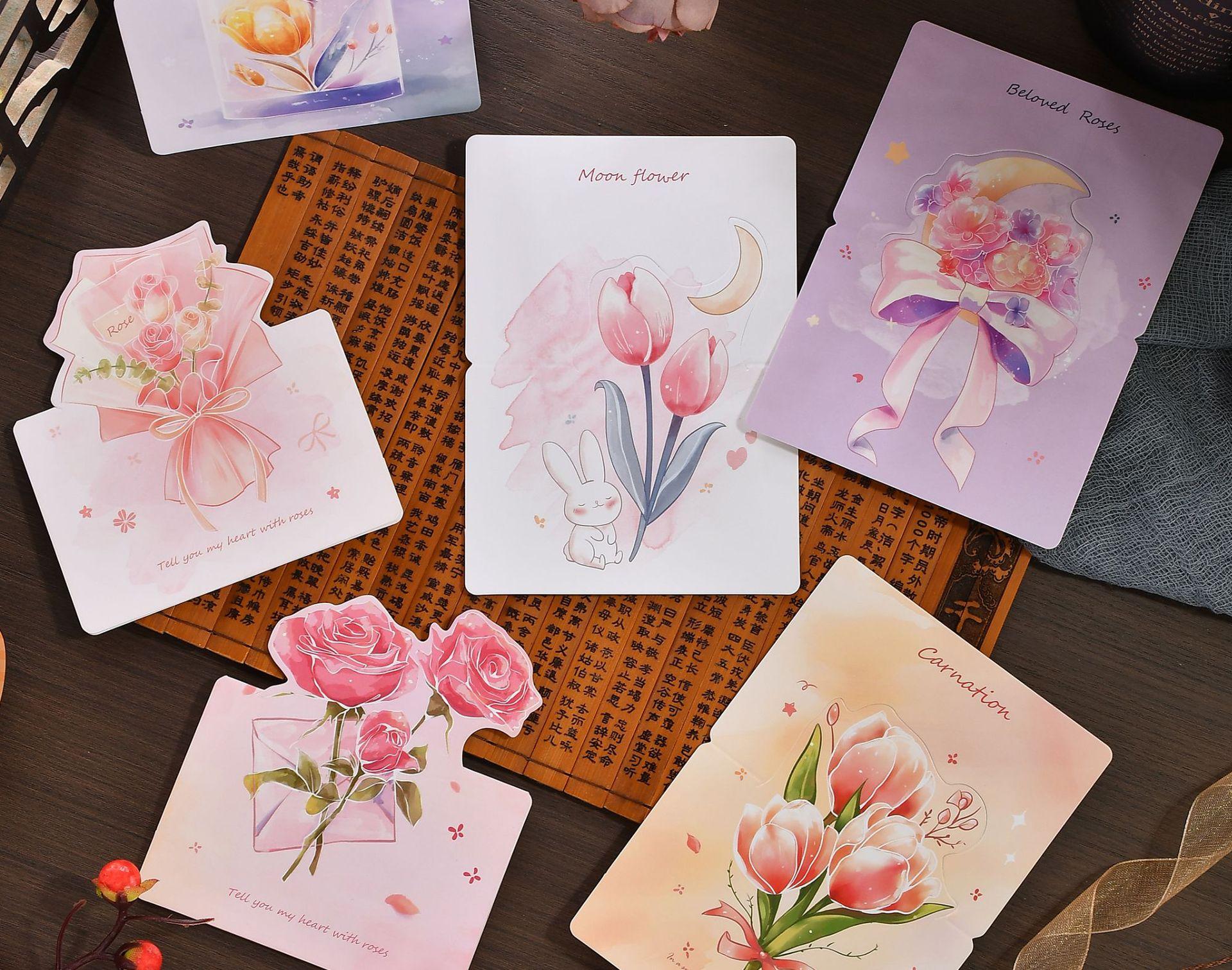 Romantic flower three-dimensional greeting cards, 10 light color mix and match, Romantic flower three-dimensio...