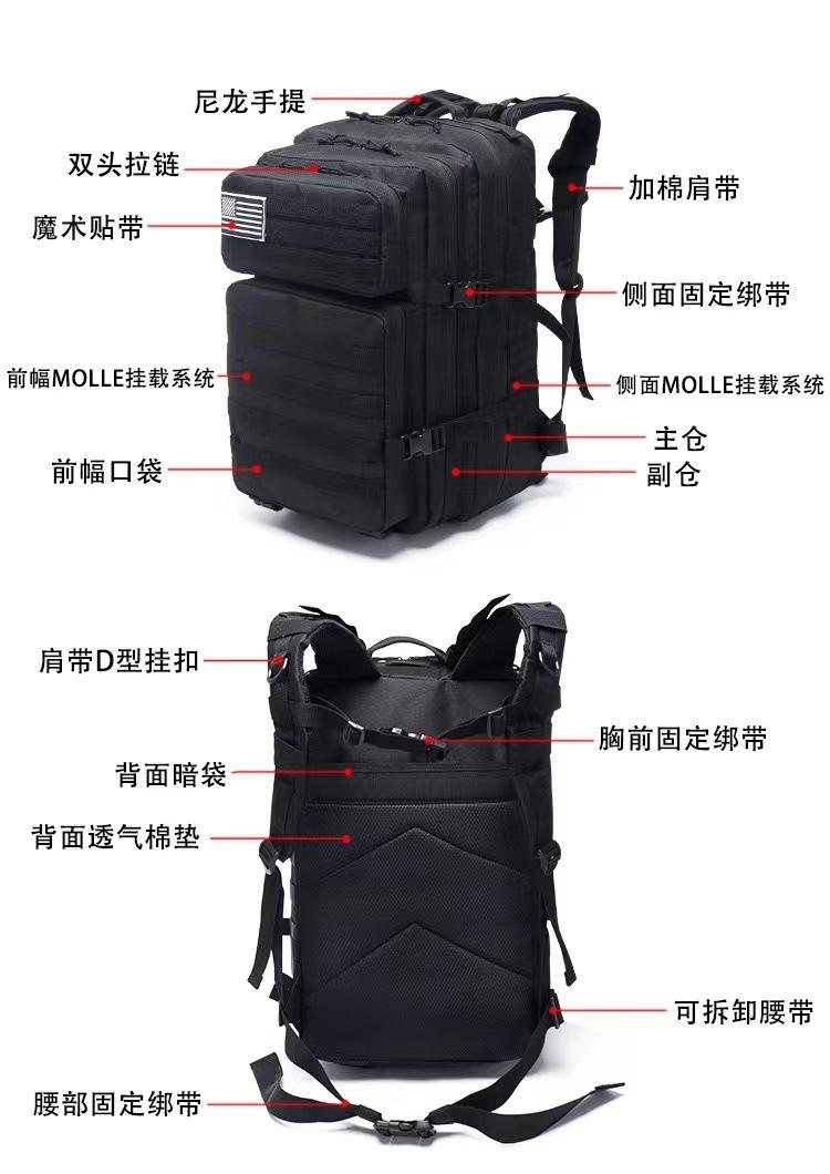 Mochila Táctica de Ataque 3P para Exterior Multifuncional 45L Gran Capacidad Camuflaje Deportes al Aire Libre Montañismo Mochila Doble Hombro