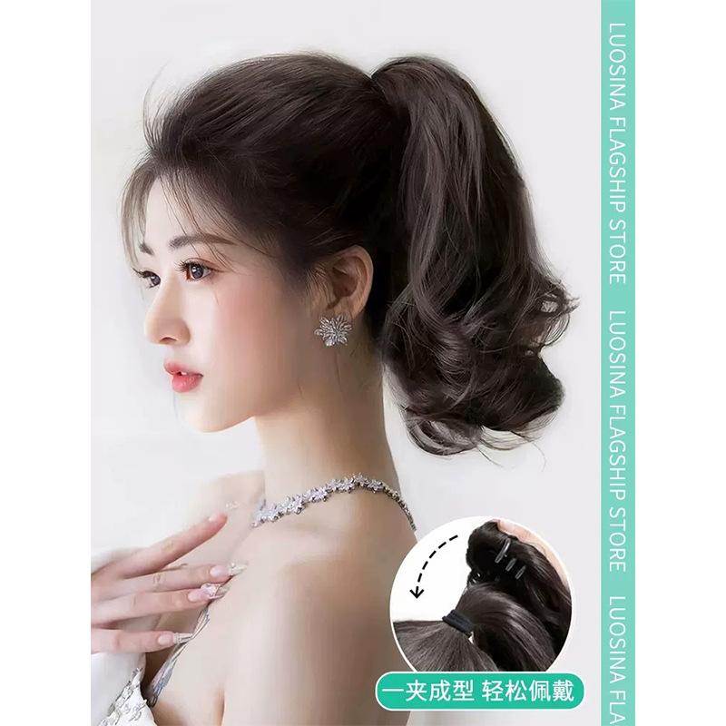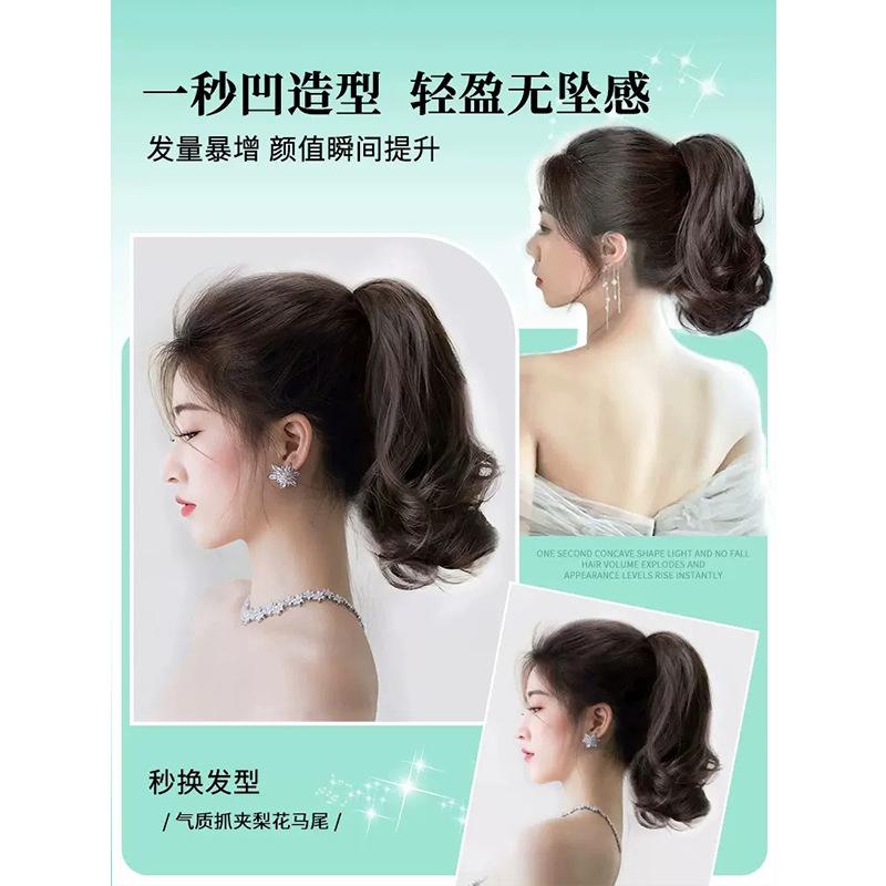 Peluca de Cola de Caballo para Mujer Cola de Caballo Alta con Clip Cabello Rizado Cola de Caballo Corta Cabello Natural Rizo Flor de Pera Peluca Baja Trenza