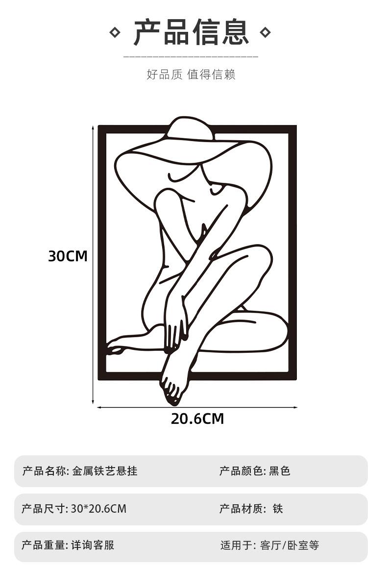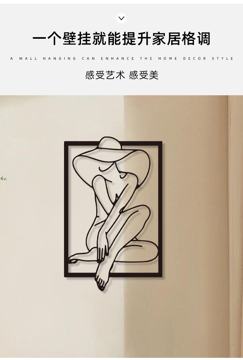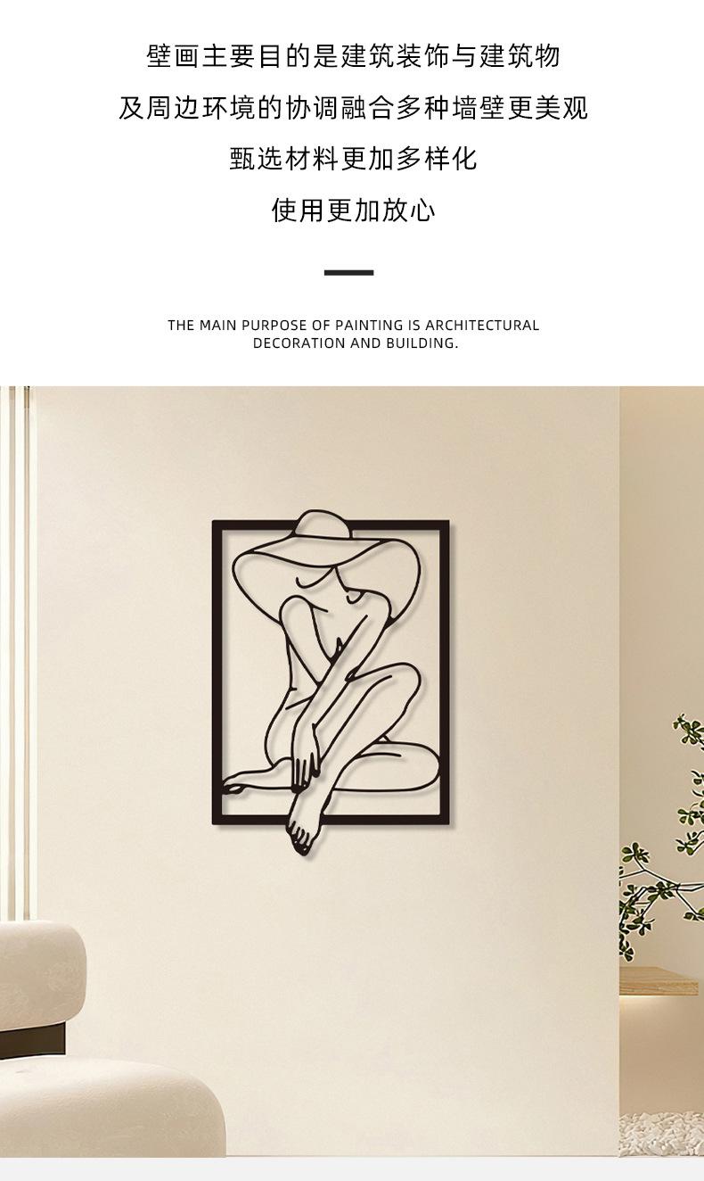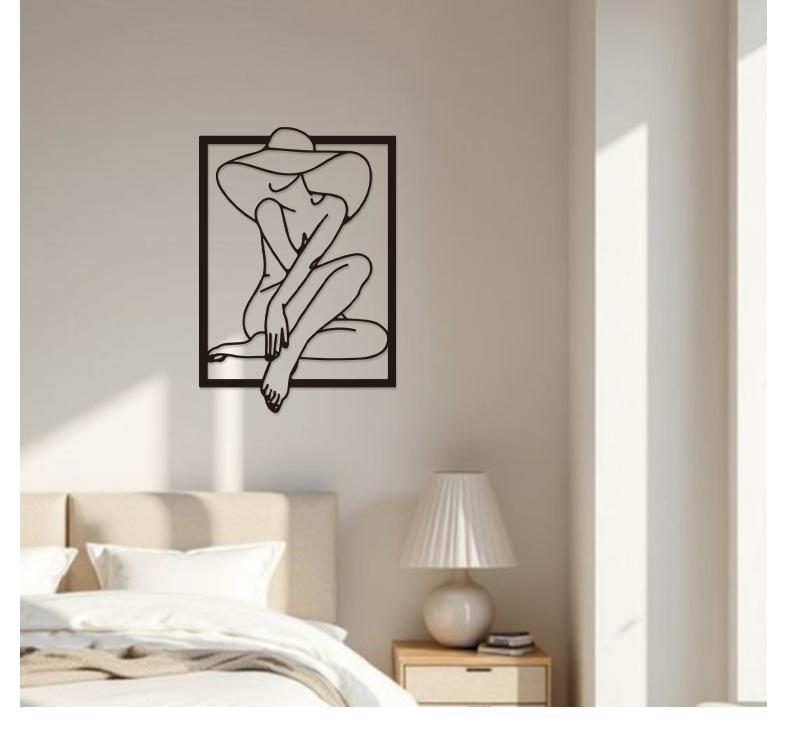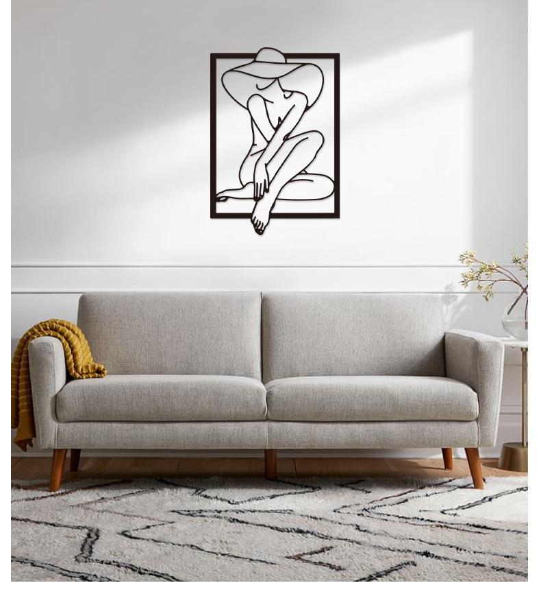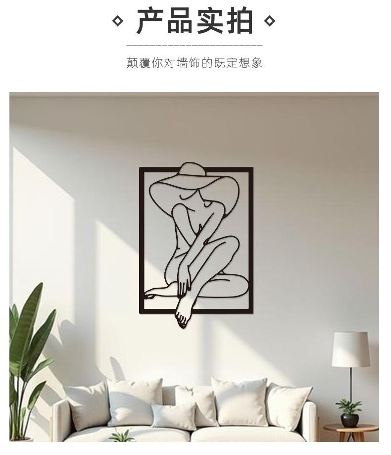 Hogar Arte Colgante de Pared de Metal Negro Estilo Línea Silueta Decoración de Pared Estilo Frío Europeo y Americano Entrada Decoración de Pared de Dormitorio
