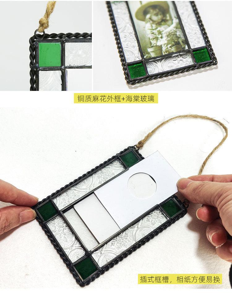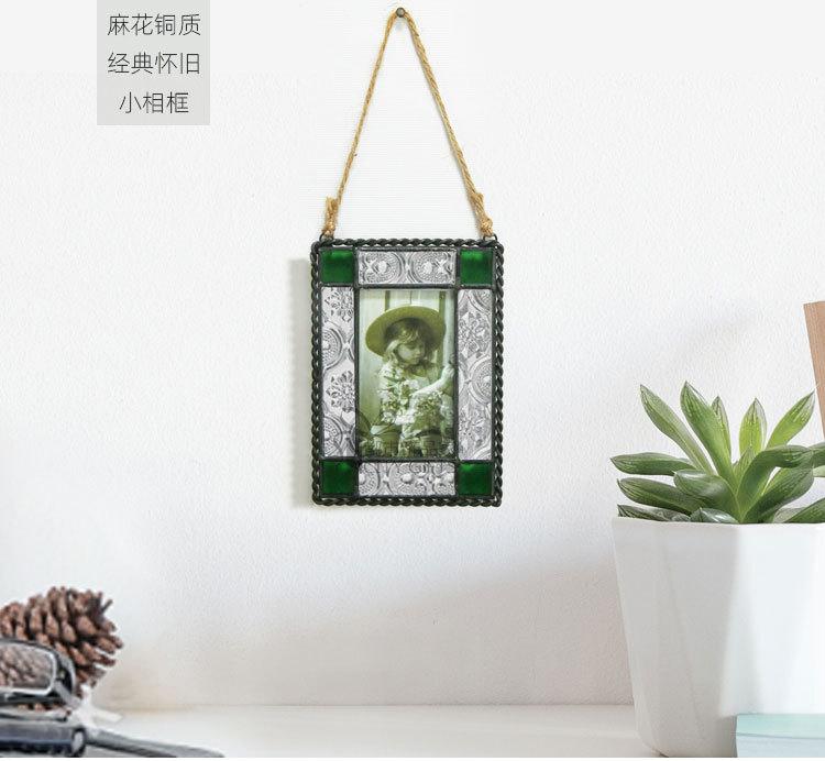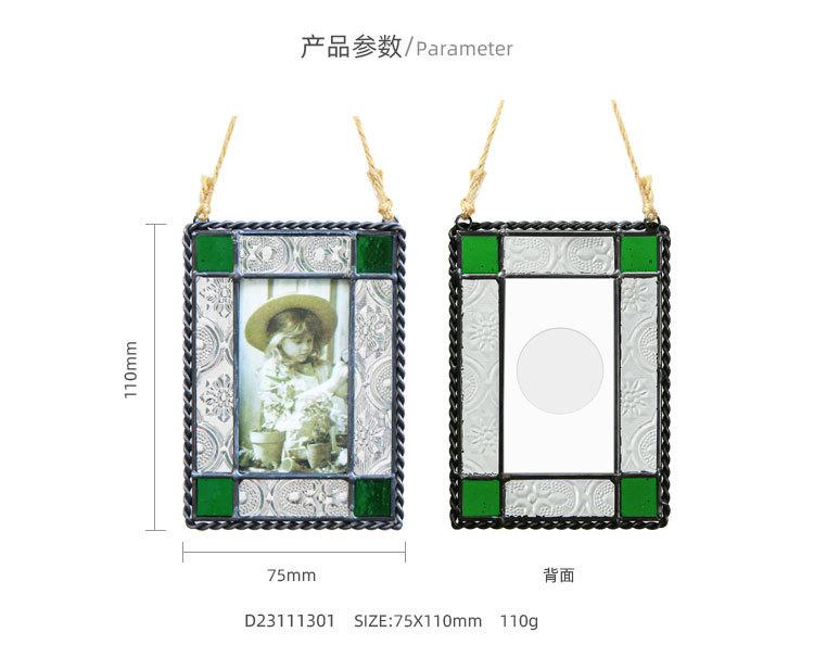 Marco de Fotos de Vidrio de Color Marco de Fotos Pequeño Europeo Retro Nostálgico Decoración Colgante Decoración para el Hogar Marco de Fotos Colgante de Pared Marco de Fotos