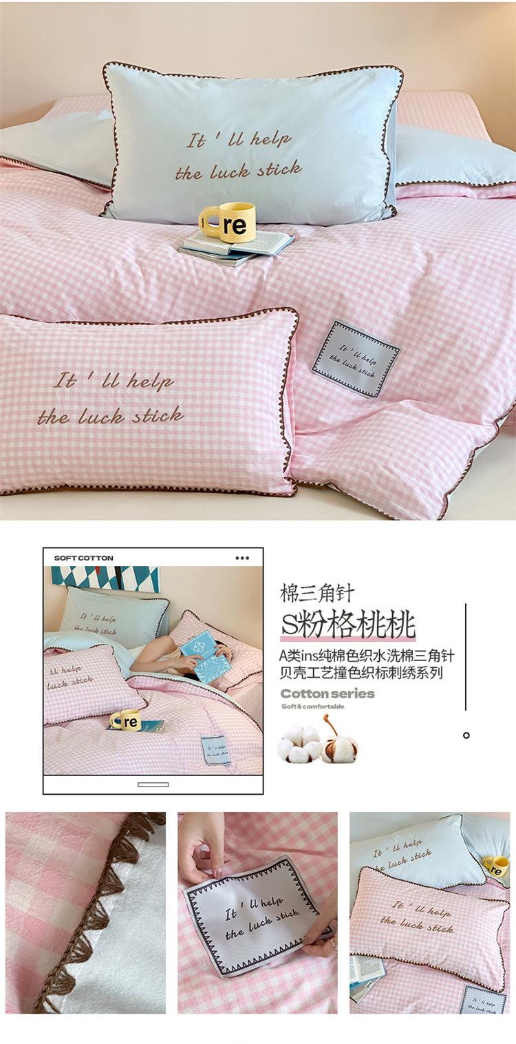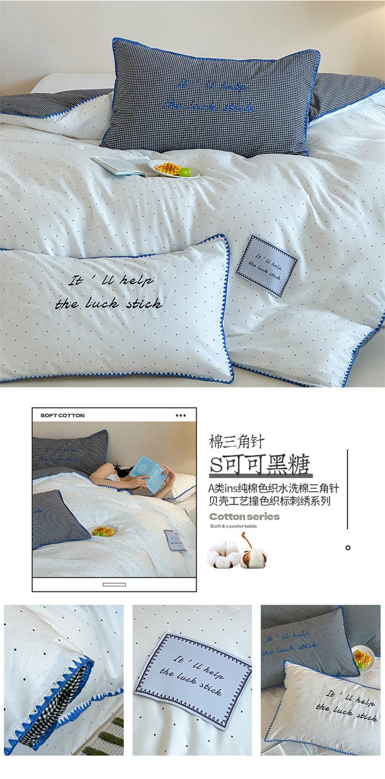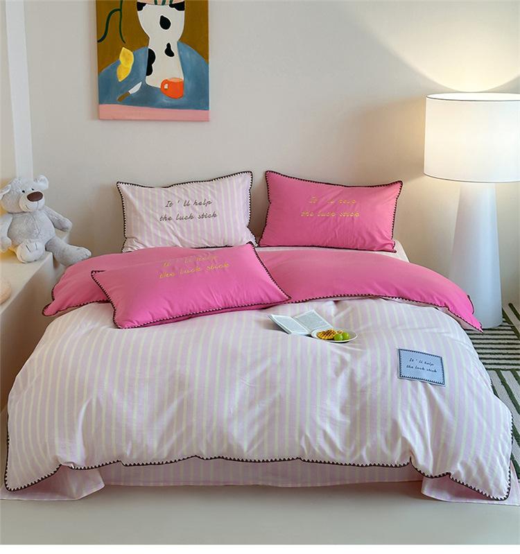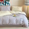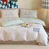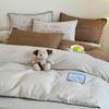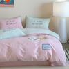 Juego de cama de cuatro piezas de algodón puro clase A, algodón lavado, algodón puro 100, sencillo, estilo Ins, funda de edredón, sábanas, juego de cama de 3 piezas para dormitorio individual