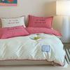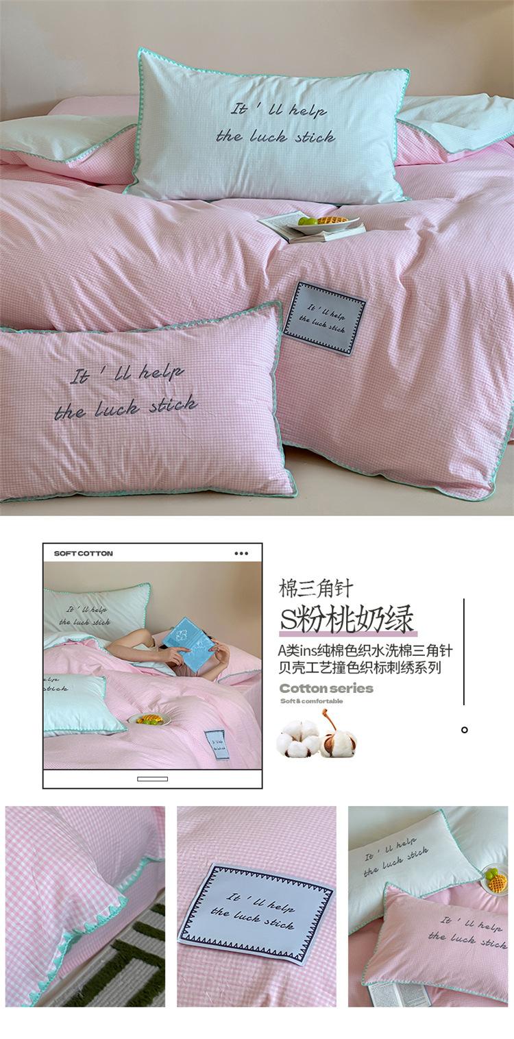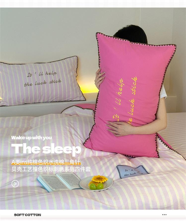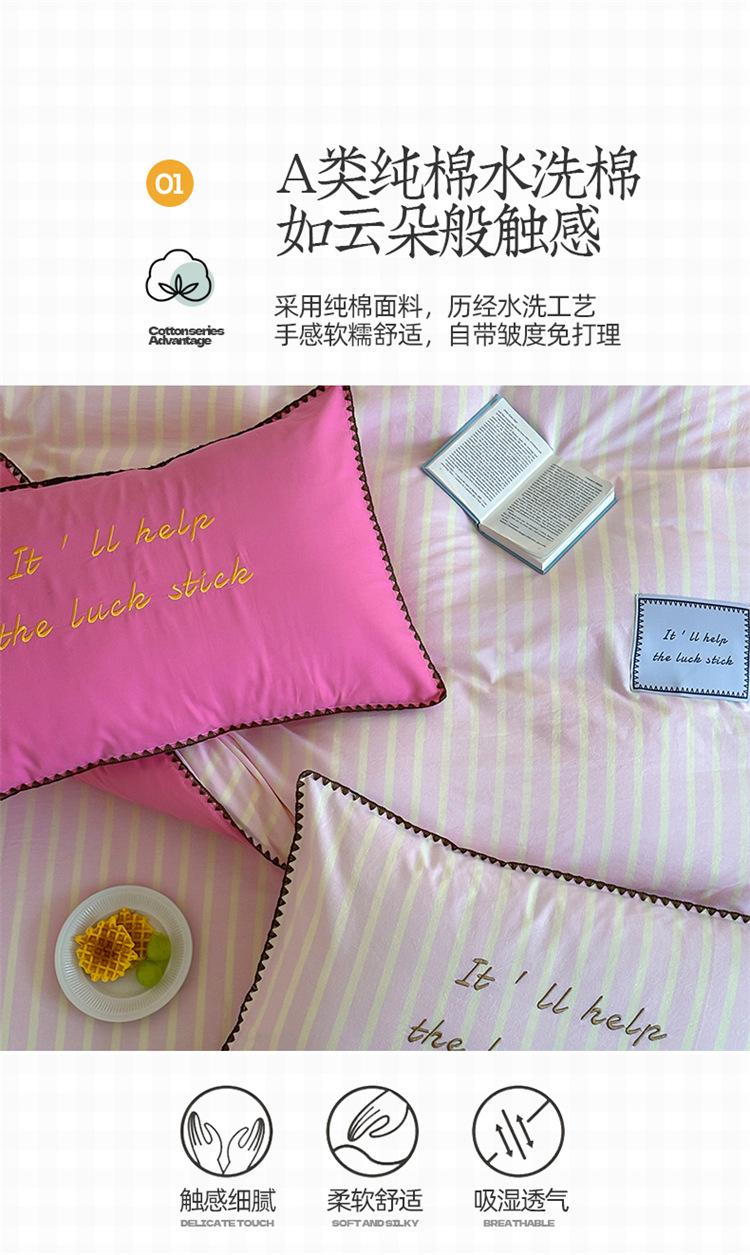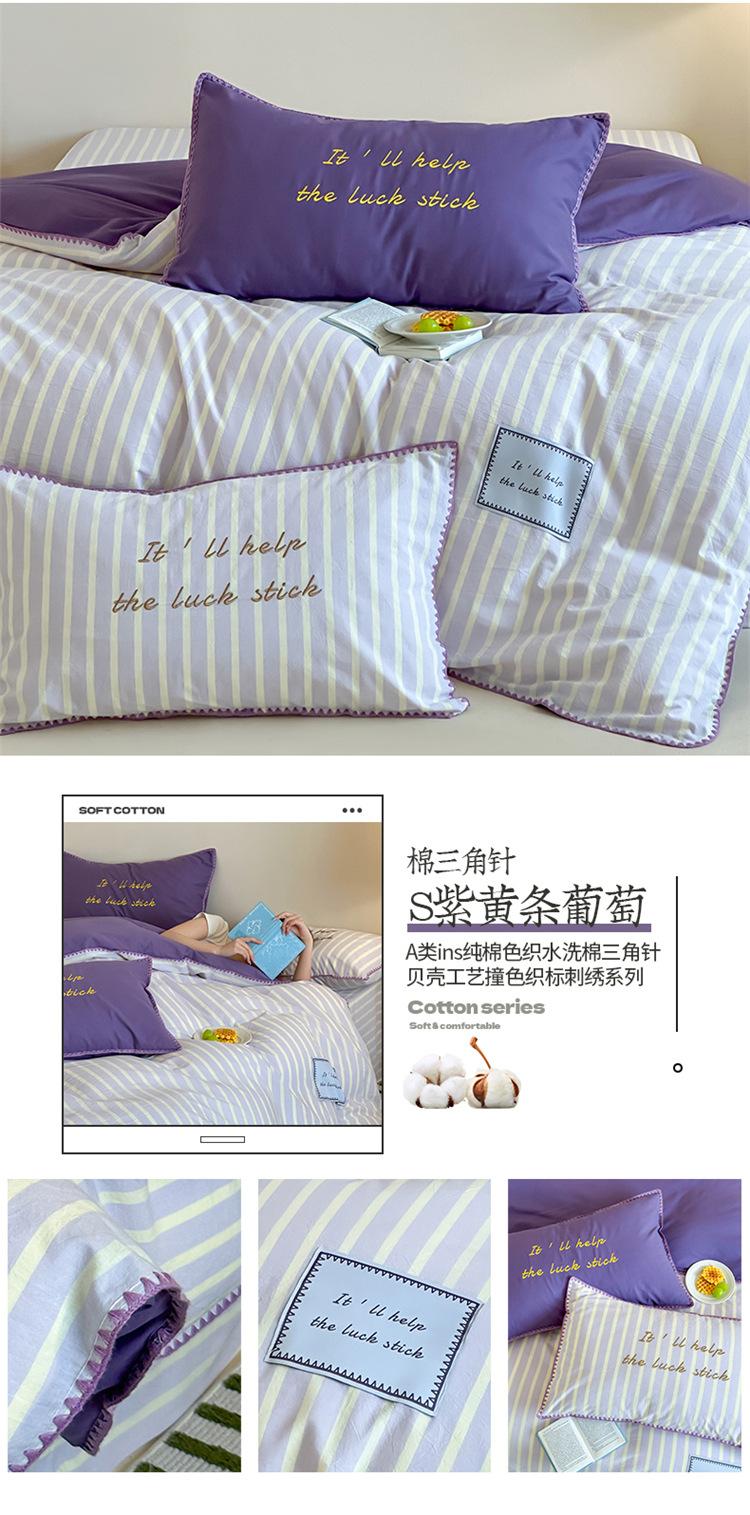 Juego de cama de cuatro piezas de algodón puro clase A, algodón lavado, algodón puro 100, sencillo, estilo Ins, funda de edredón, sábanas, juego de cama de 3 piezas para dormitorio individual