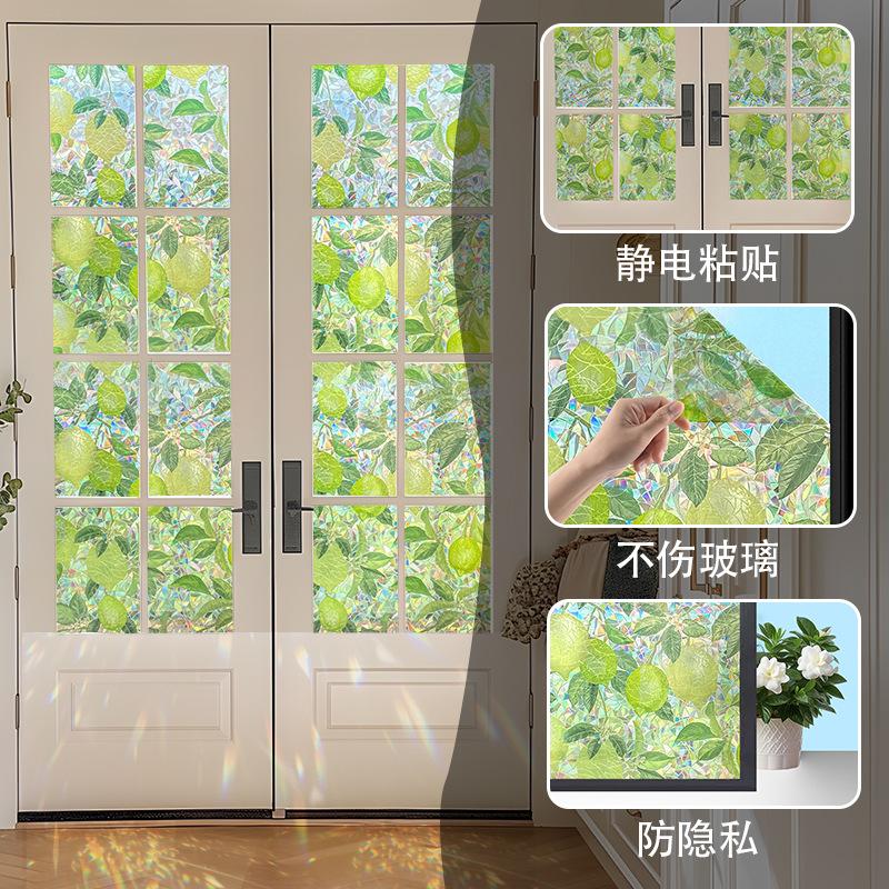 Película de Vidrio Láser 3D Transfronteriza Translúcida Translúcida Puerta de Vidrio para Balcón Adhesivo de Vidrio Colorido con Forma de Luna Creciente Venta al por Mayor