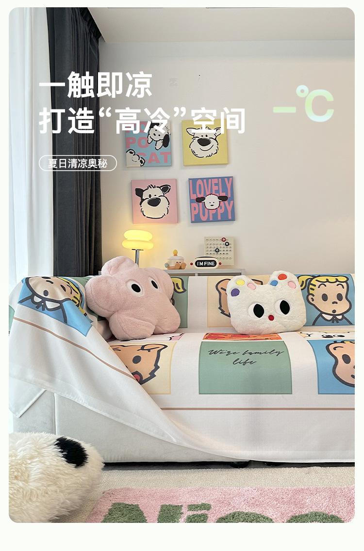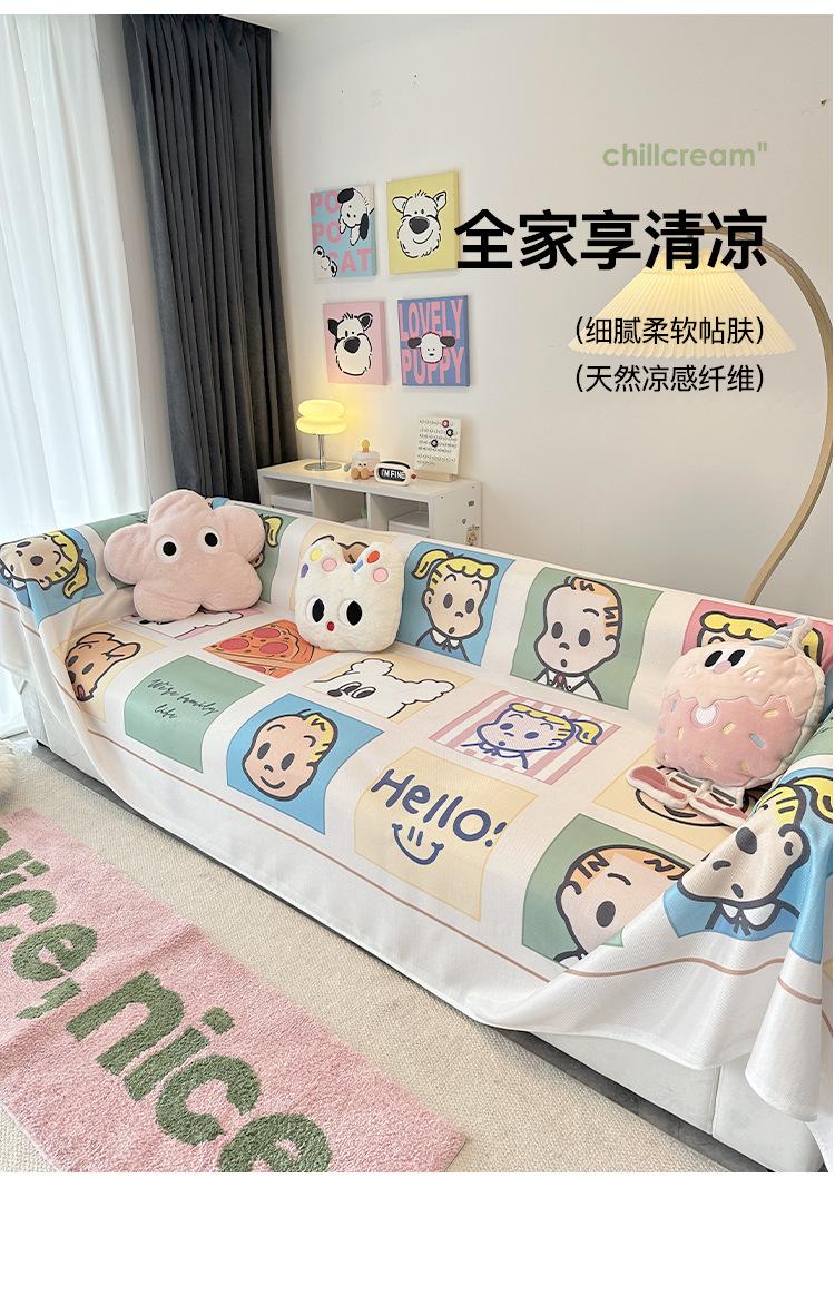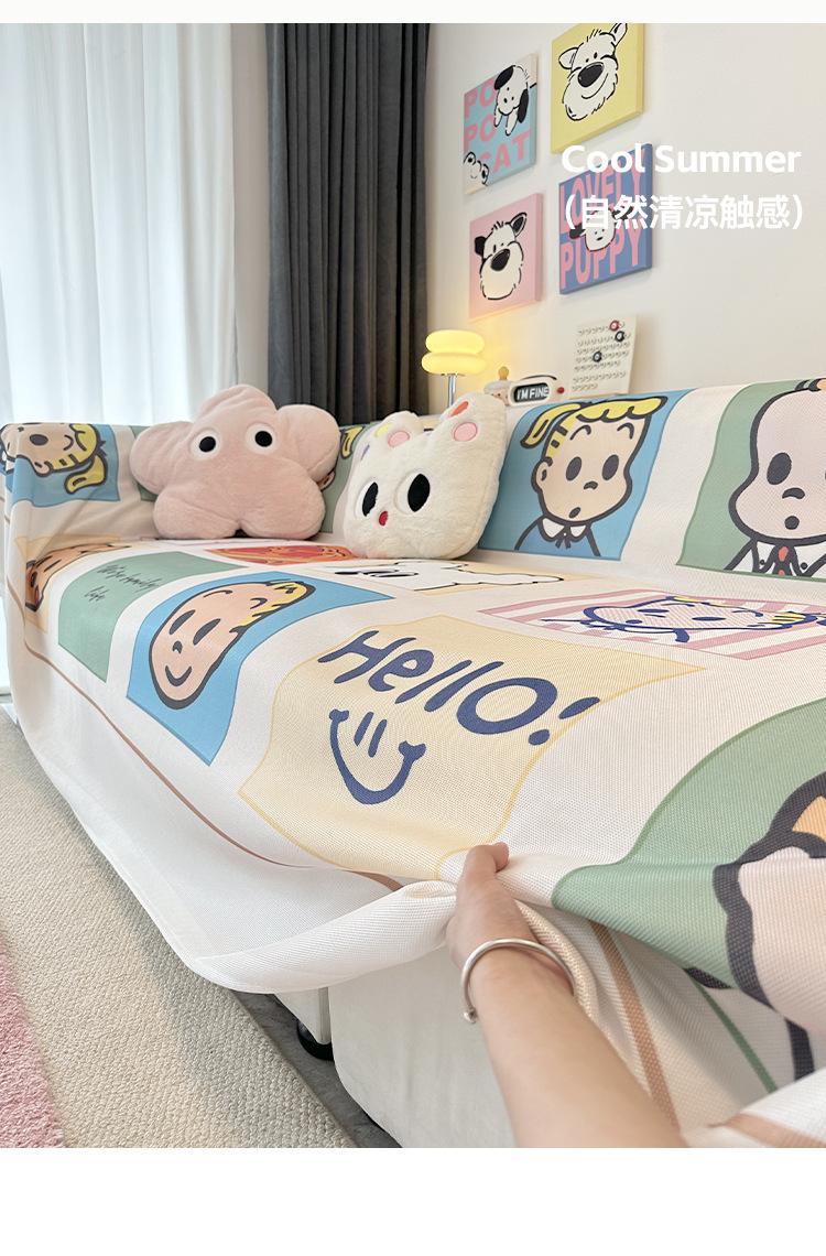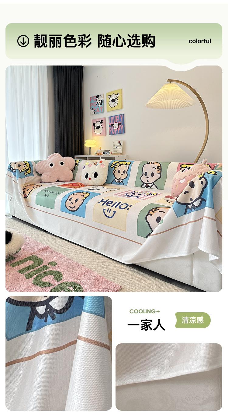 2024 Dibujo Animado Imitación Lino Tela Verano Cojín de Sofá Cubierta Completa Toalla para Sofá Cubre Sofá Mejora Refrescante Seda de Hielo