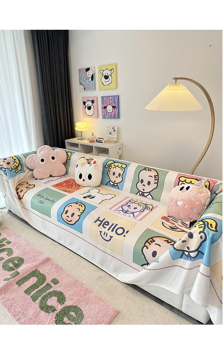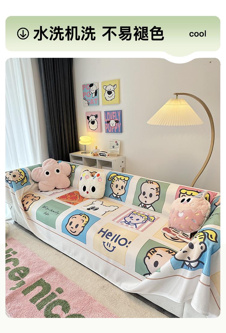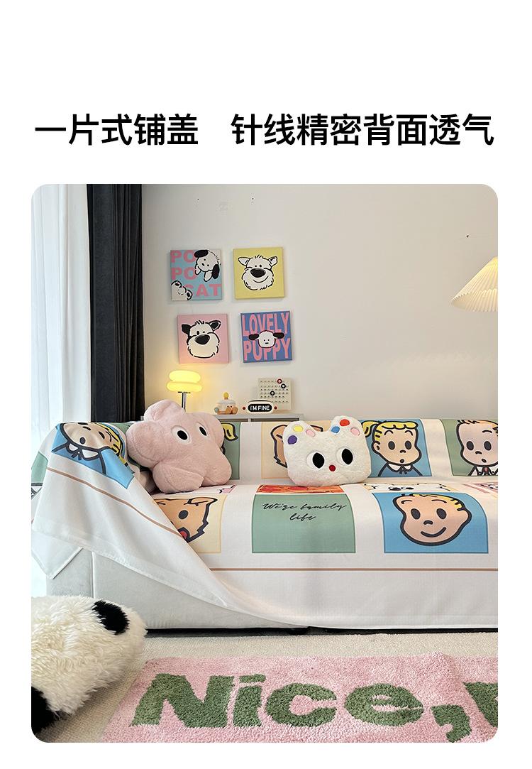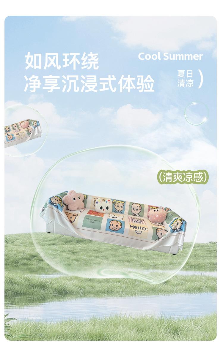 2024 Dibujo Animado Imitación Lino Tela Verano Cojín de Sofá Cubierta Completa Toalla para Sofá Cubre Sofá Mejora Refrescante Seda de Hielo
