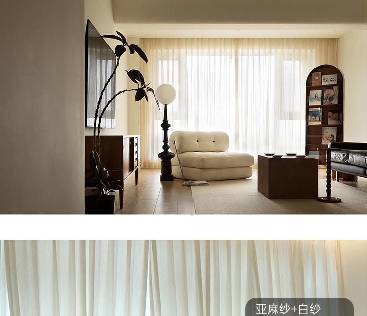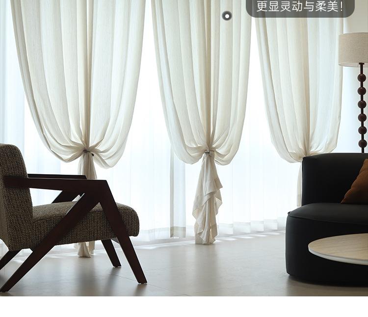 Cortina de gasa francesa retro de alta calidad, transparente, para ventana, para sala de estar, ventanal, color crema, de lino, silenciosa y resistente al viento.