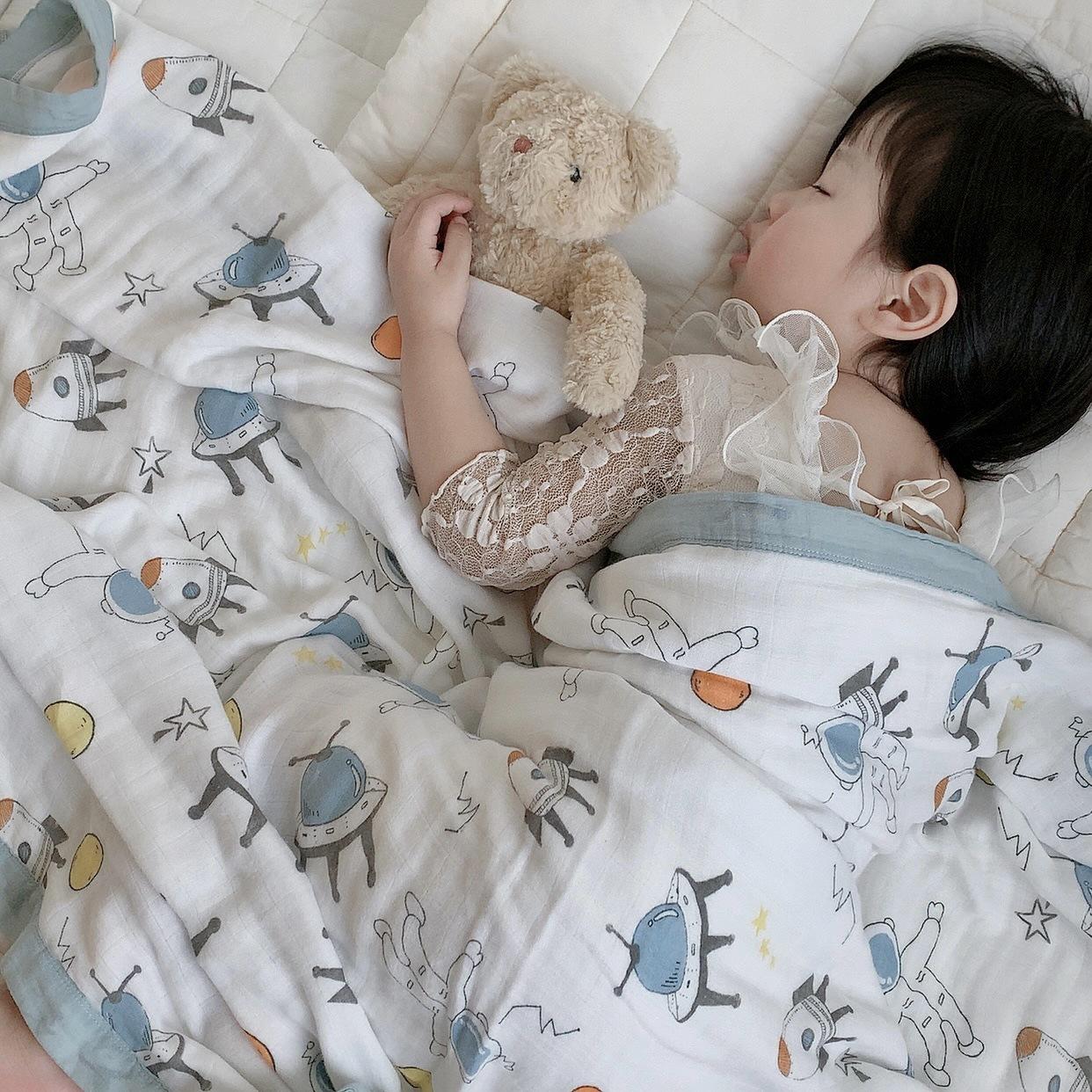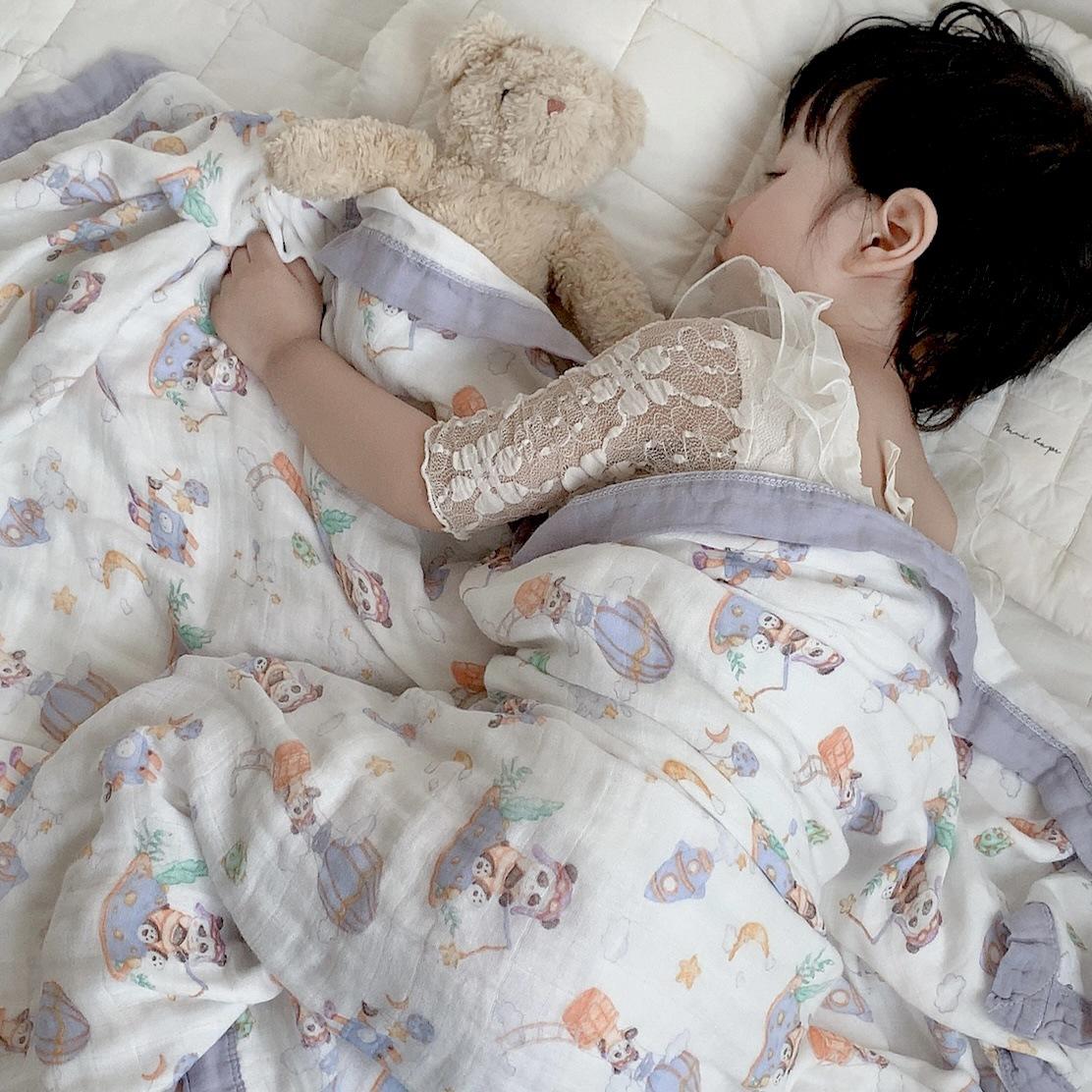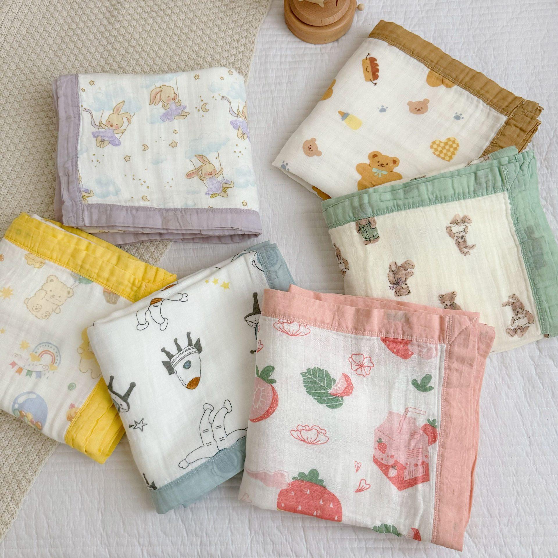 También se puede usar como envoltorio para bebé, toalla de baño, toalla para lactancia, colcha pequeña y tapete. Es una manta multifuncional de gasa de cuatro capas que satisface las diferentes necesidades de los bebés.
