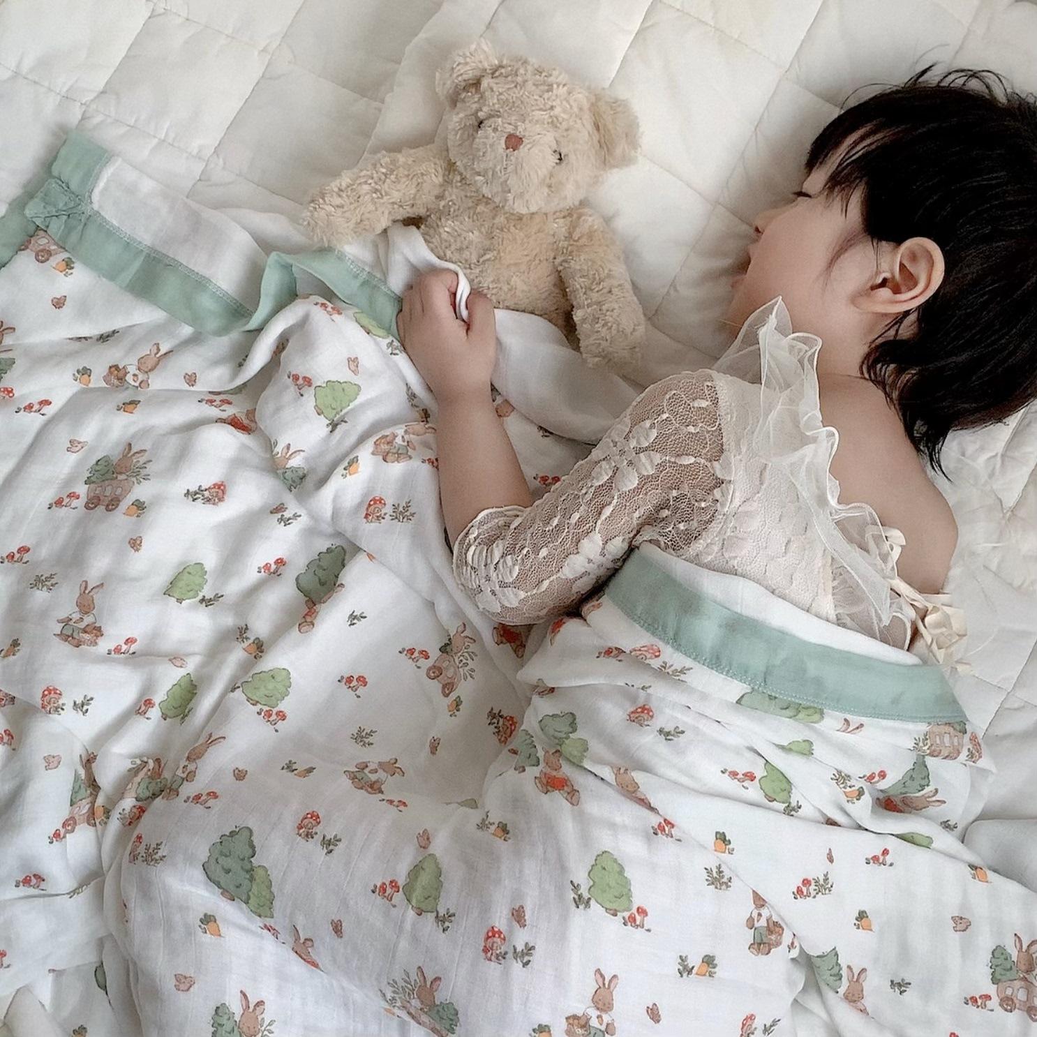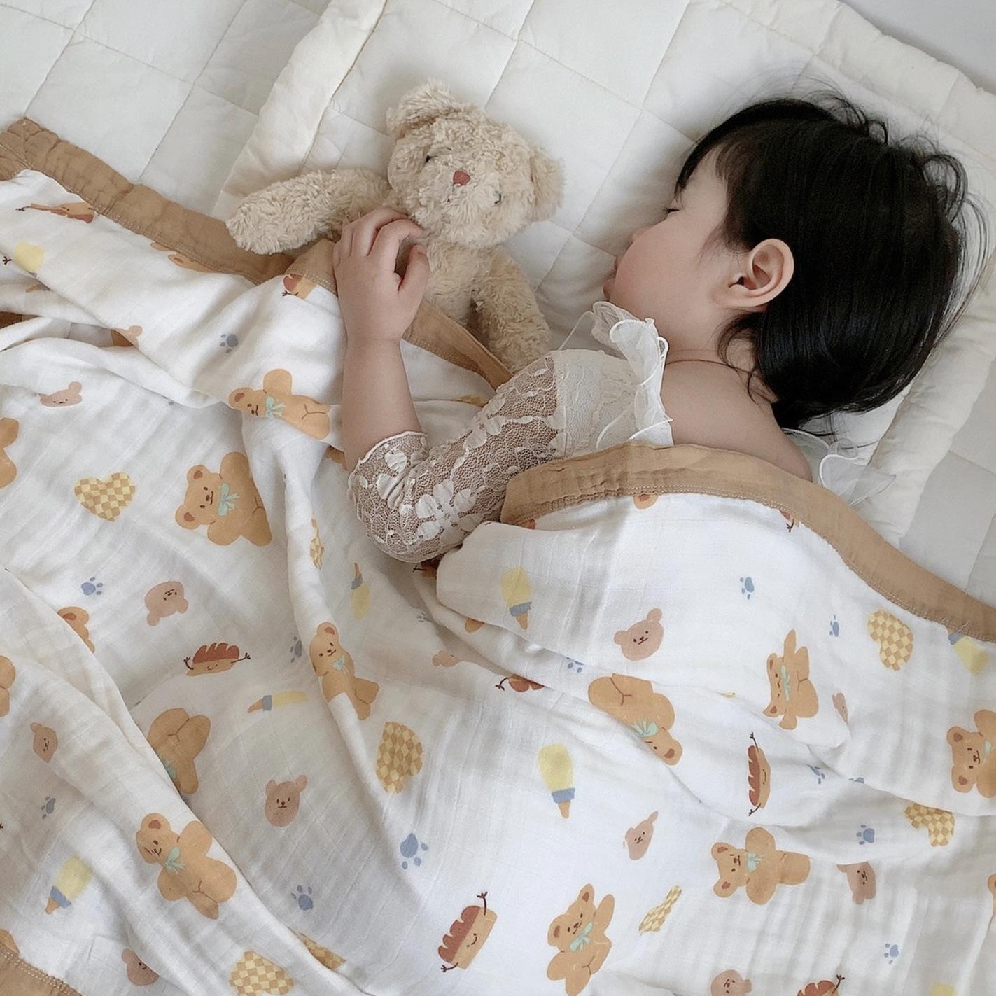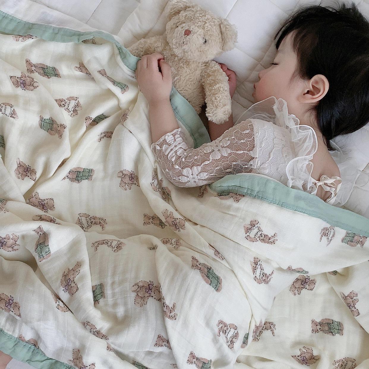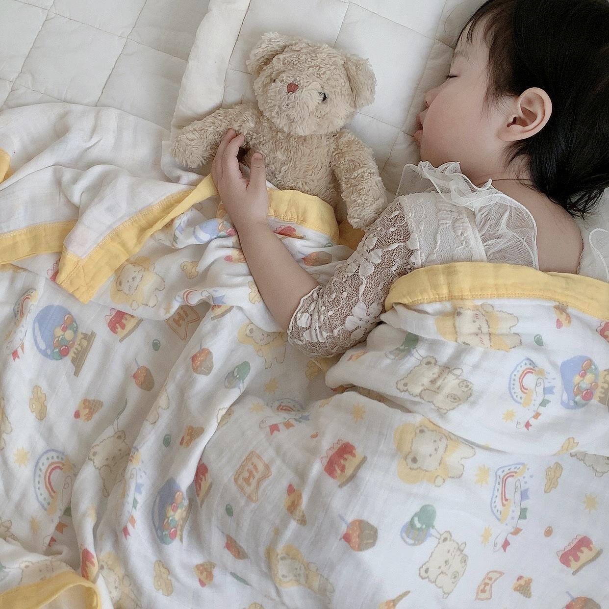 También se puede usar como envoltorio para bebé, toalla de baño, toalla para lactancia, colcha pequeña y tapete. Es una manta multifuncional de gasa de cuatro capas que satisface las diferentes necesidades de los bebés.