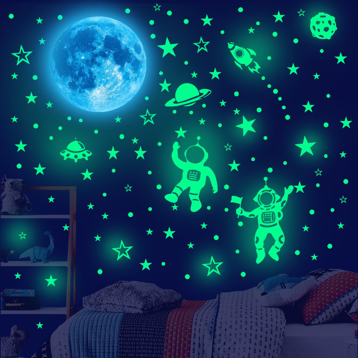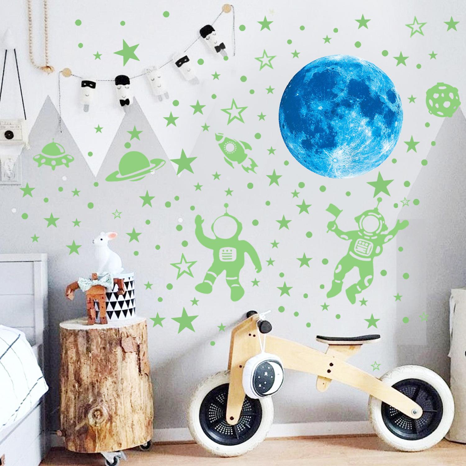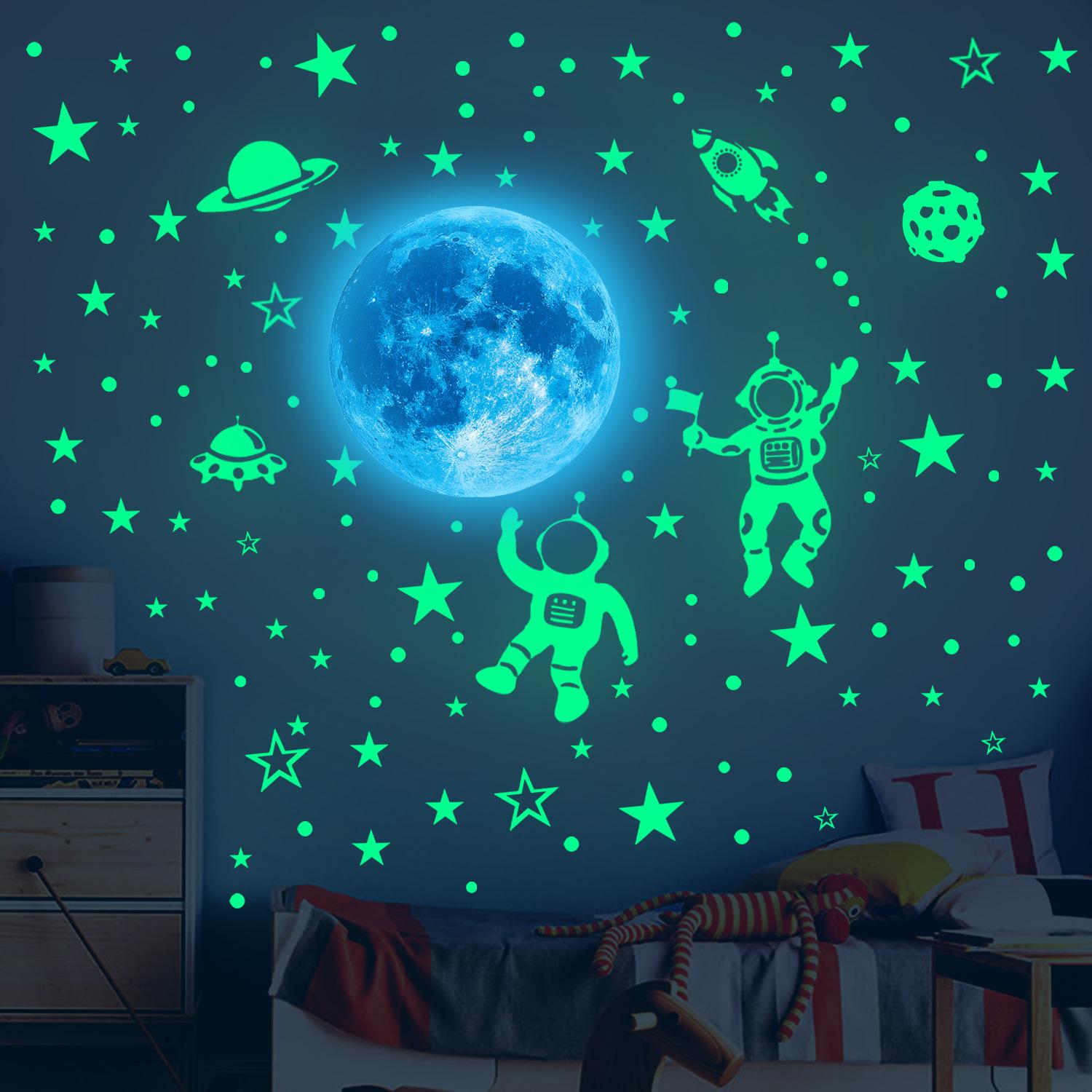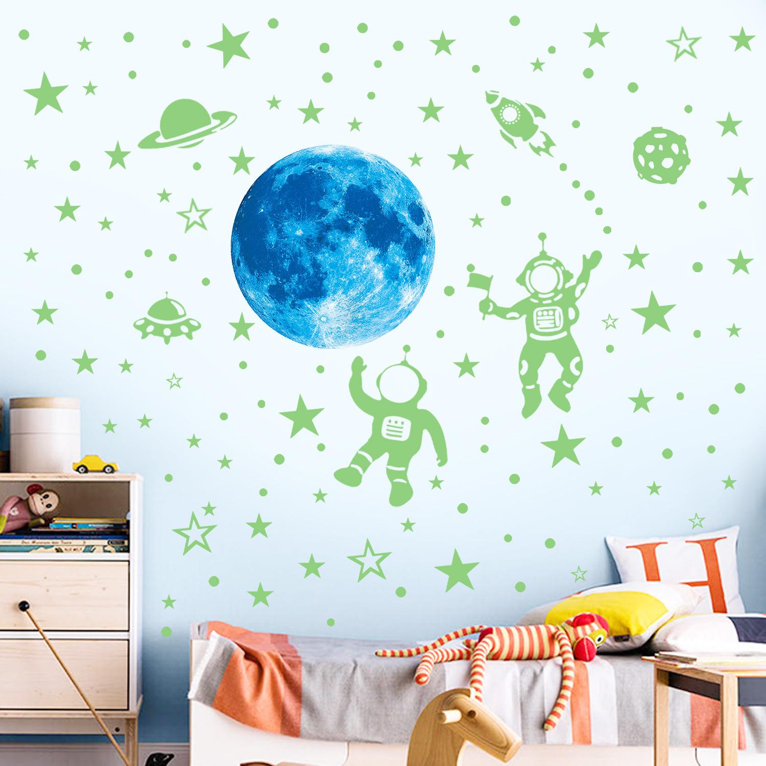 Pegatinas Creativas Luminosas Verdes de Astronauta de Luna Nueva Transfronterizas Decoración del Hogar Techo Pared Pegatinas Fluorescentes