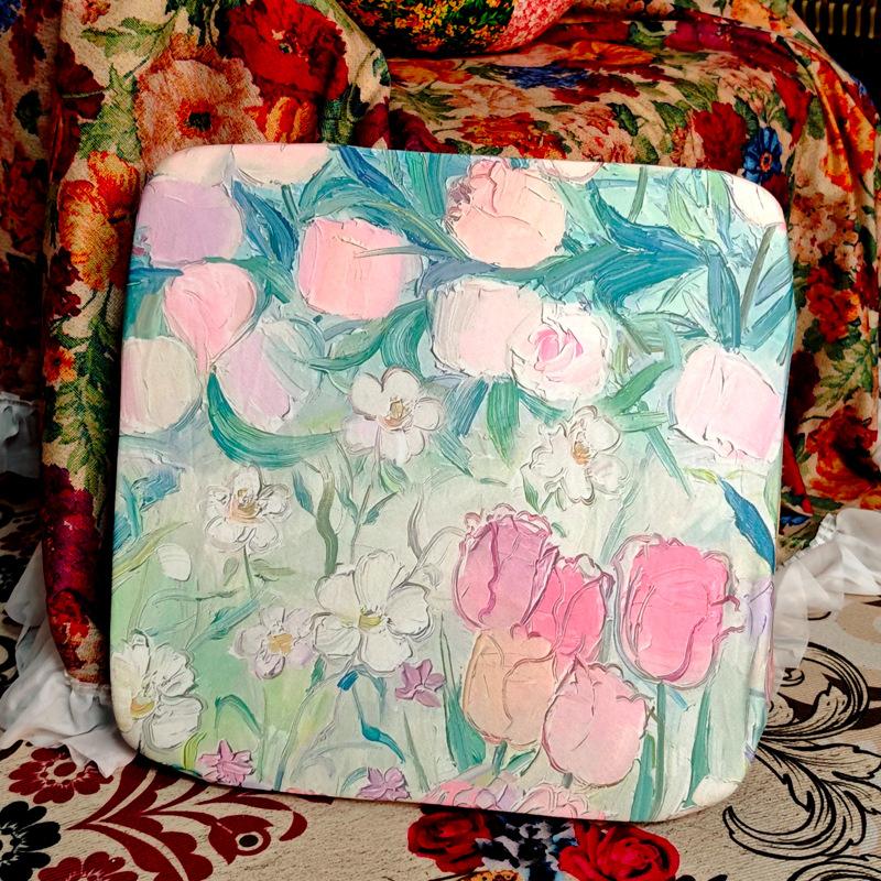 Sponge-oil painting tulip, Sponge-oil painting green lawn, Sponge-orange white transparent flowers, Sponge-pur...