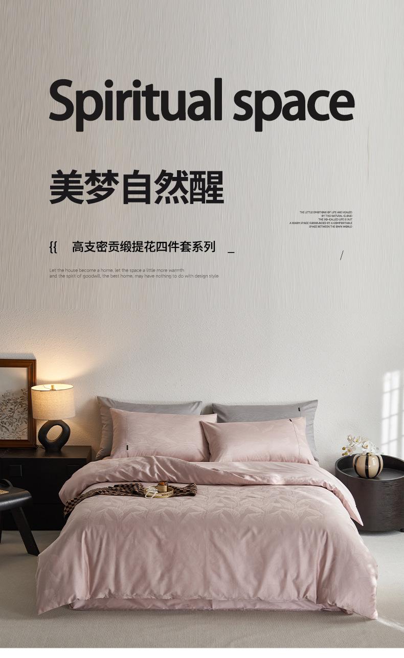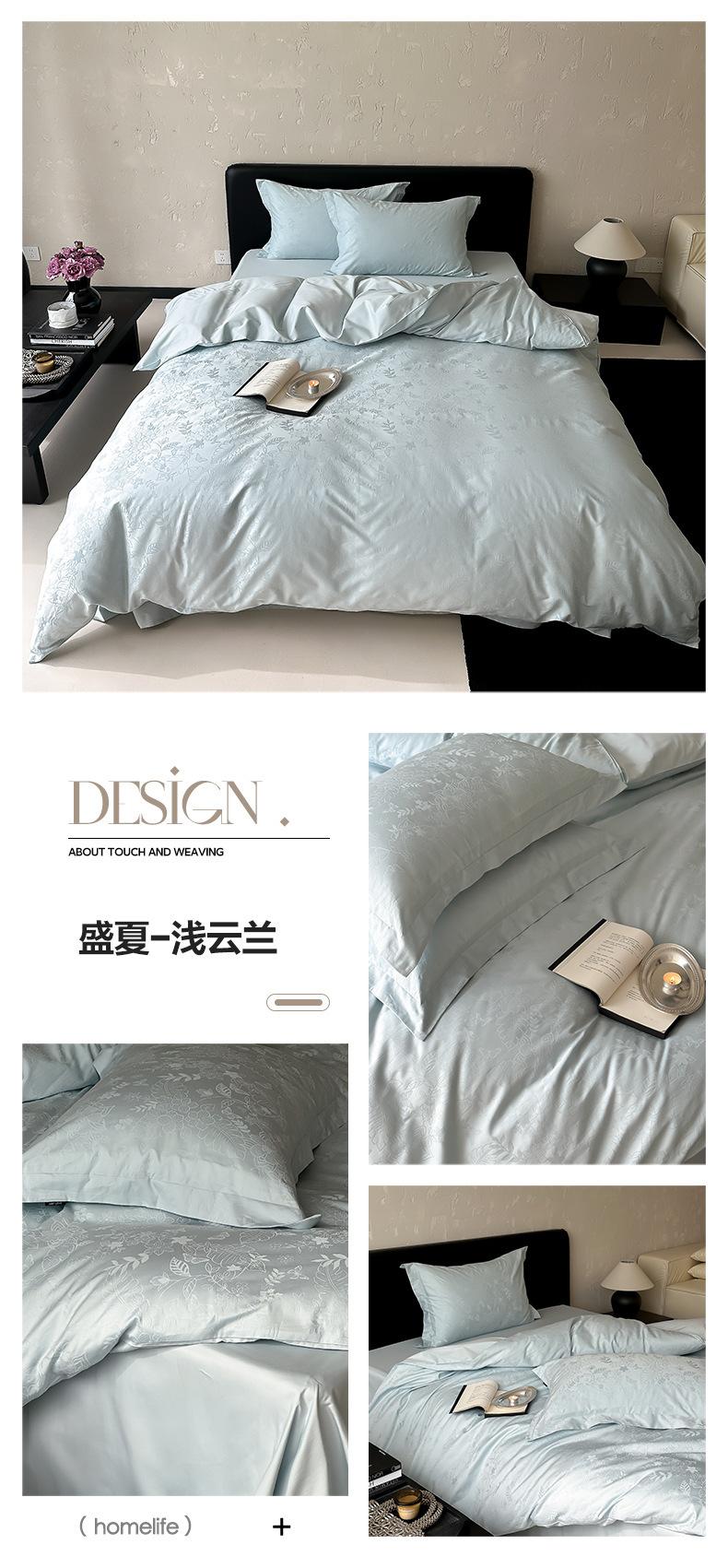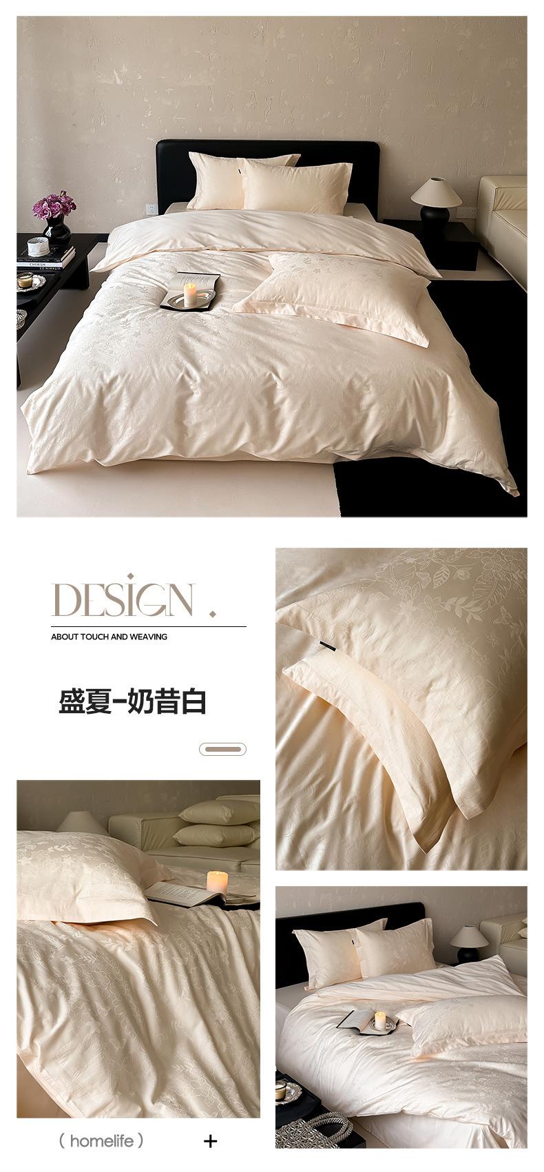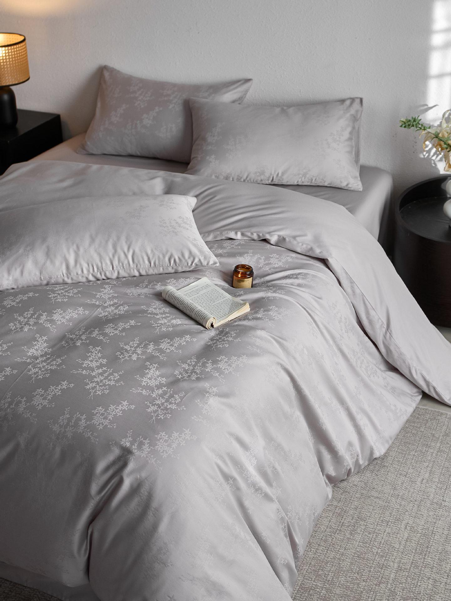 Juego de cuatro piezas de satén de algodón jacquard de 100 hilos Algodón de fibra larga de Xinjiang Lujo accesible Funda de edredón Cama Sábanas de cama Algodón puro Cama para las cuatro estaciones Sábanas de cama