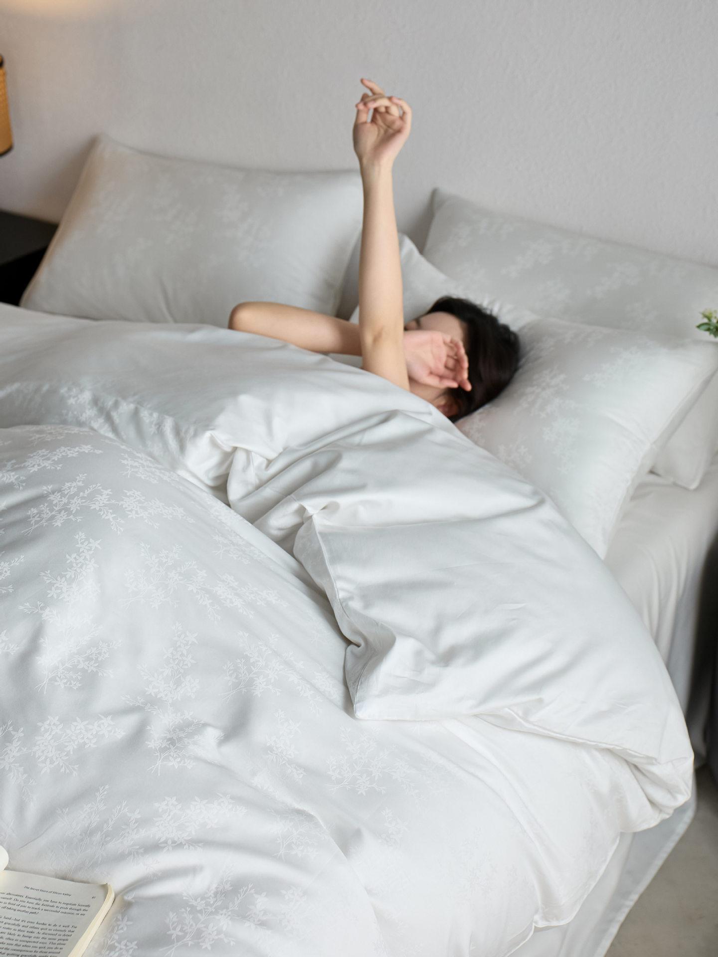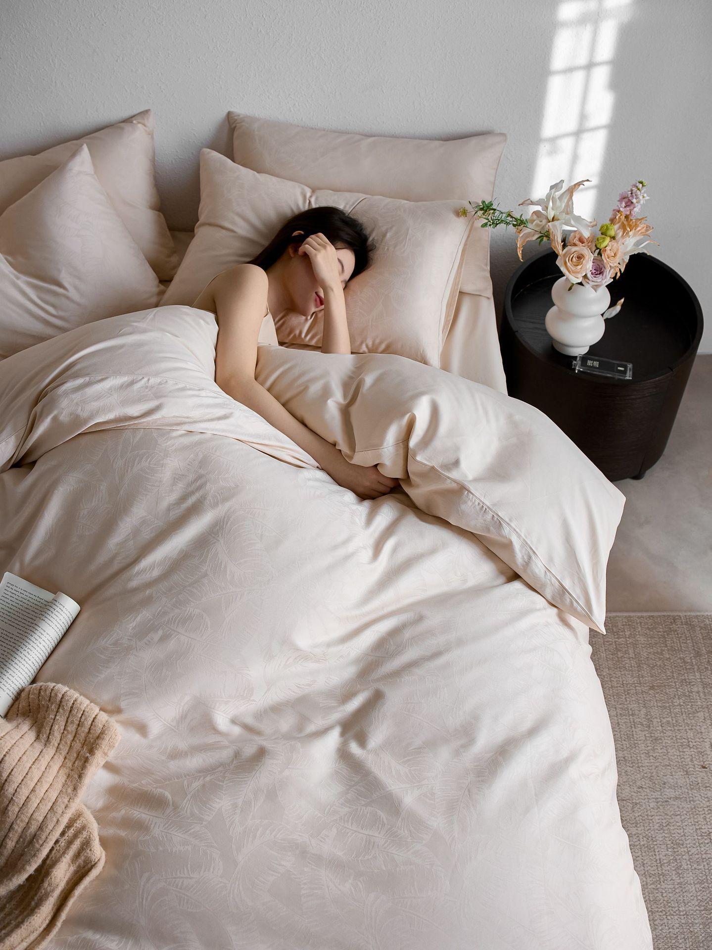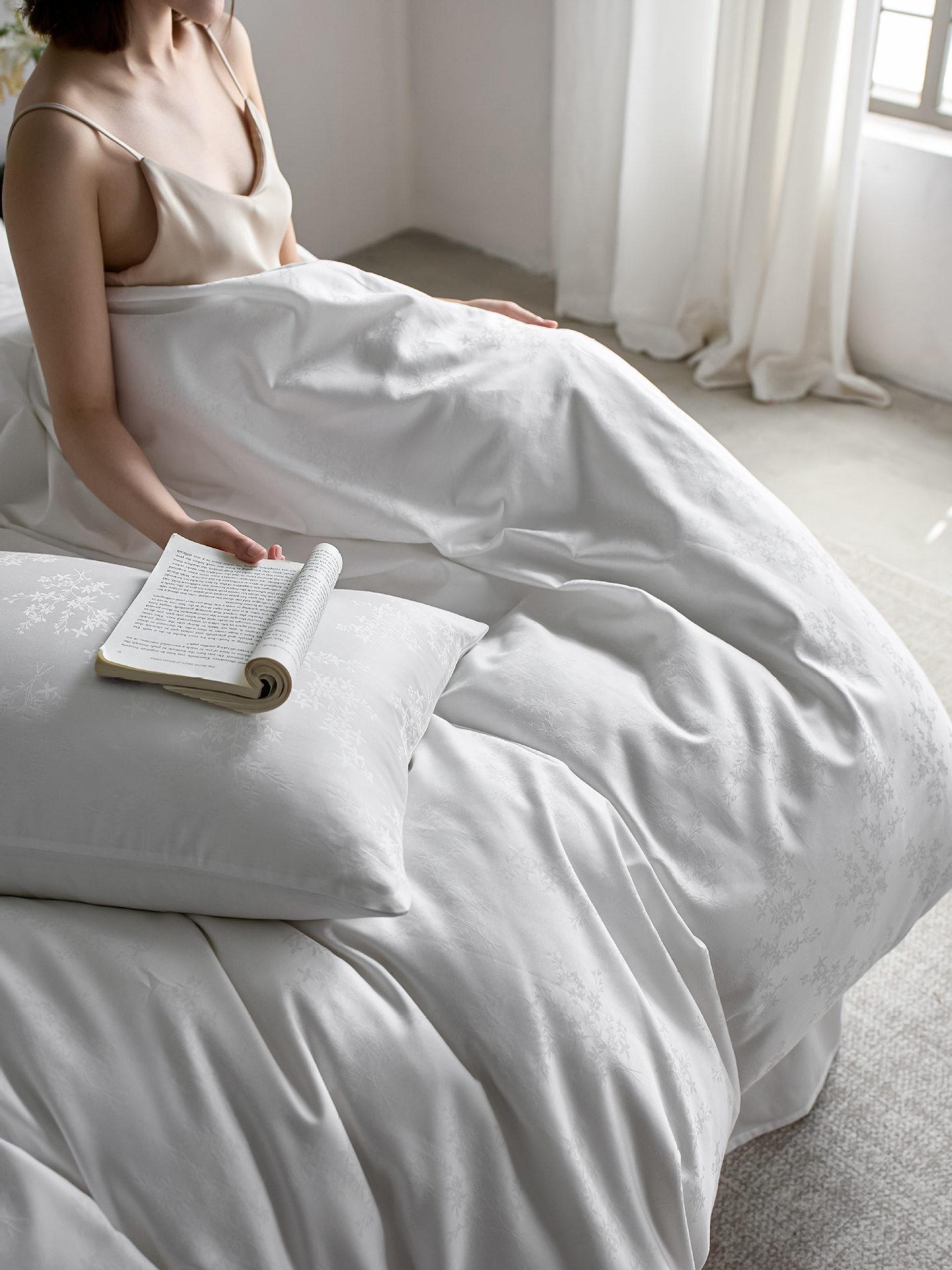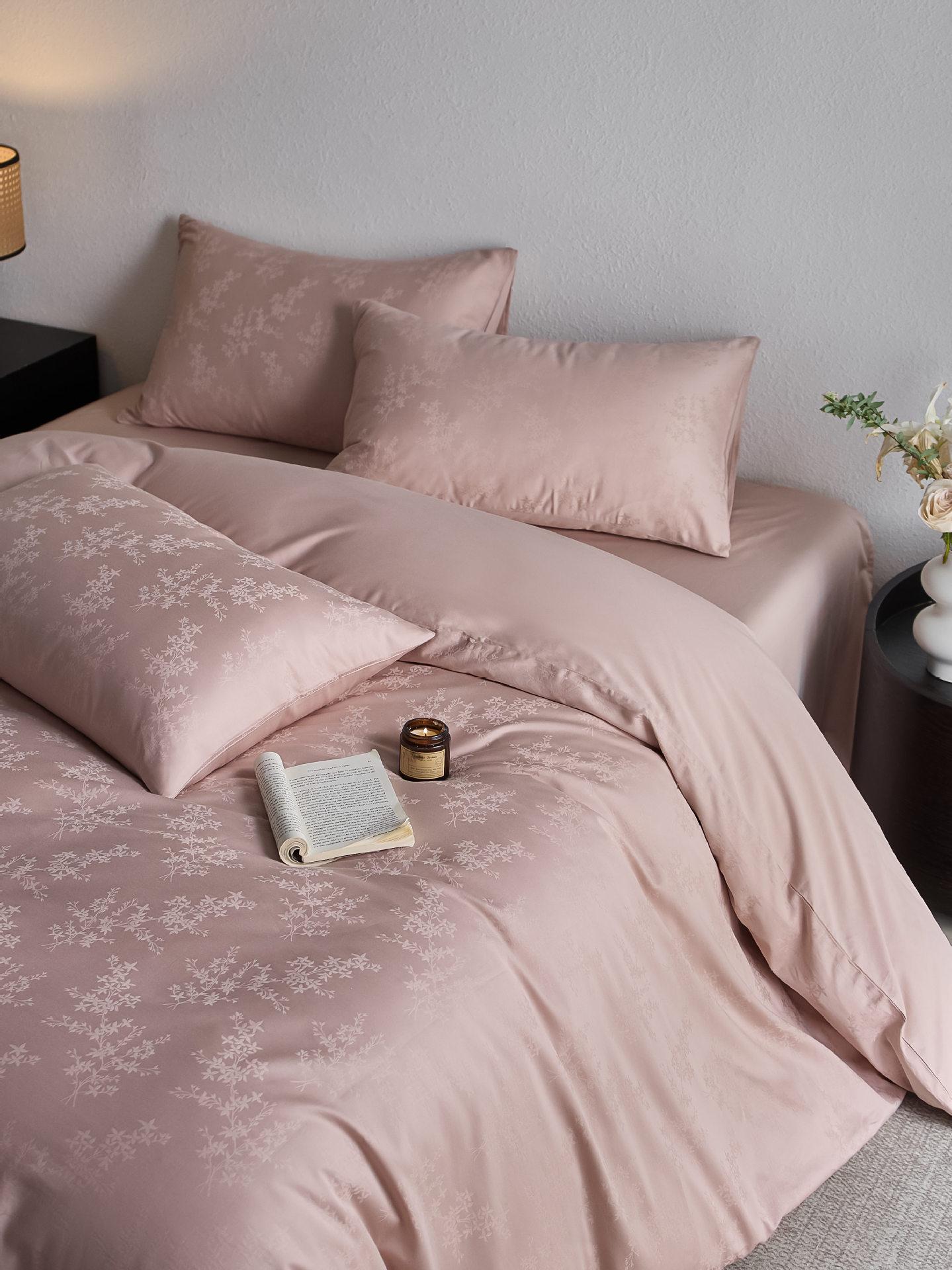 Juego de cuatro piezas de satén de algodón jacquard de 100 hilos Algodón de fibra larga de Xinjiang Lujo accesible Funda de edredón Cama Sábanas de cama Algodón puro Cama para las cuatro estaciones Sábanas de cama