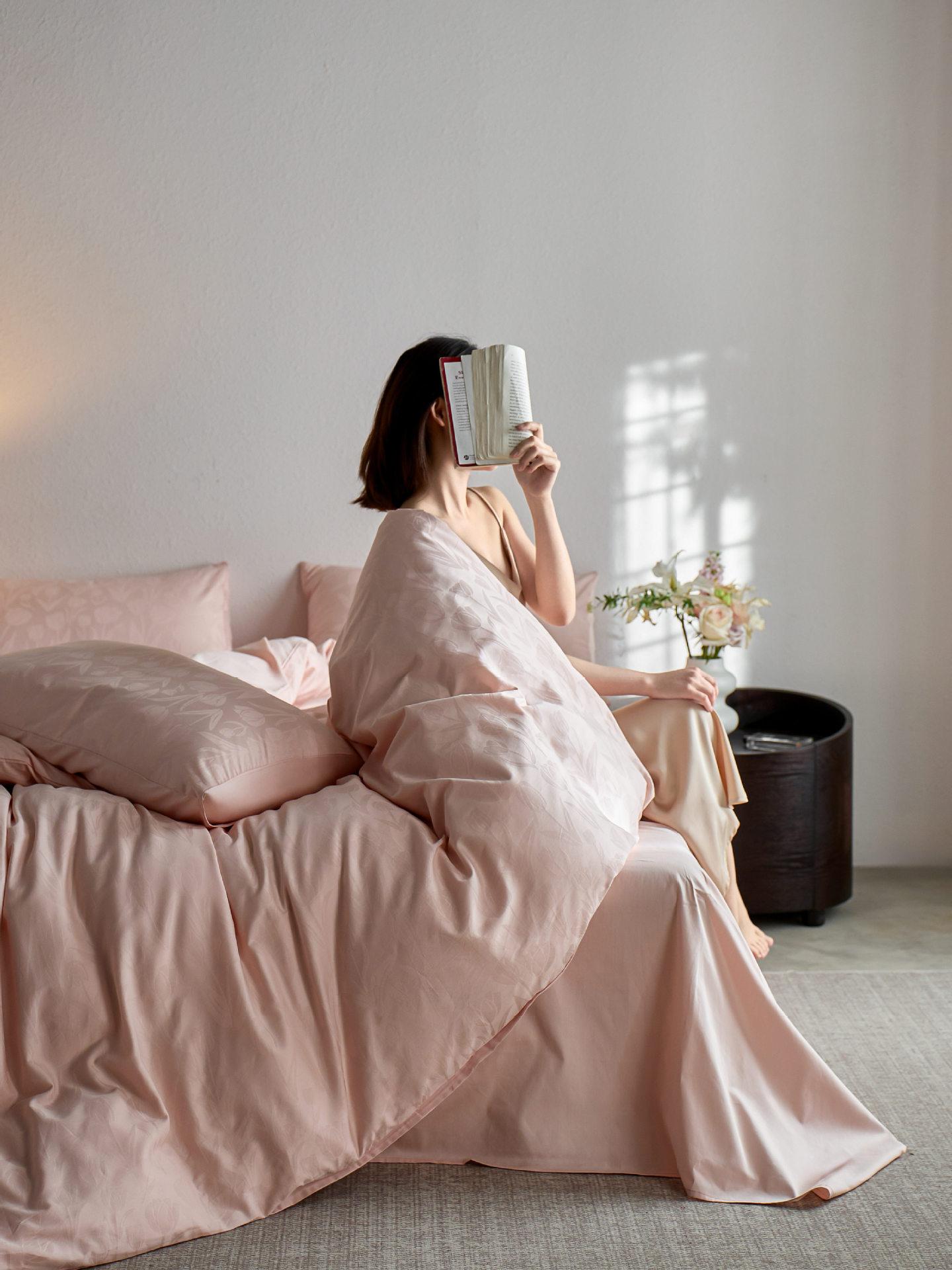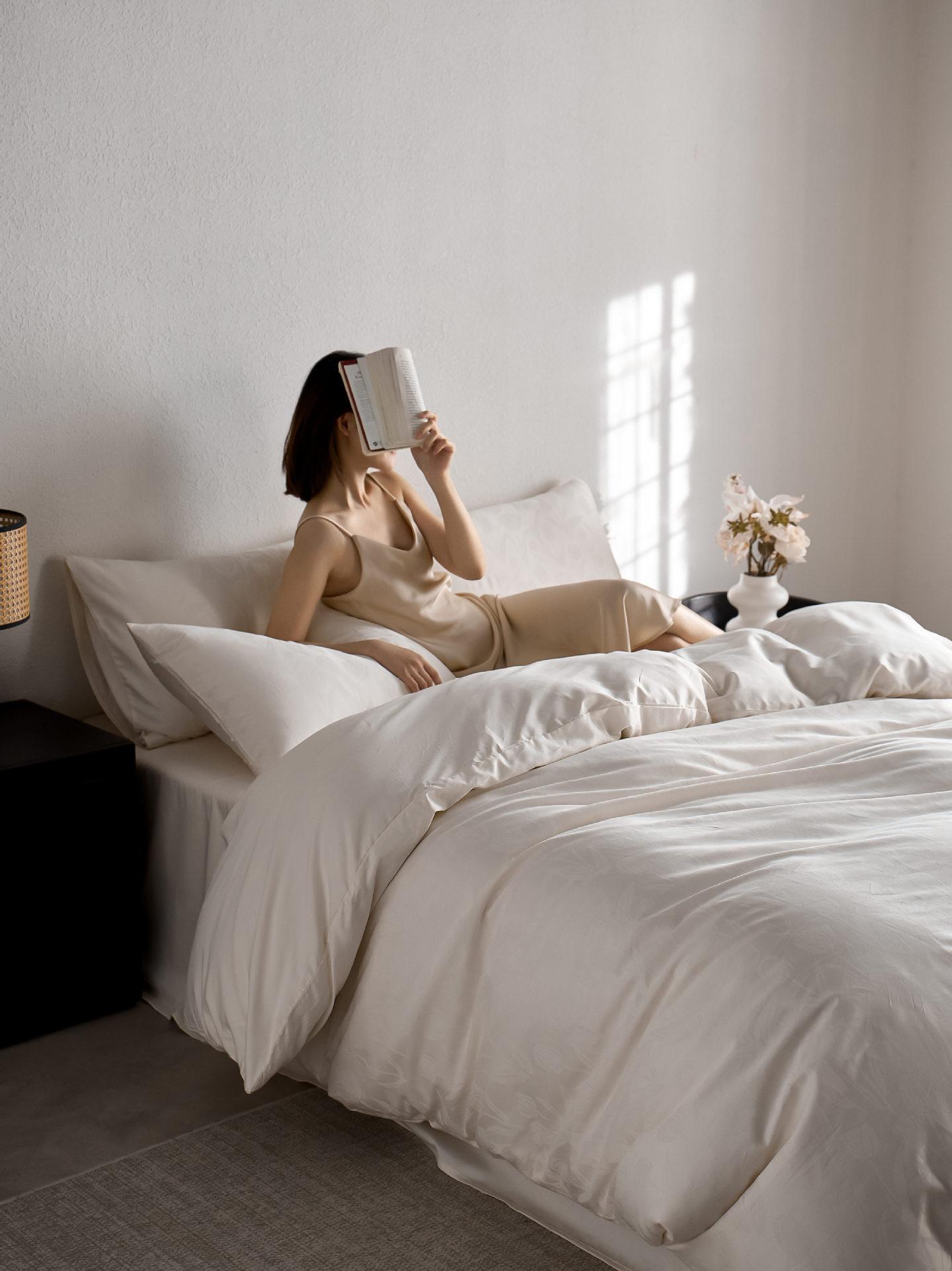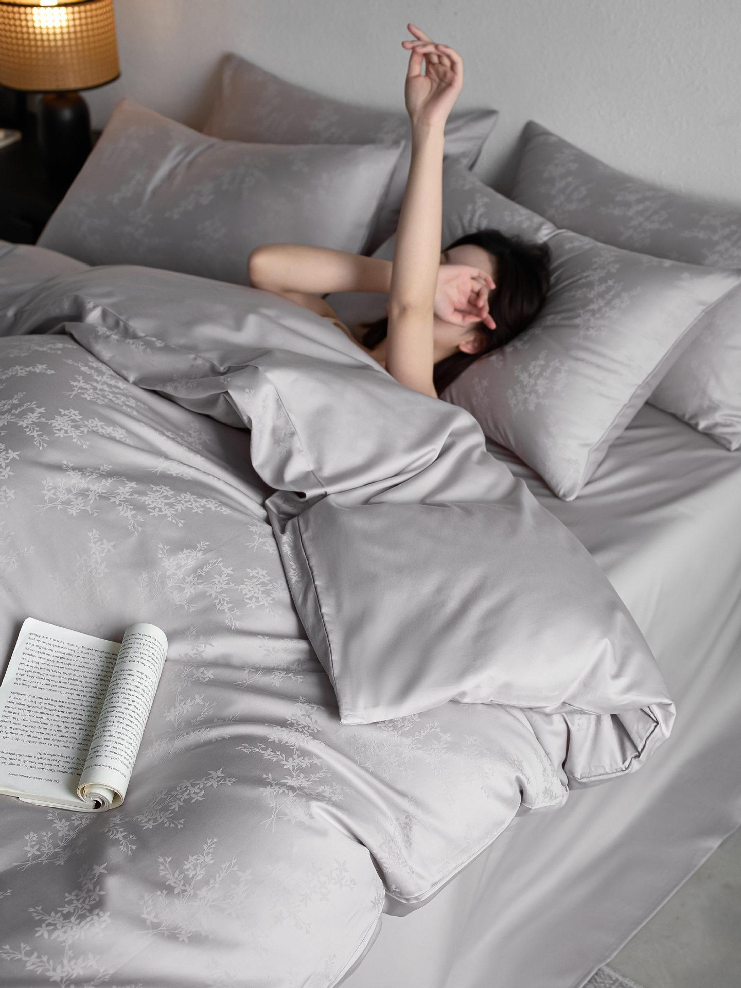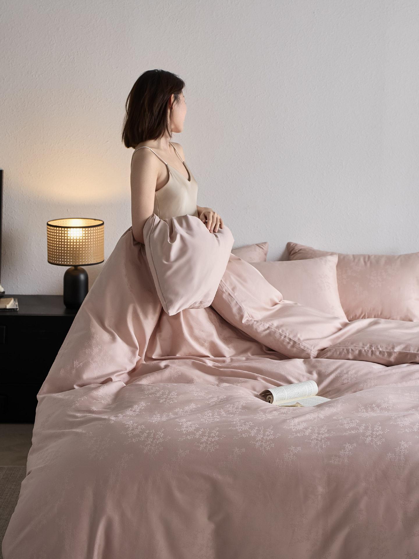 Juego de cuatro piezas de satén de algodón jacquard de 100 hilos Algodón de fibra larga de Xinjiang Lujo accesible Funda de edredón Cama Sábanas de cama Algodón puro Cama para las cuatro estaciones Sábanas de cama