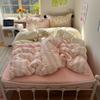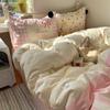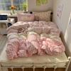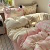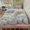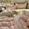 Estilo Ins Algodón Puro Algodón Lavado Juego de Cama de Cuatro Piezas 100 Algodón Edredón Corazón Femenino Ropa de Cama Cama de Dormitorio Sábanas Juego de Tres Piezas