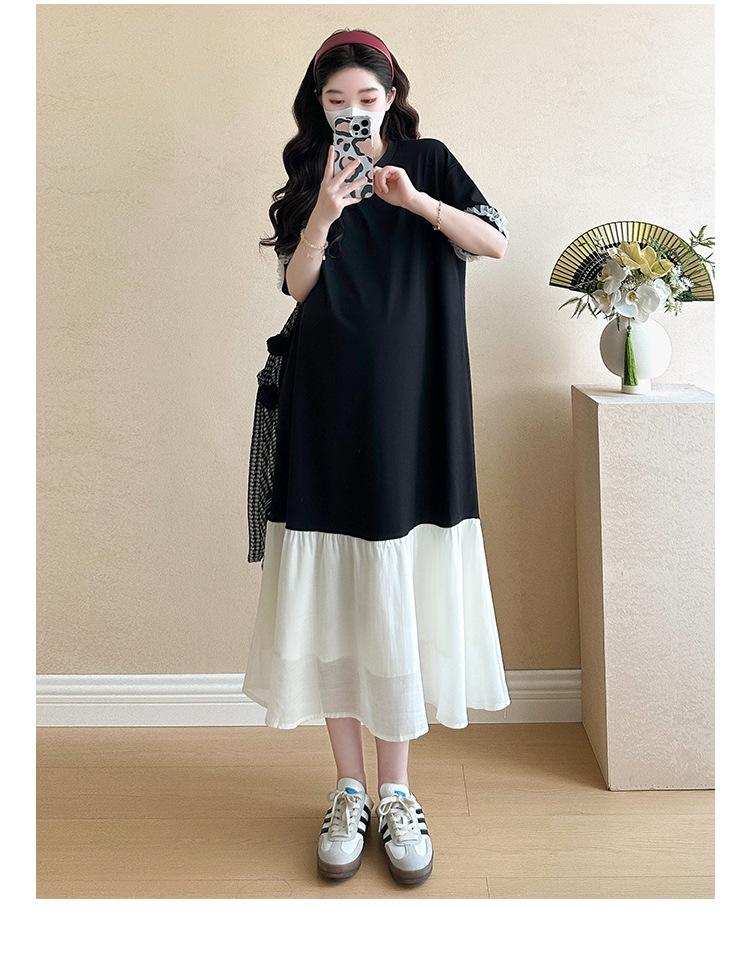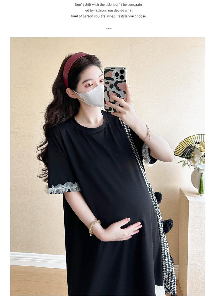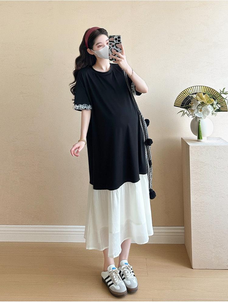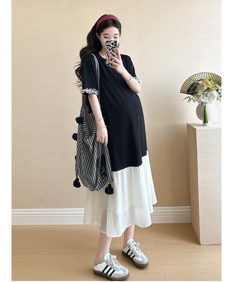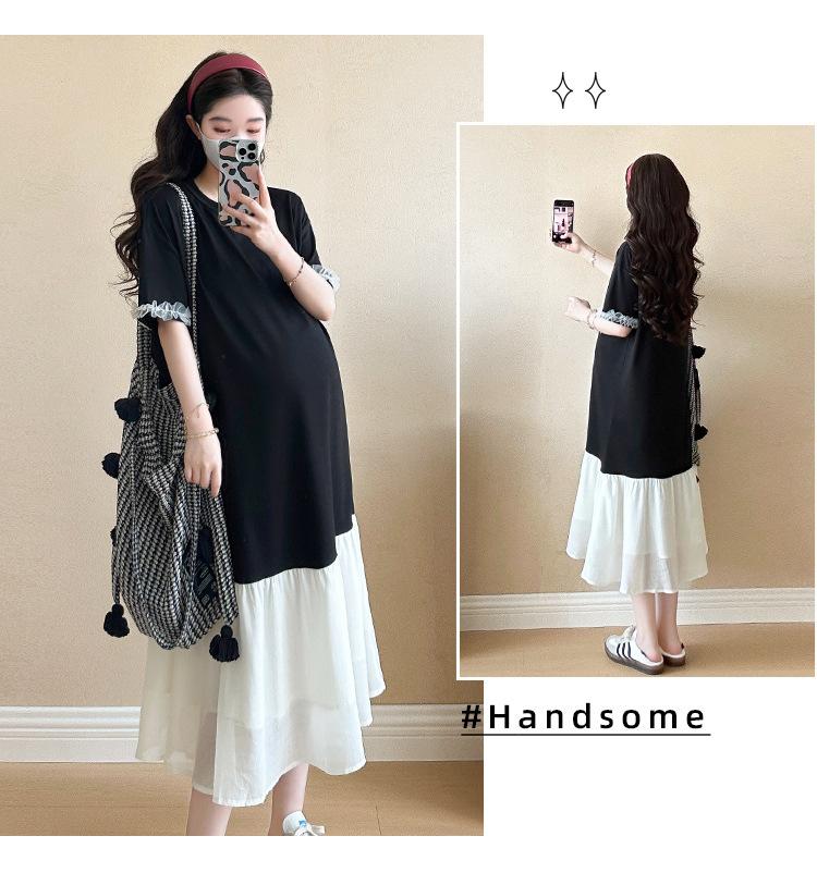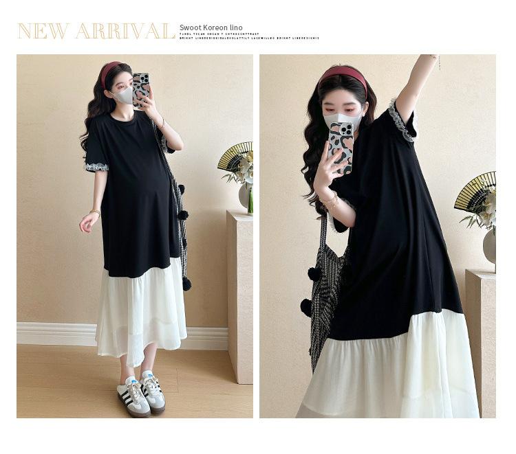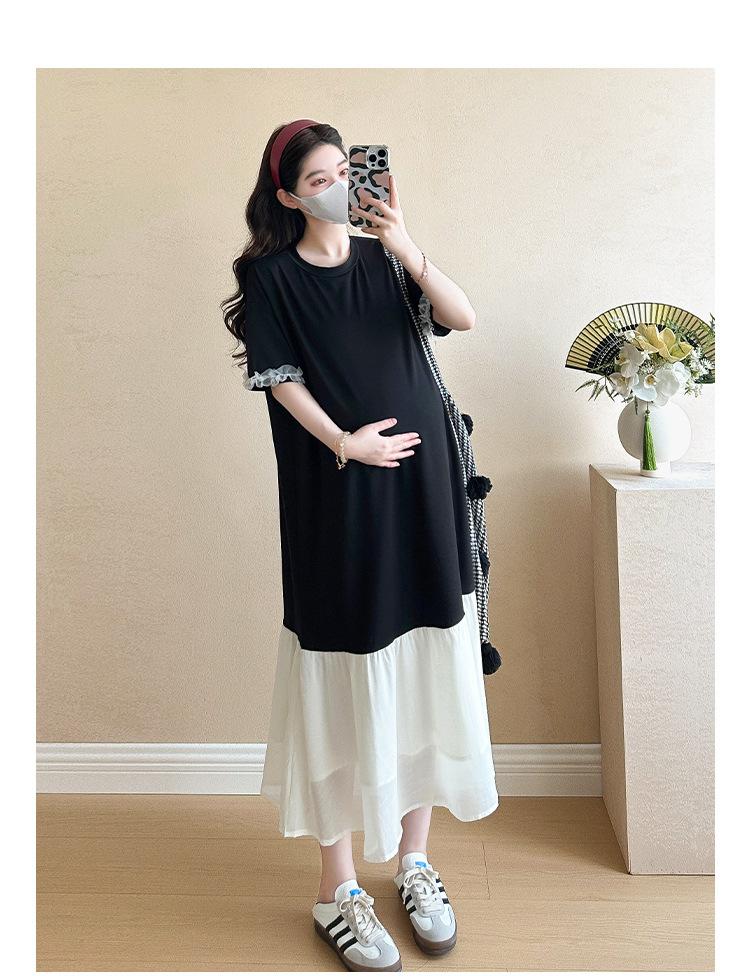 Ropa de Maternidad 2025 Verano Nuevo Estilo Coreano Moda Elegante Slim Empalmado Vestido de Maternidad Midi