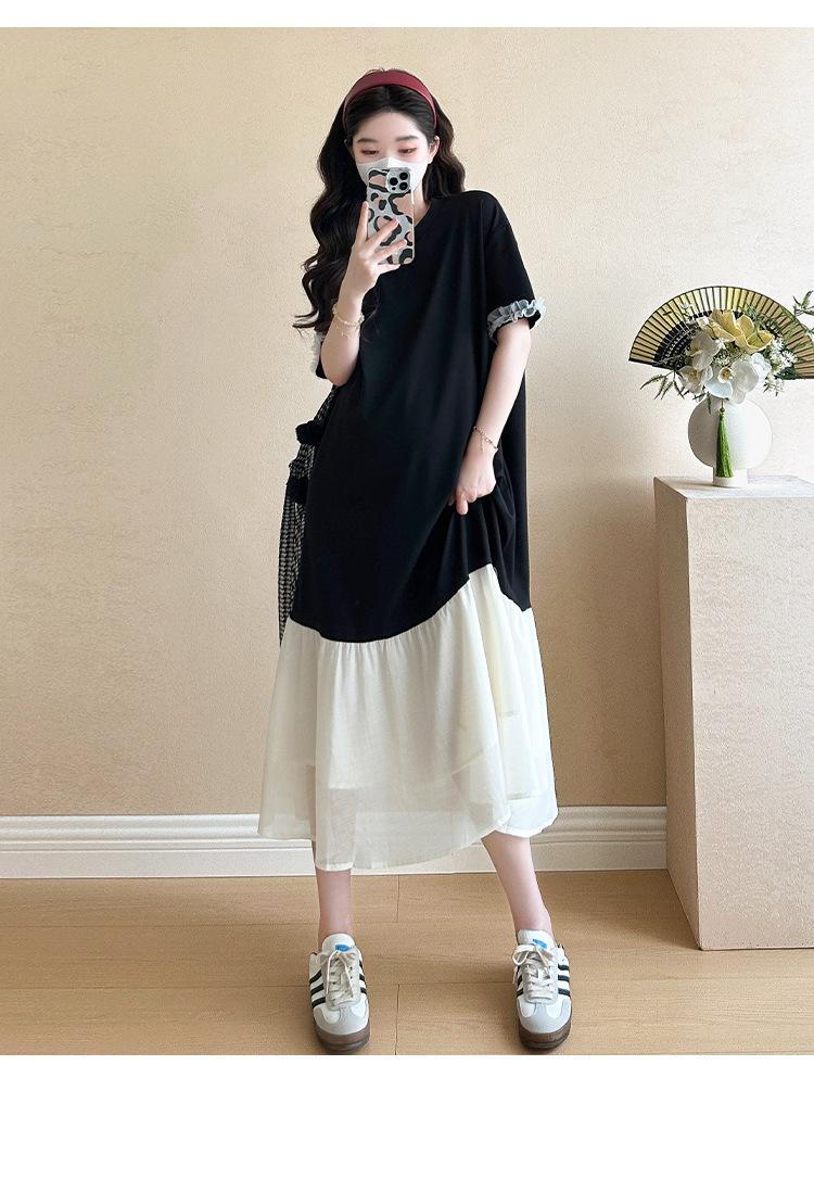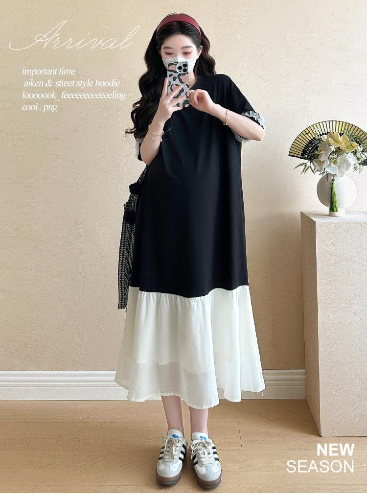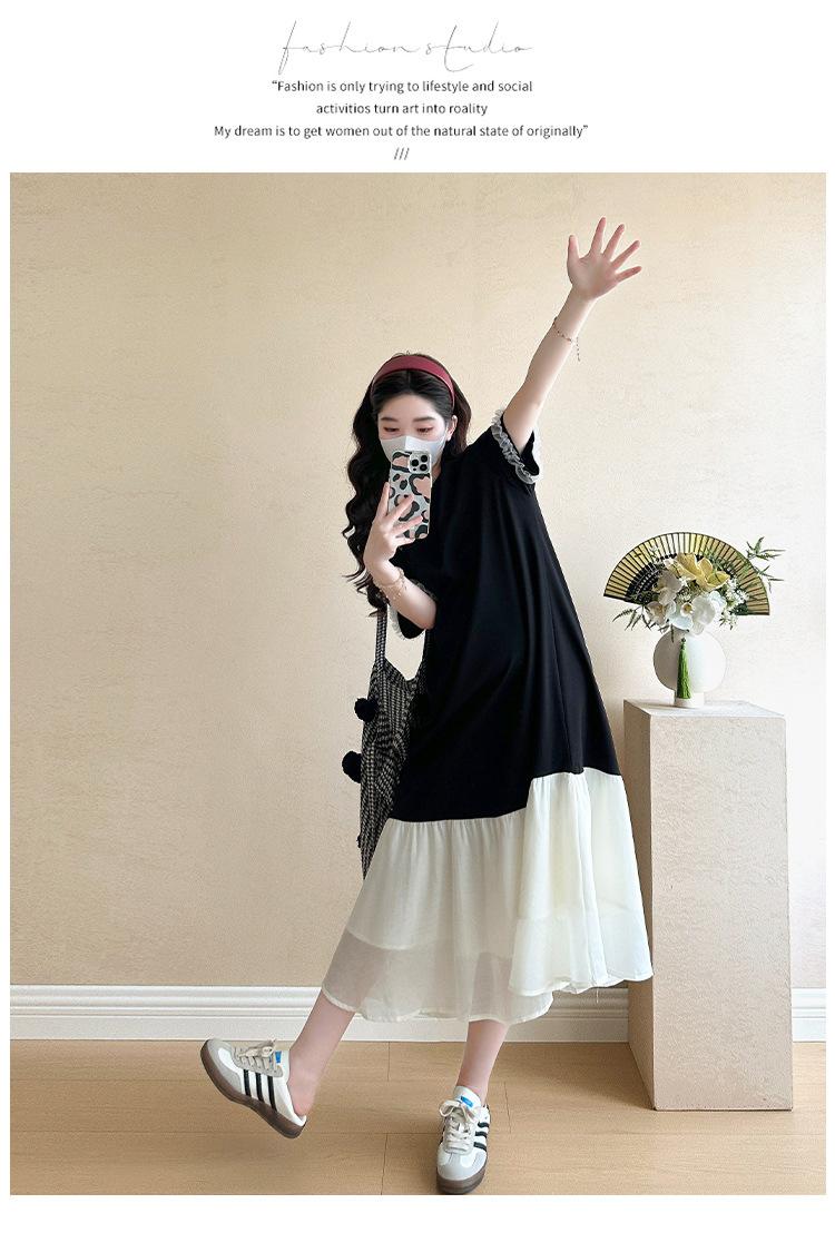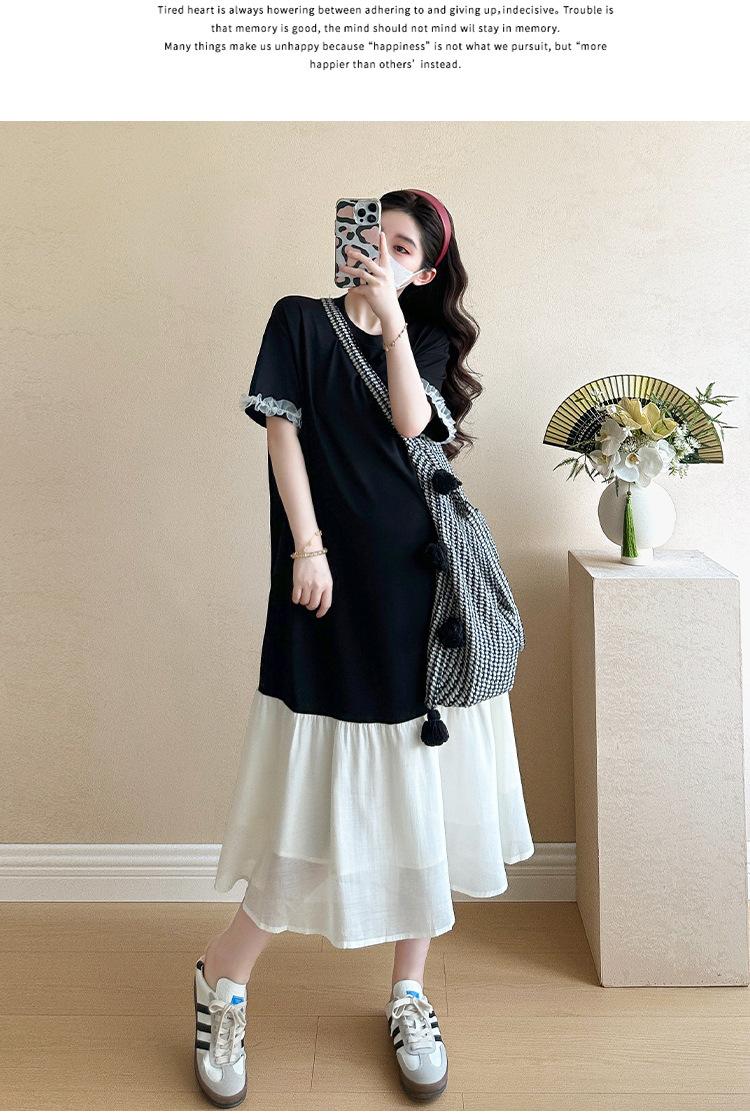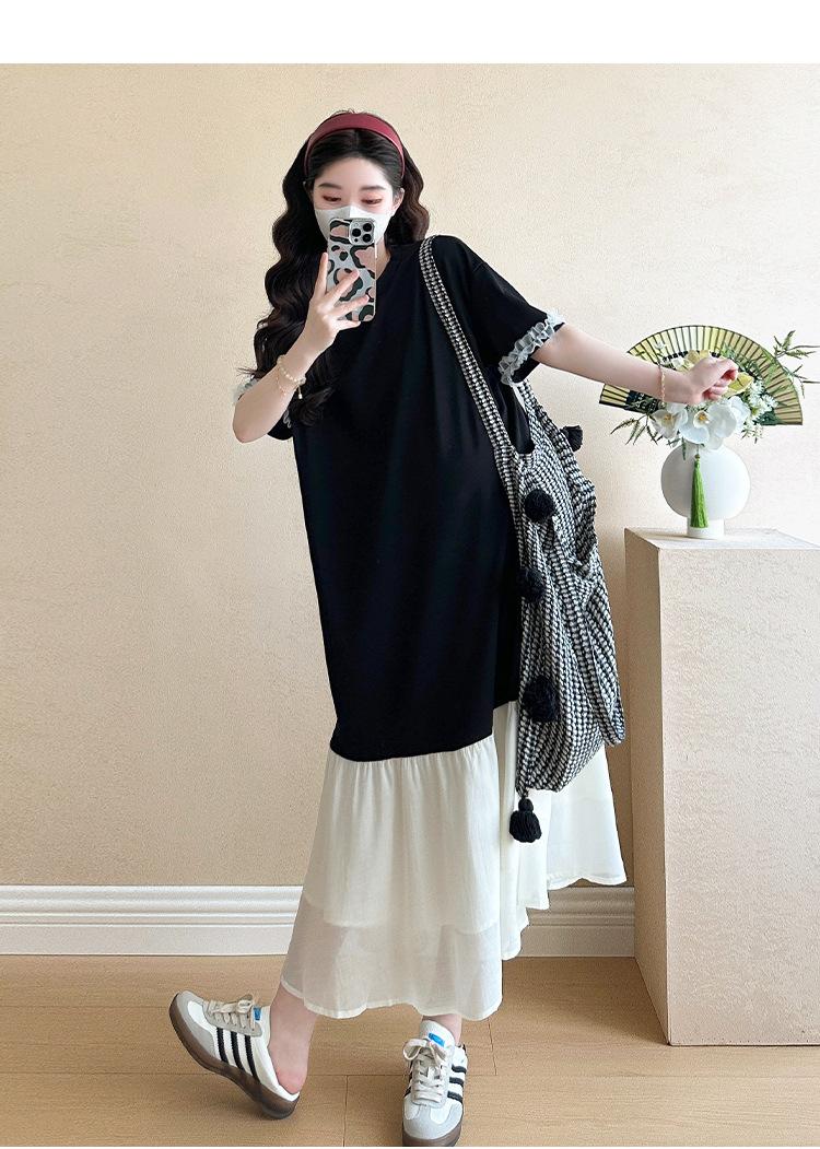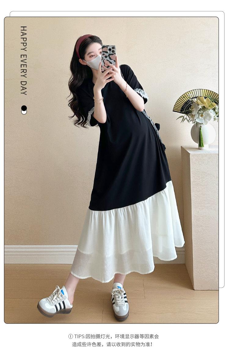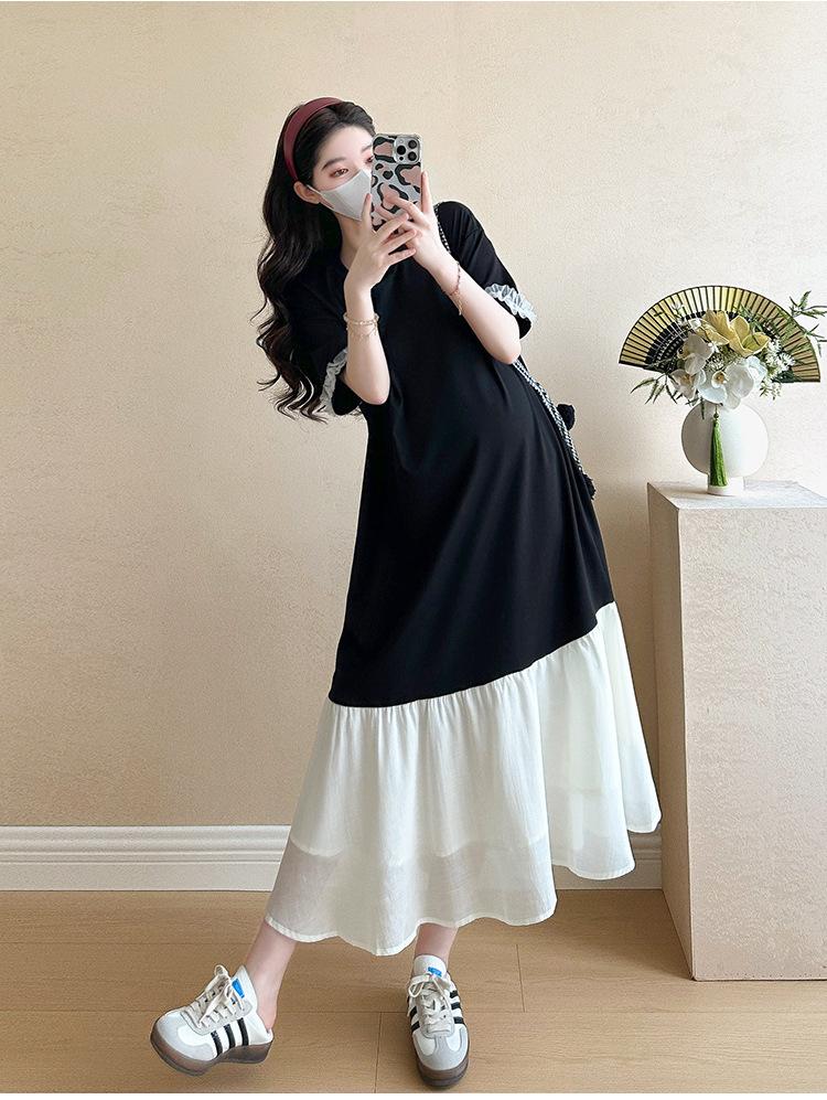 Ropa de Maternidad 2025 Verano Nuevo Estilo Coreano Moda Elegante Slim Empalmado Vestido de Maternidad Midi