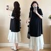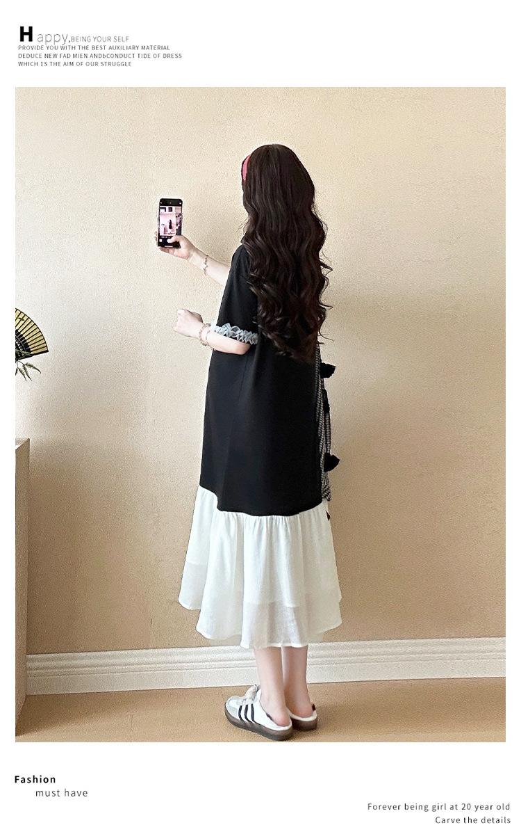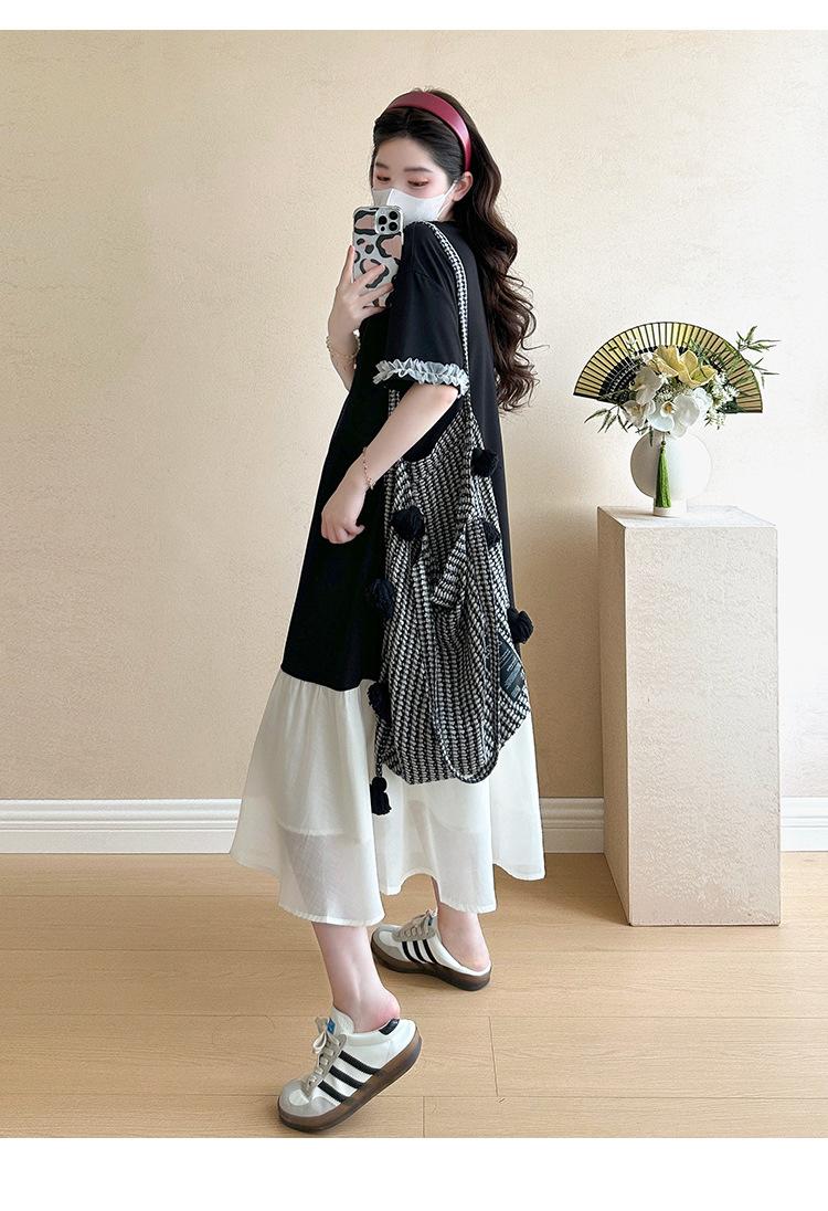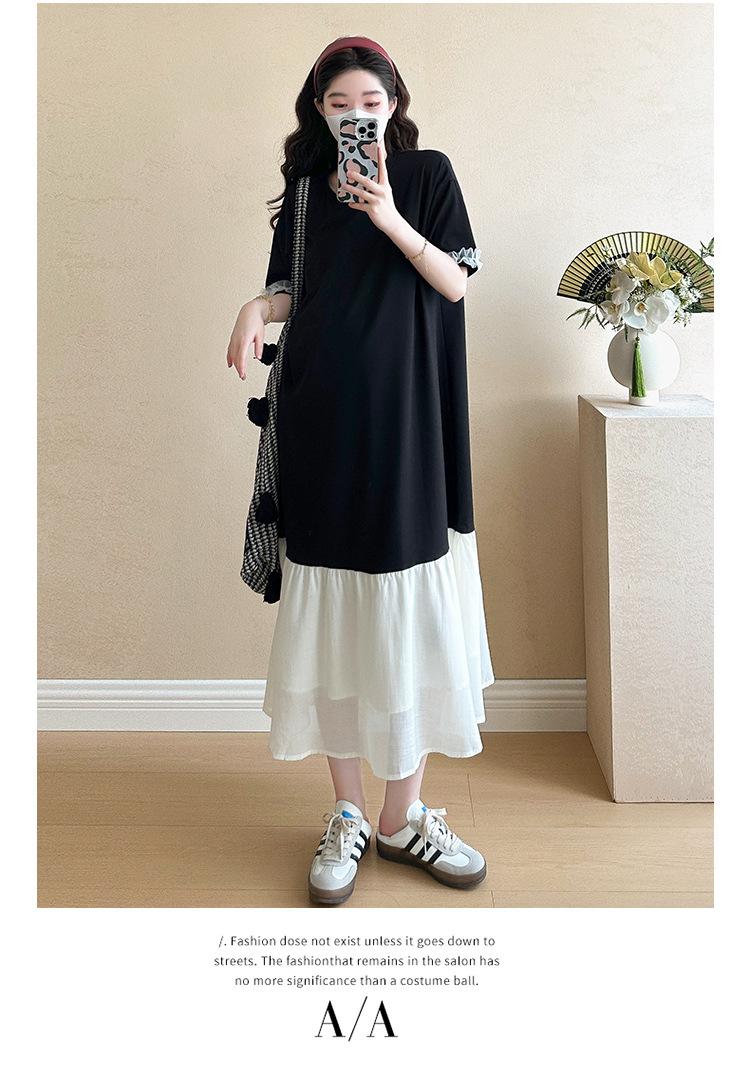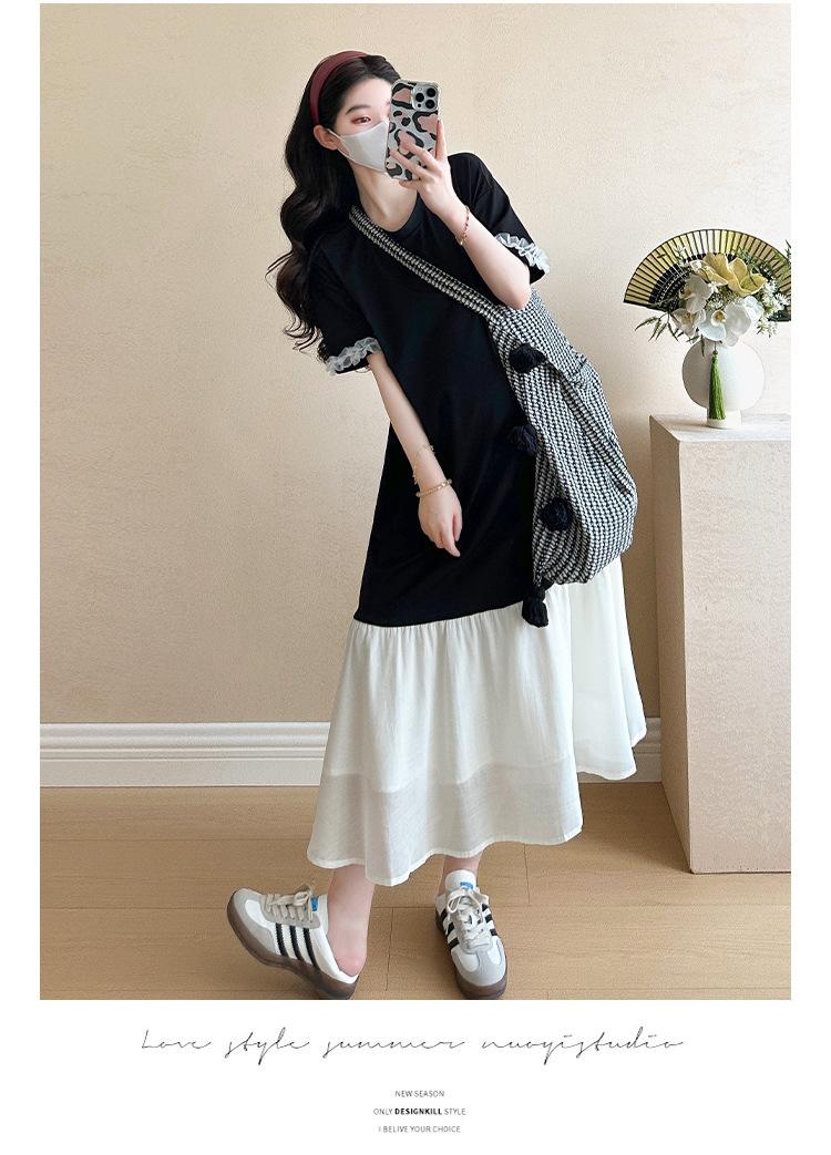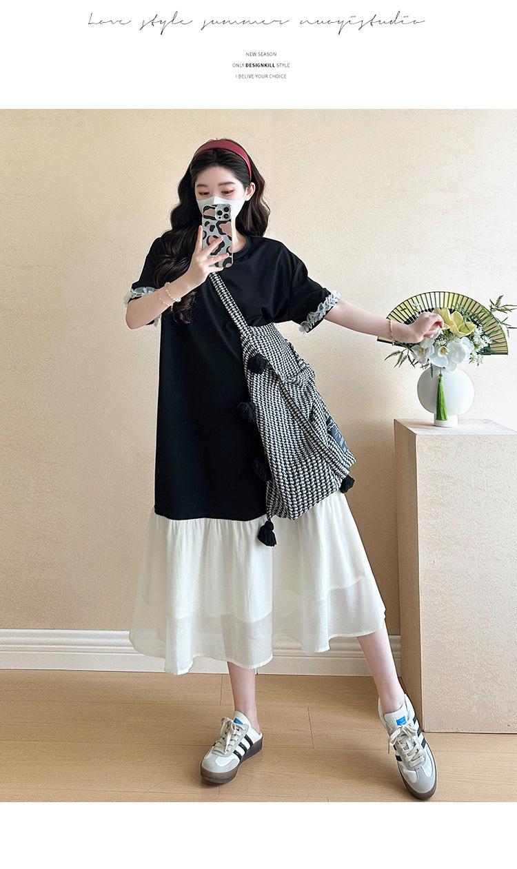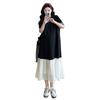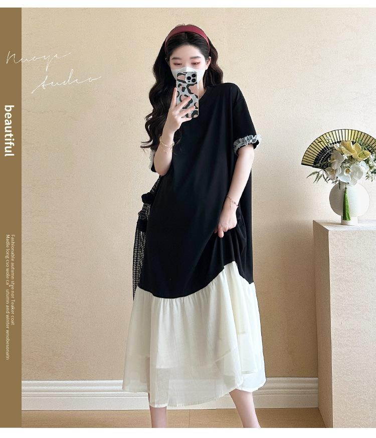 Ropa de Maternidad 2025 Verano Nuevo Estilo Coreano Moda Elegante Slim Empalmado Vestido de Maternidad Midi