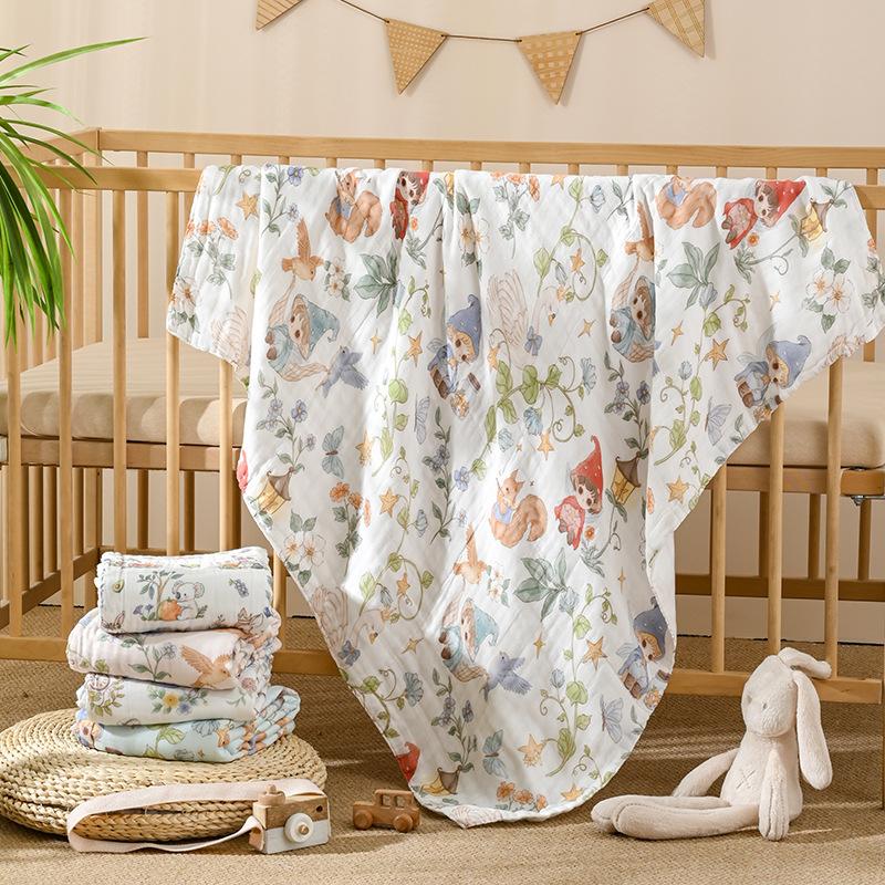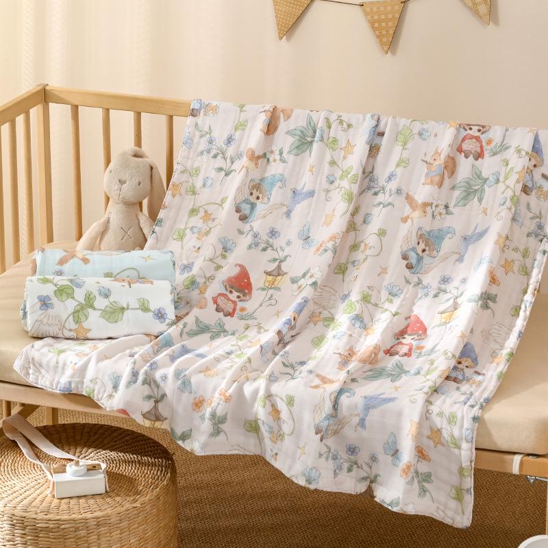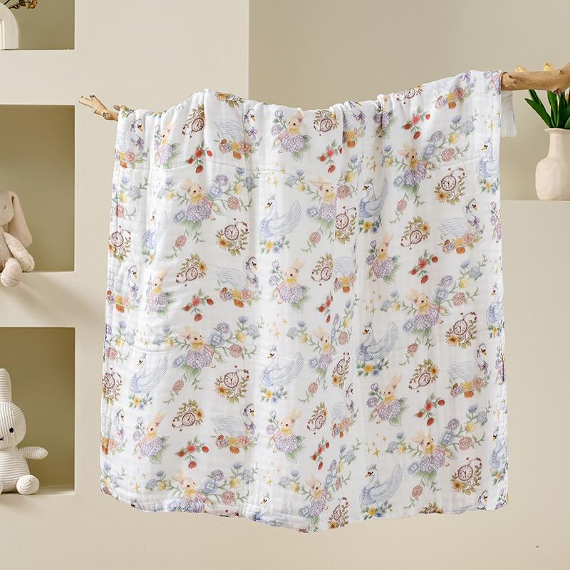 1: Algodón Peinado Clase A Algodón de Bambú Estampado Digital Gasa de Seis Capas Toalla/Manta de Baño