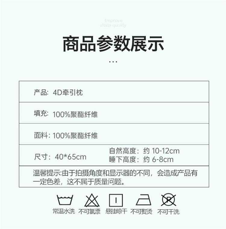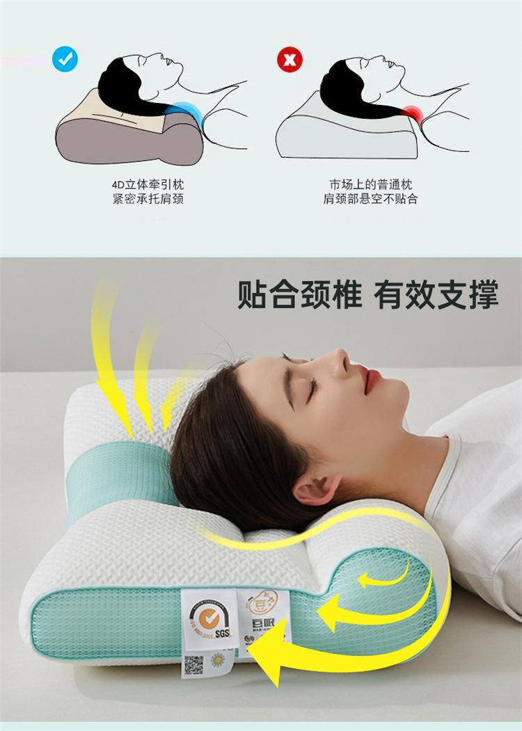 Almohada de Tracción Tridimensional, Núcleo de Almohada para la Columna Cervical, Dormir de Lado, Núcleo de Almohada Individual, Algodón Tejido, Transpirable, Hogar Cabeza Entera