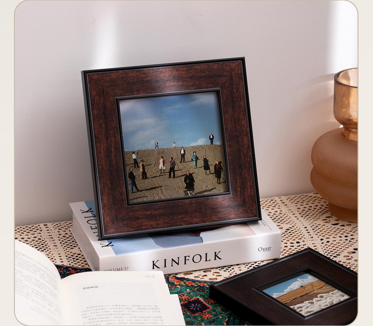 Marco de Fotos Retro Decoración Marco de Fotos Personalizado Tamaño Grande Simple Cuadrado Marco de Pintura al Óleo Americano Enmarcado Autoensamblado Colgante