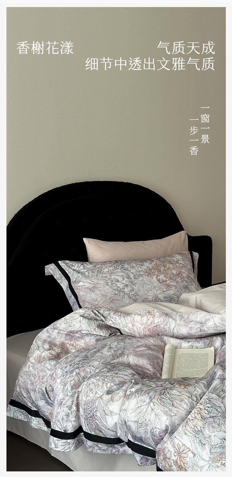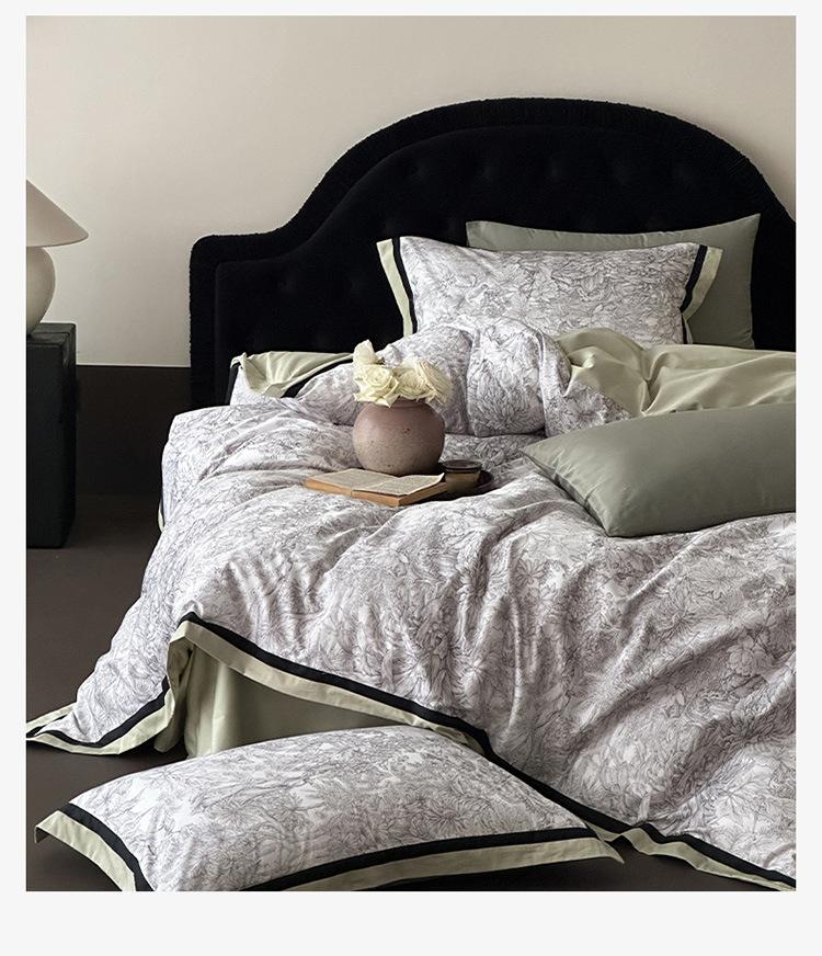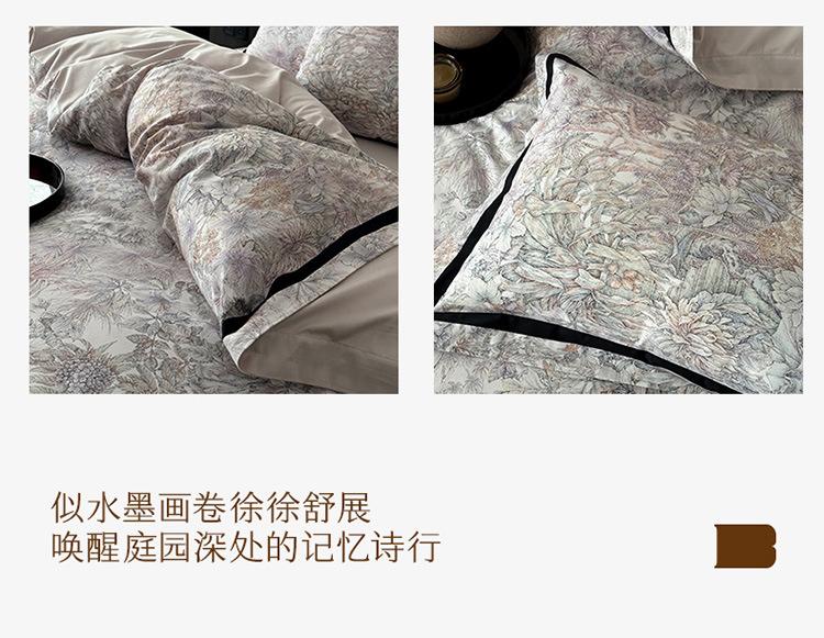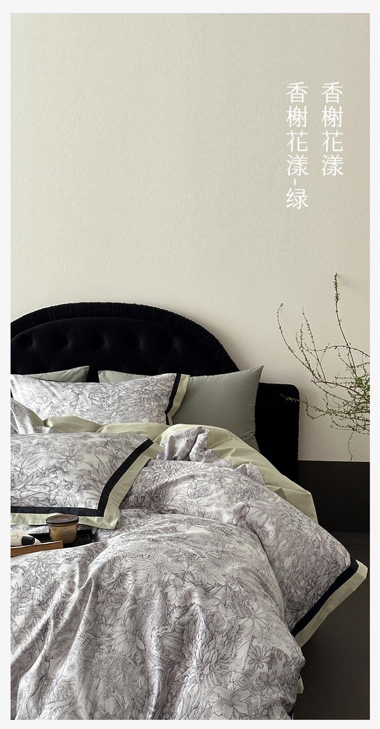 Juego de cama de cuatro piezas de algodón puro 100S de algodón de fibra larga, funda nórdica de algodón simple y retro, ropa de cama de estilo de lujo ligero 1.8m al por mayor