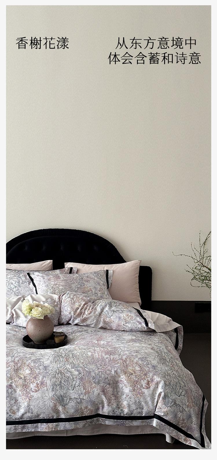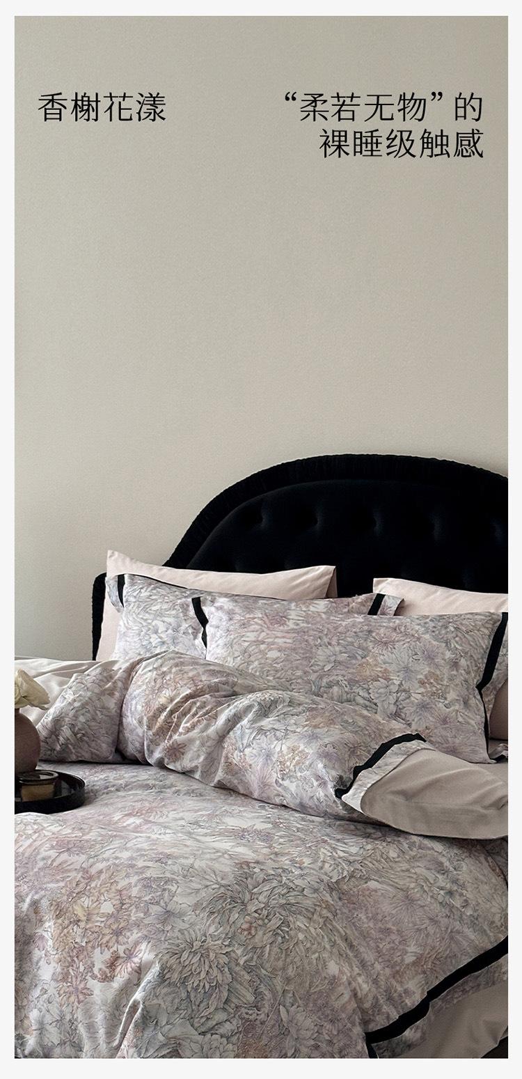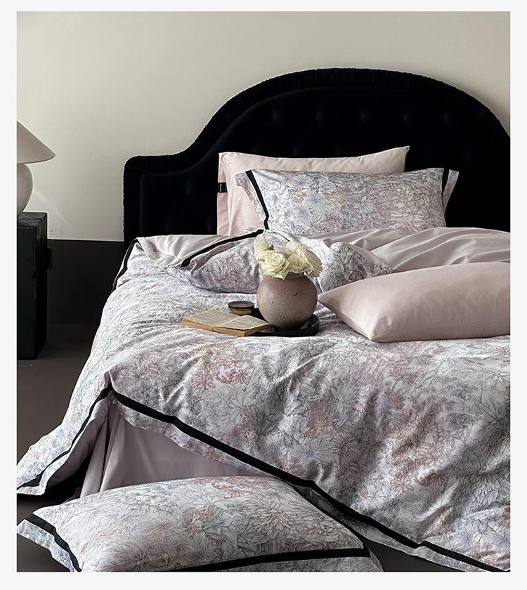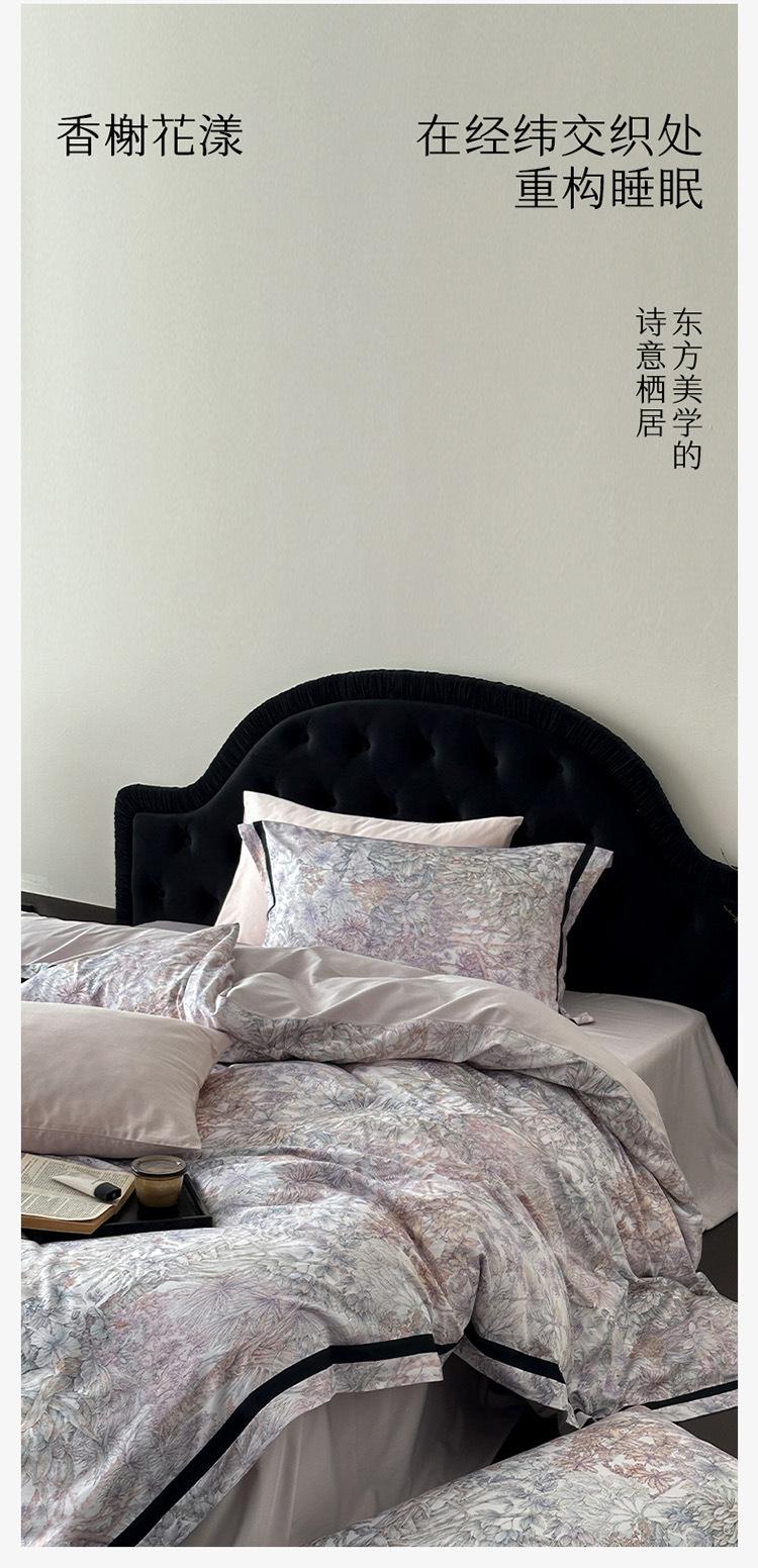 Juego de cama de cuatro piezas de algodón puro 100S de algodón de fibra larga, funda nórdica de algodón simple y retro, ropa de cama de estilo de lujo ligero 1.8m al por mayor