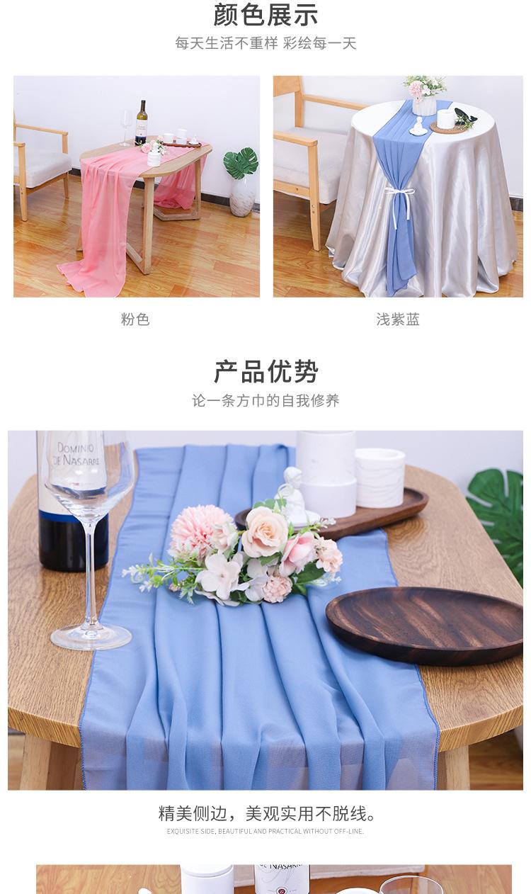 Camino de mesa de chifón estilo europeo decoración de mesa para banquete de boda camino de mesa color sólido tela de poliéster camino de mesa de chifón al por mayor