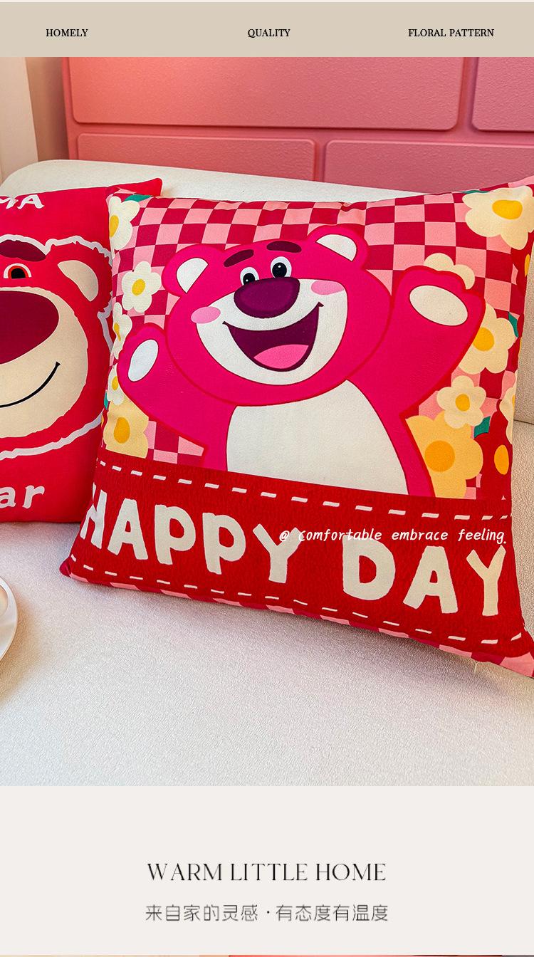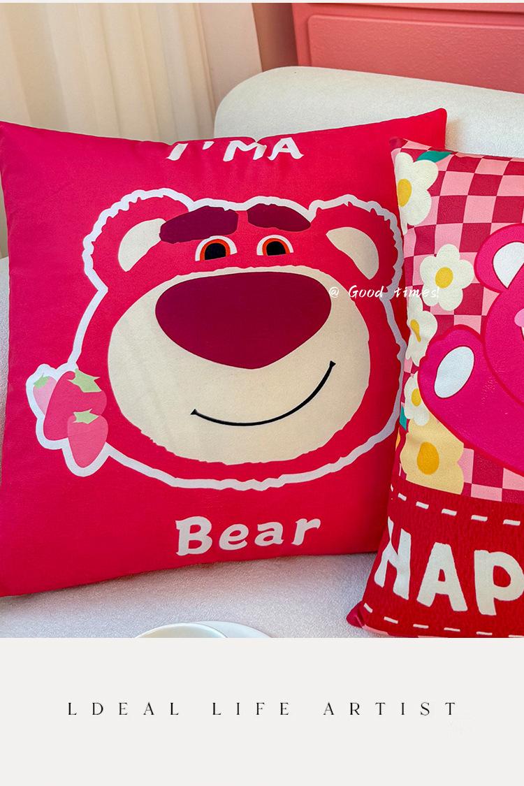 Compra Funda de Almohada de Oso Fresa de Dibujos Animados Estilo Ins Almohada Linda Almohada Dormitorio Estudiantil Sofá Cojín Funda de Almohada al por mayor en Joom.pro