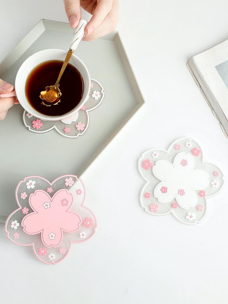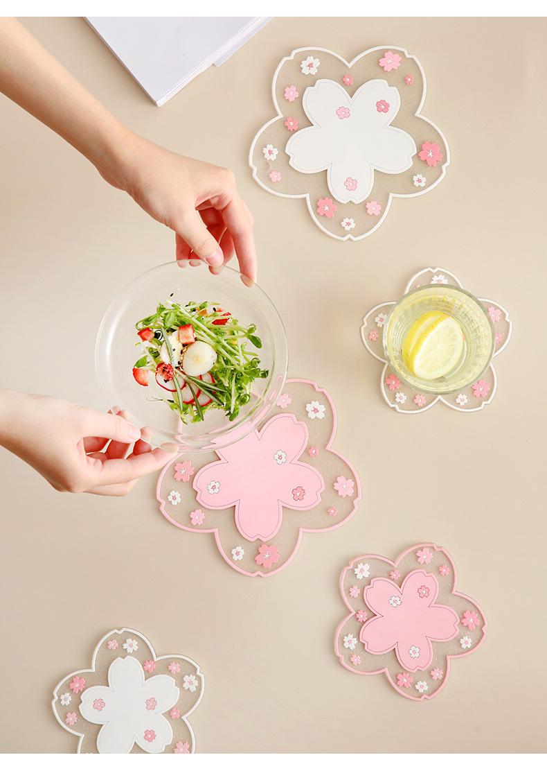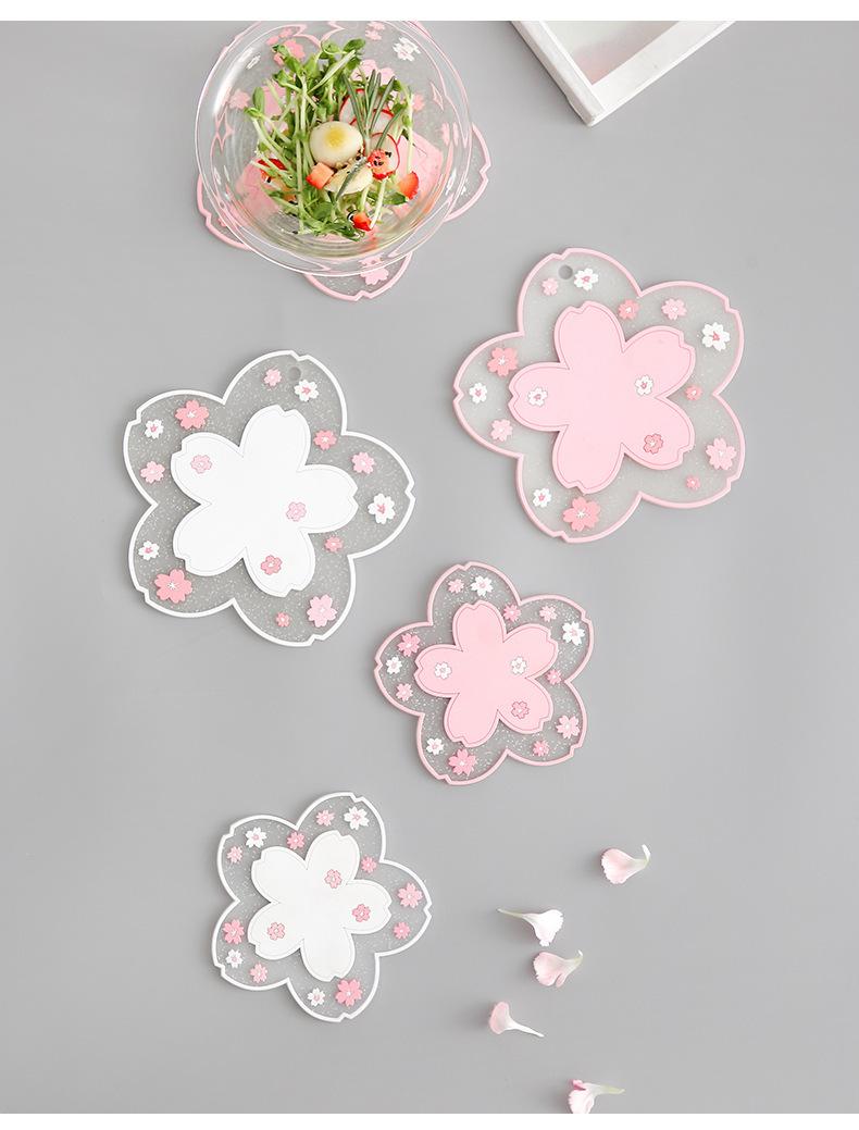 Posavasos Alfombrilla Aislamiento Térmico Alfombrilla para Olla Alfombrilla para Mesa de Comedor Alfombrilla Nórdica para Taza de Té Alfombrilla Antiescaldante Bonita Flor de Cerezo Antideslizante Estilo ins