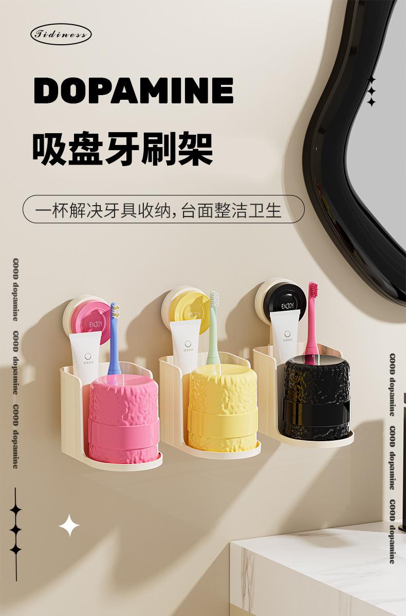 Soporte para cepillos de dientes con ventosa sin taladro, montado en la pared, para lavabo de baño, con estante de almacenamiento para pasta de dientes, cepillos de dientes, vasos y herramientas dentales