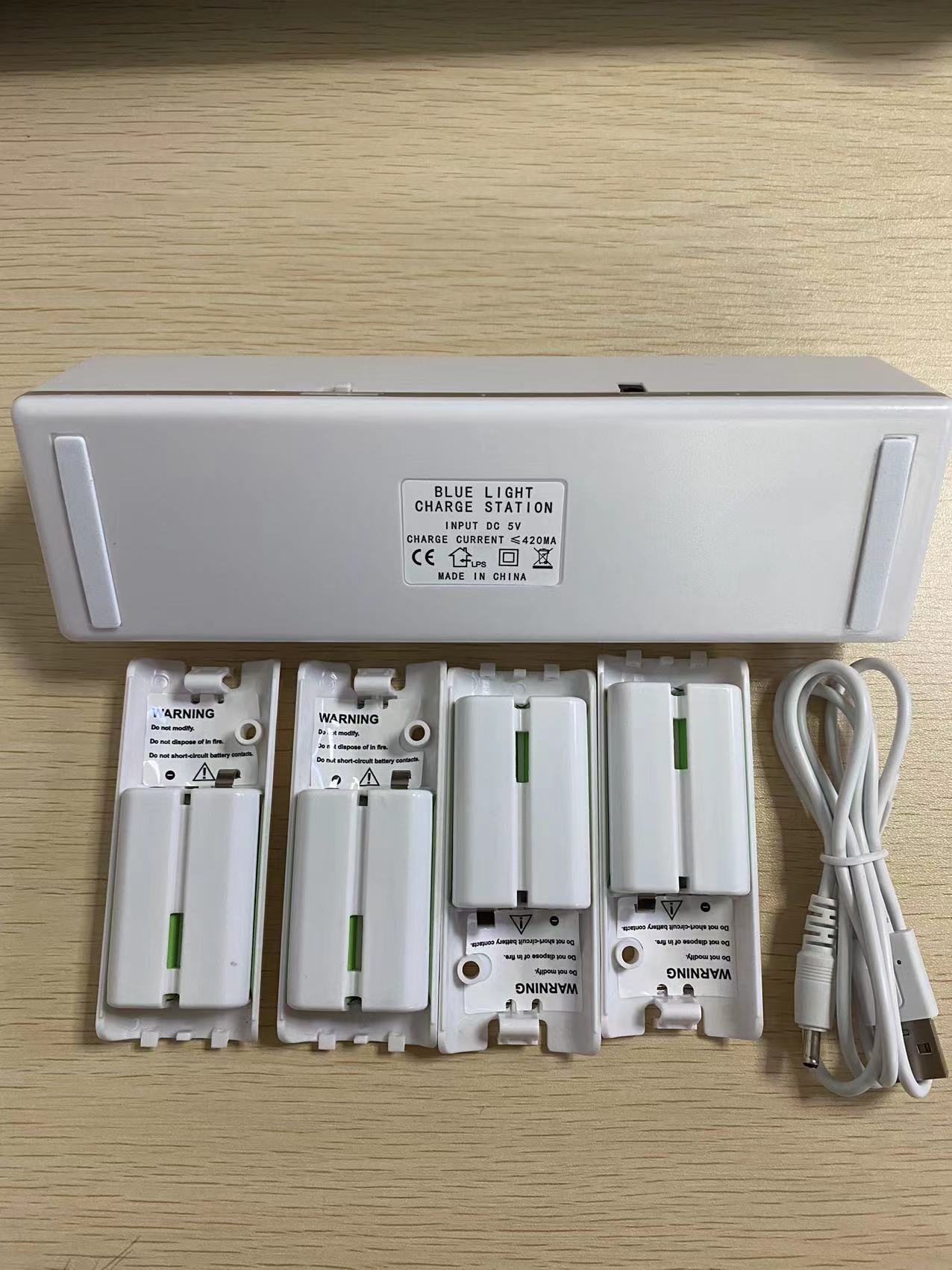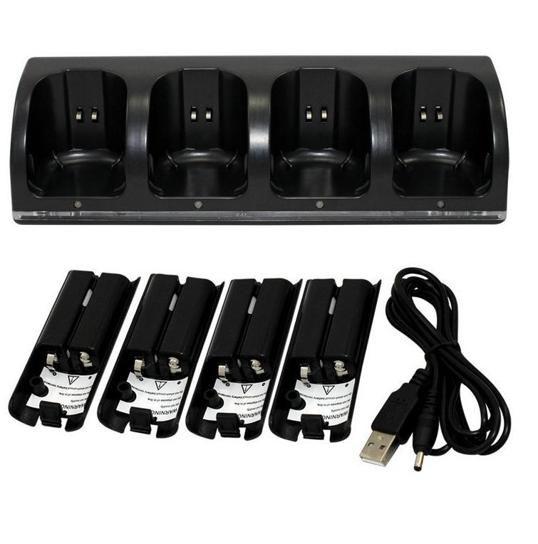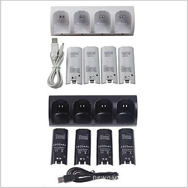 base de carga para controles de Wii, base de carga cuatro en uno base de carga*1, batería de 2800mAh*4, cable de carga*1 Puede cargar cuatro controles simultáneamente,(¡¡Envío de máquina sola!! ¡¡Agregar 1 yuan por caja blanca!!)