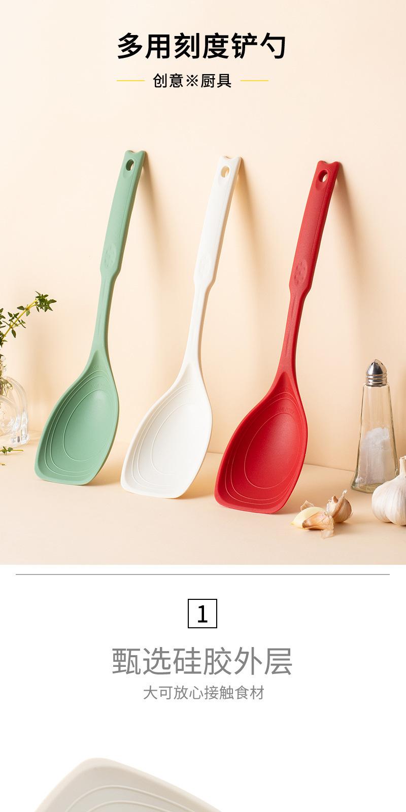 Cuchara espátula de silicona todo en uno, espátula de silicona resistente a altas temperaturas, cuchara para sopa, espátula para cocinar antiadherente con escala, cuchara para sazonar
