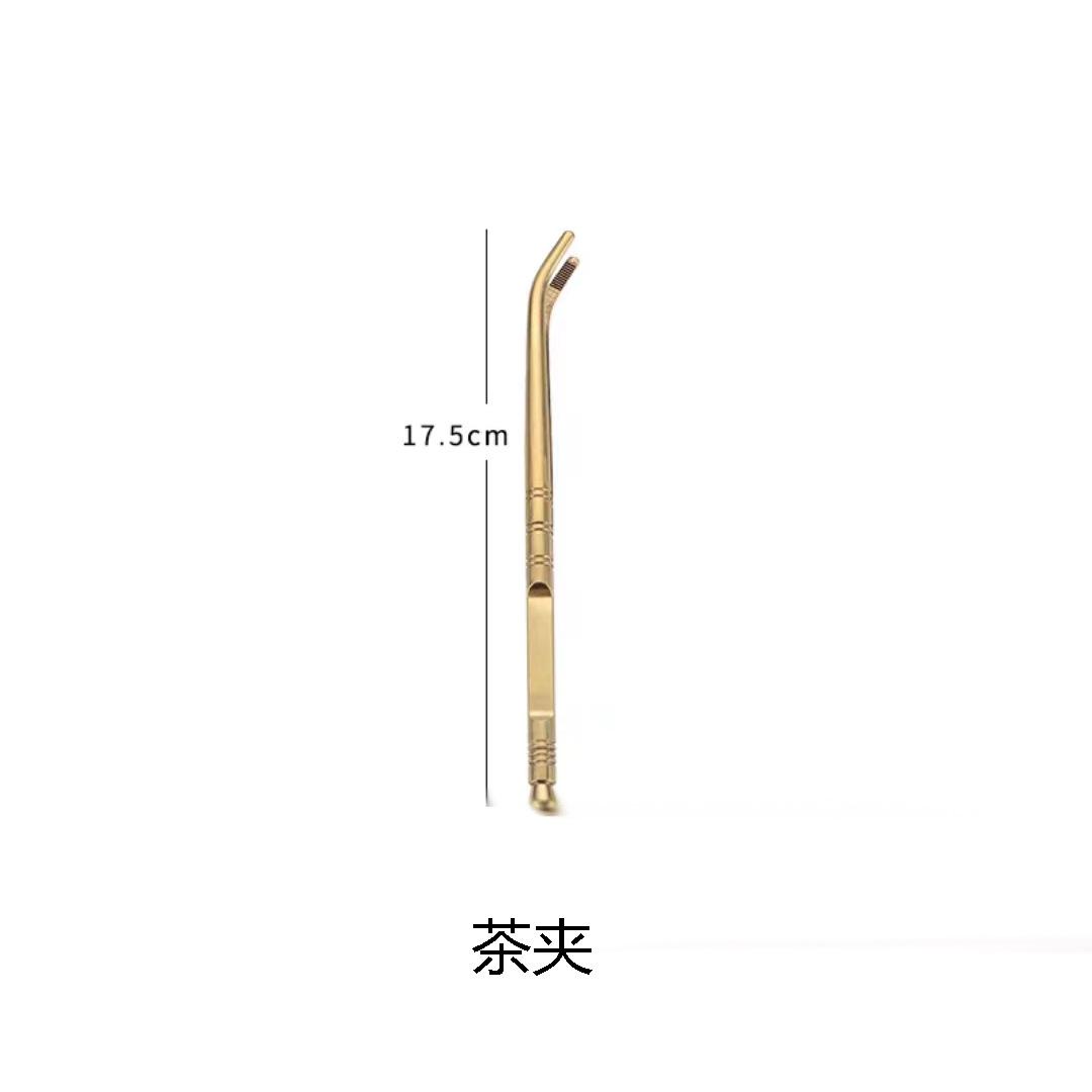 Brass tea tube, Brass tea spoon, Brass tea knife, Brass tea fork, Brass tea clip, Brass pot pen, Happy ruyi (monk) six-piece set