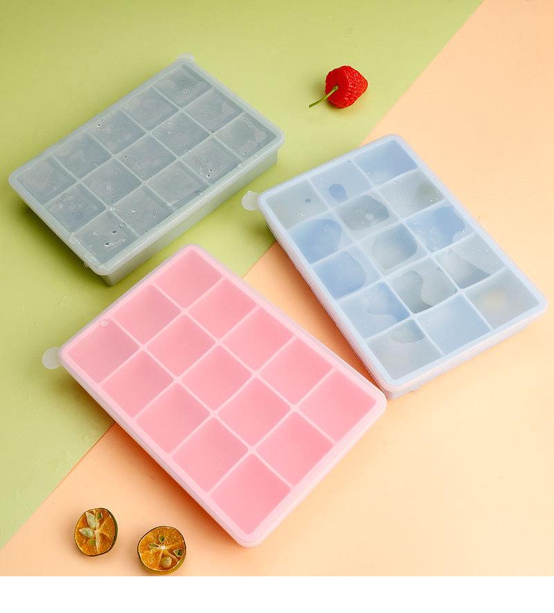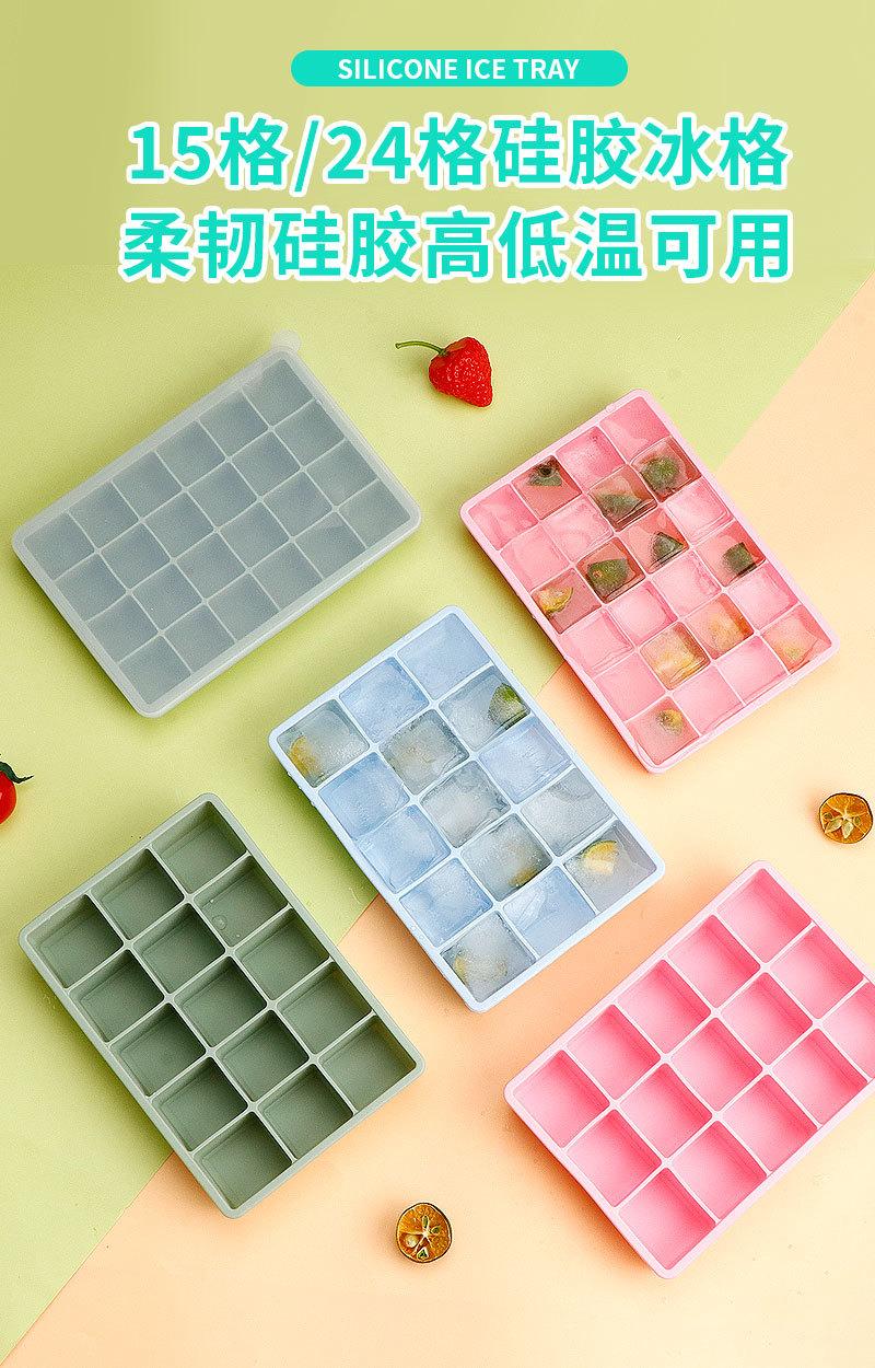 En Stock 15 Cuadrículas/24 Cuadrículas/Bandeja de Hielo de Silicona Molde Casero para Cubitos de Hielo Congelados Molde de Hielo Cuadrado de Silicona para Hogar con Tapa