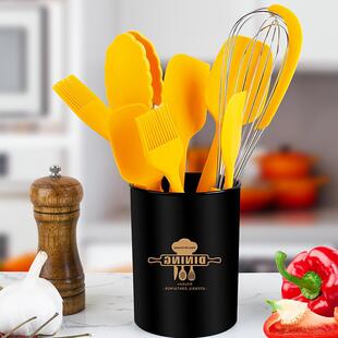 Juego de 11 utensilios de cocina de silicona, sartén antiadherente FDA, pala de cocina colorida, cuchara, utensilios de cocina creativos con cubo de almacenamiento