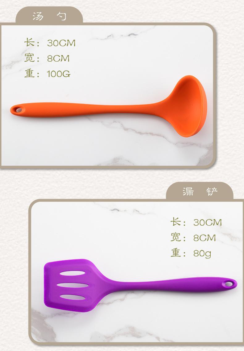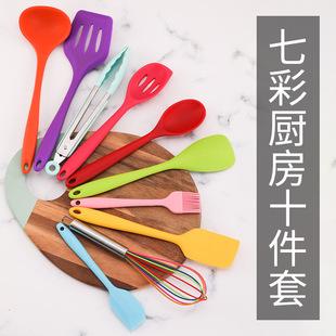 Fabricantes de Yangjiang, juego de 10 utensilios de cocina de silicona de colores, juego de utensilios de cocina de silicona antiadherente, pala y cuchara para cocinar.