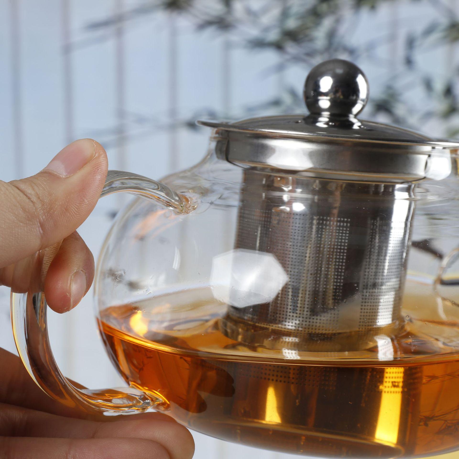 Tetera de Vidrio de Borosilicato Alto Resistente a Altas Temperaturas Filtro de Acero Inoxidable Tetera para el Hogar Tetera de Gran Capacidad Juego de Té Kung Fu Tetera