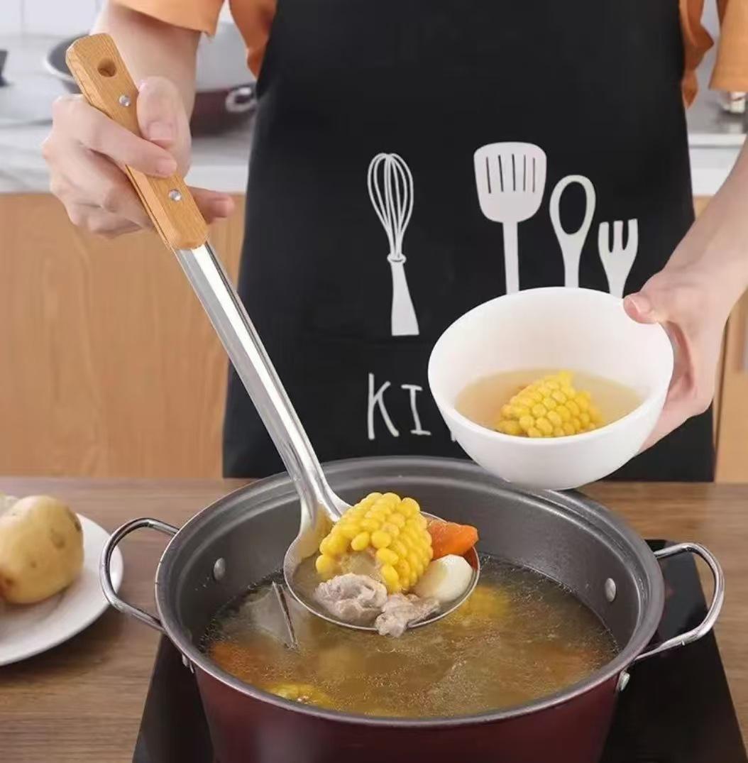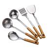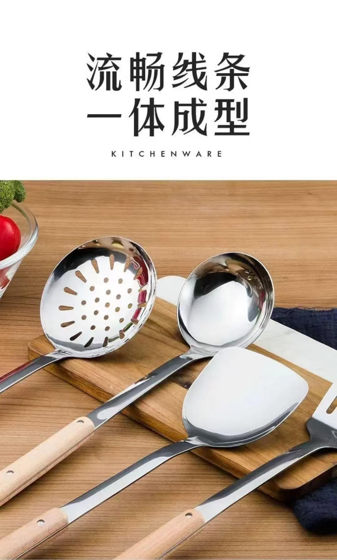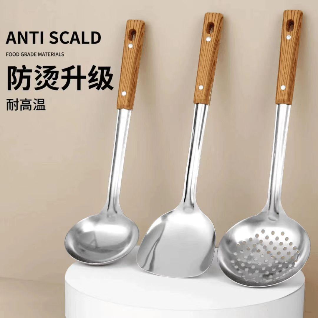 Cuchara de cocina con mango de madera de acero inoxidable Espátula de cocina Espátula engrosada Juego de mango de madera para cocinar Cuchara para freír Espátula
