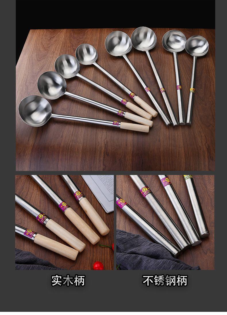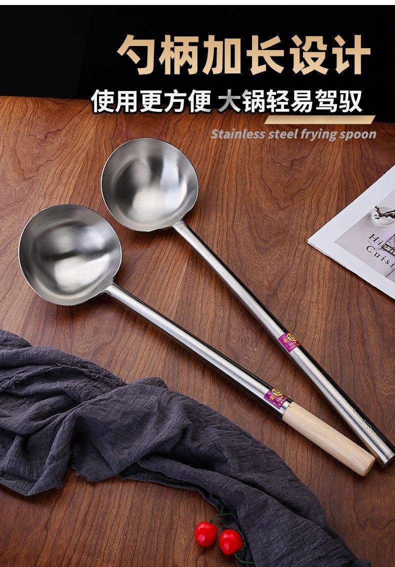 Espátula de Acero Inoxidable para el Hogar Mango de Madera Cuchara para Cocinar Especial para Chef Pala de Mango Largo Cuchara para Cocinar Herramienta de Cocina Cuchara para Sopa Engrosada